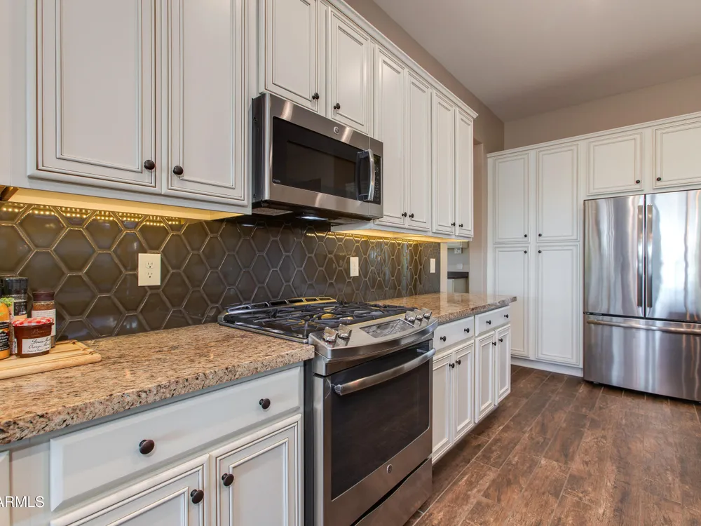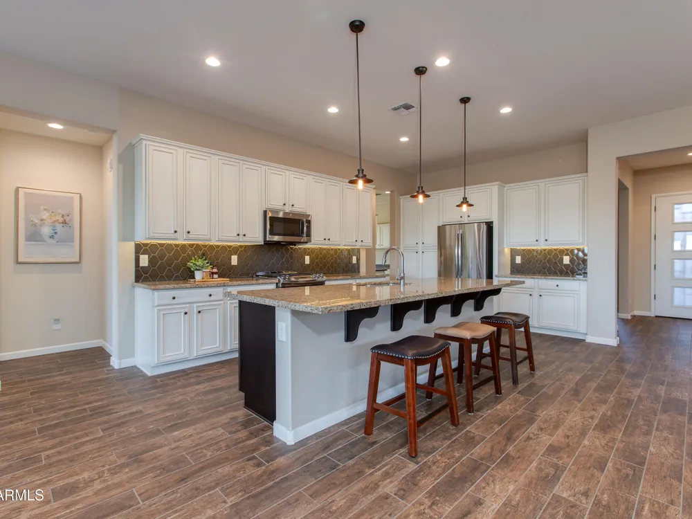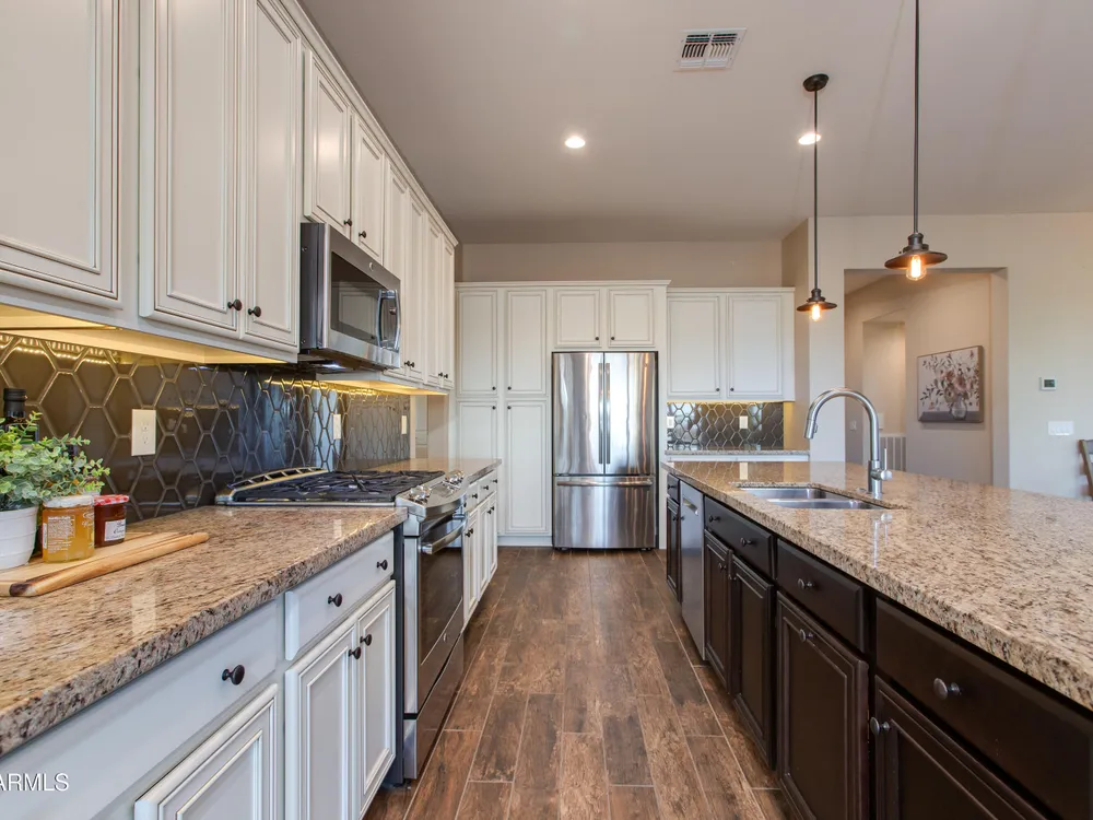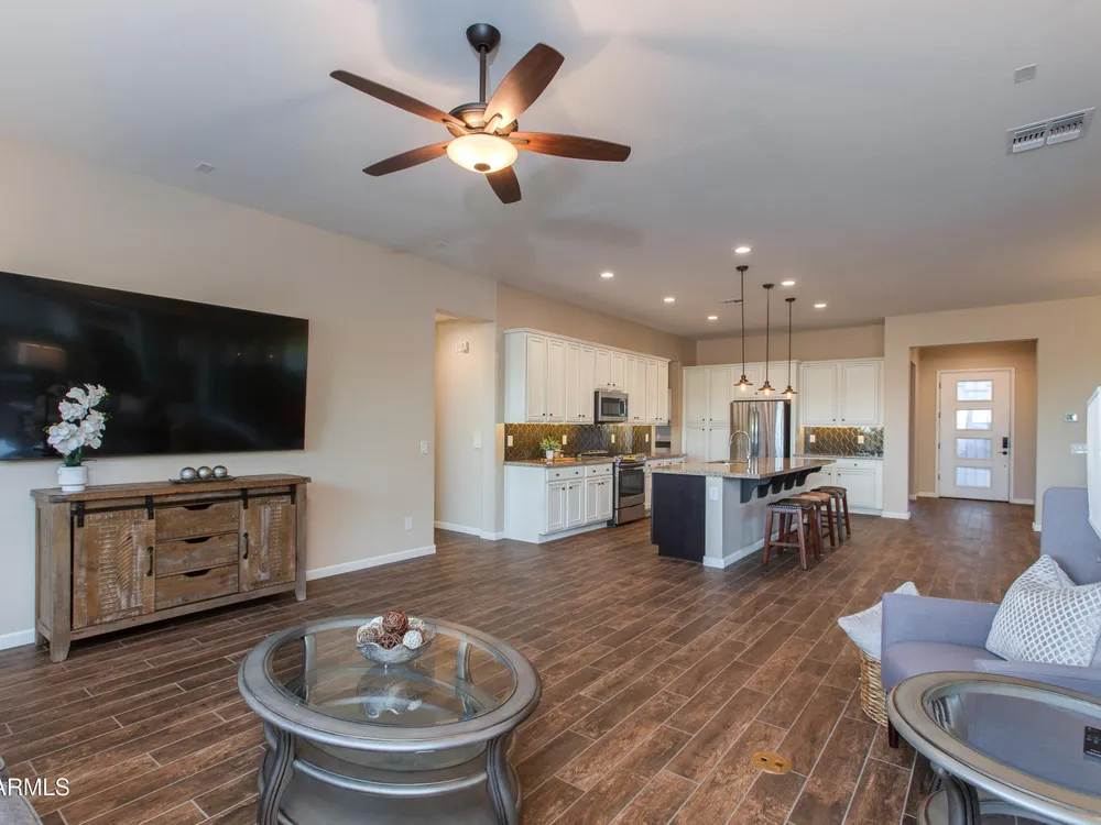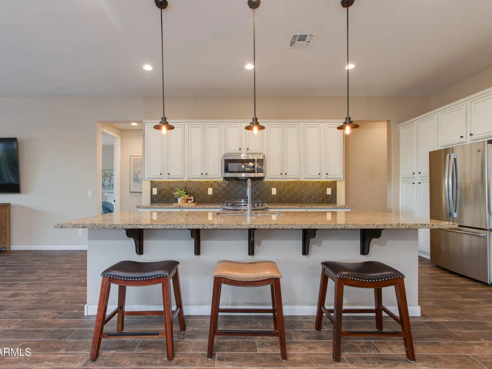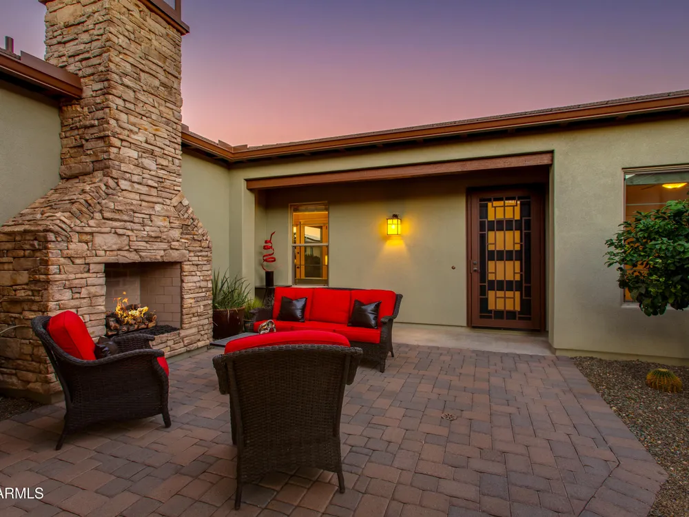 You've struck gold at 3675 Gold Ridge Road with this Latigo Model on an elevated corner lot! Luxury desert living where western charm meets refined elegance. Designed with an eye for timeless style, this home offers wide-open spaces with Casita for extra guests, top-tier finishes, and a seamless flow from indoors to outdoor living space. That is what Arizona living is all about. The heart of the home is a chef's dream kitchen, a grand island built for gathering, storytelling, and good ol' fashioned hospitality. Step out to the back patio through the sliding glass walls to throw a steak on the grill in your own slice of paradise. Mountain views, a resort-style pool with a calming water feature, all wrapped in professionally designed landscaping. With PAID OFF SOLAR, you'll stay cool & & efficient under the desert sun. And when you're ready to roam, Wickenburg Ranch has you covered with championship golf, fine dining, a full-service spa, top-notch fitness center, and a calendar full of lively community events. This is how the west is won nowadays!