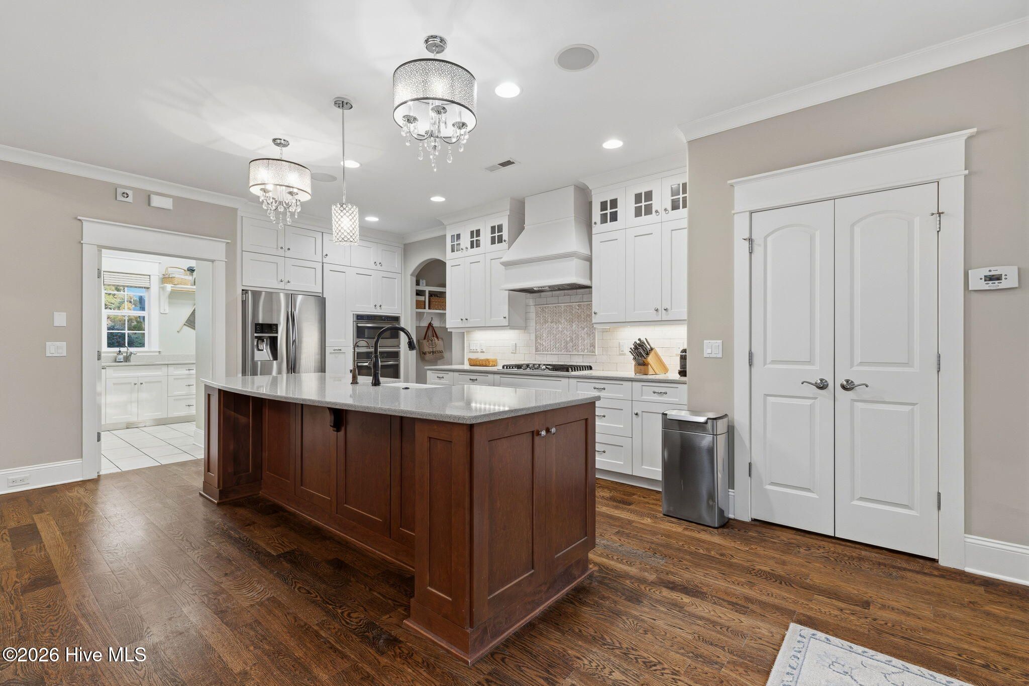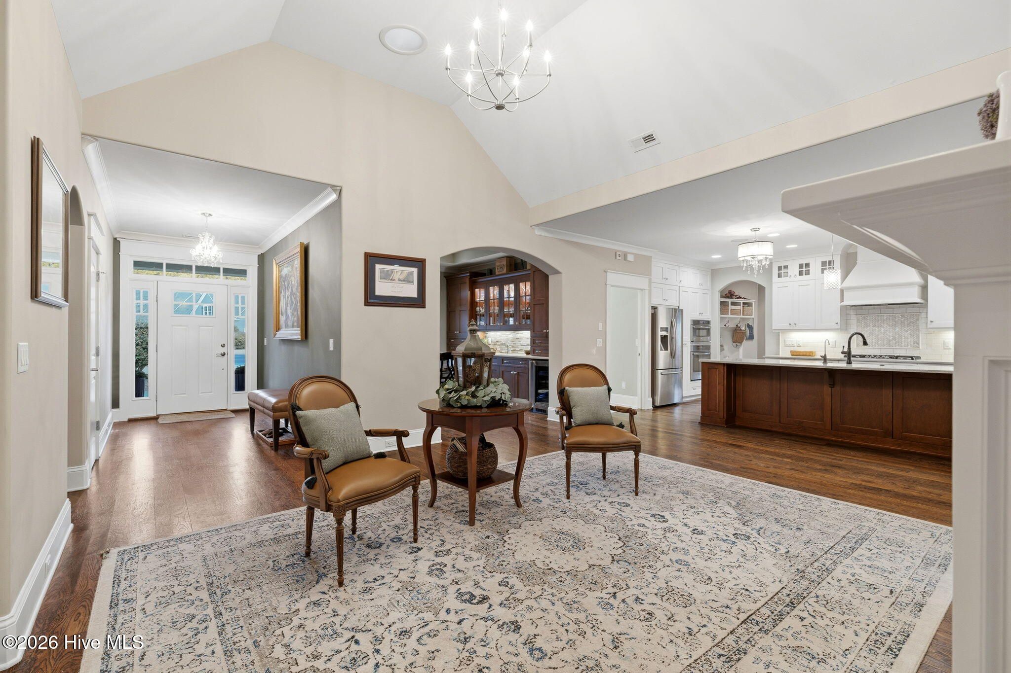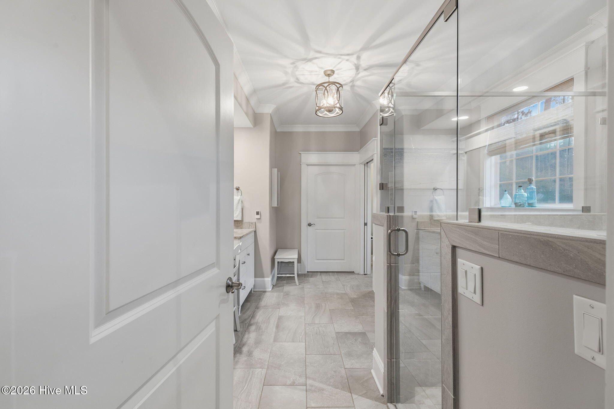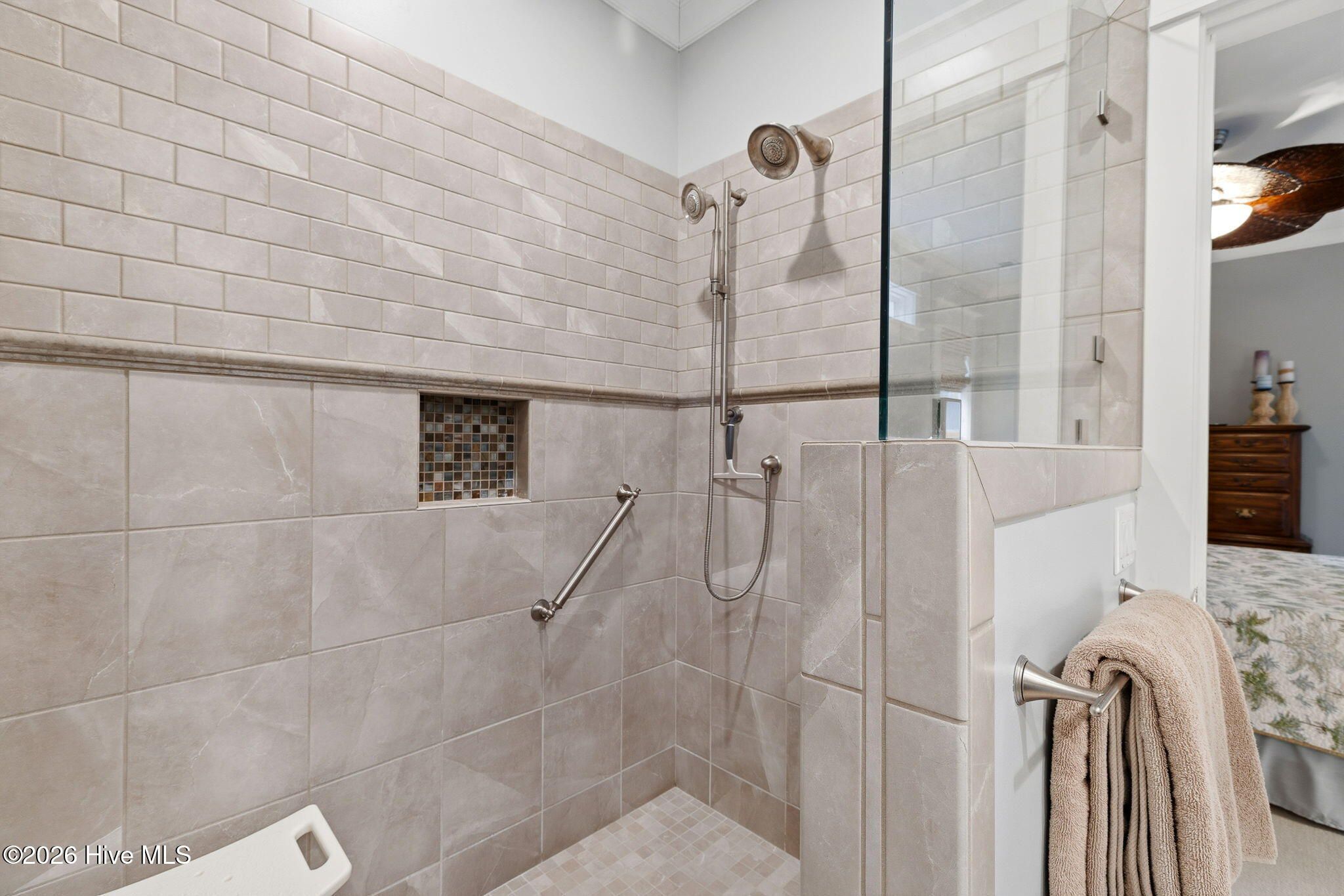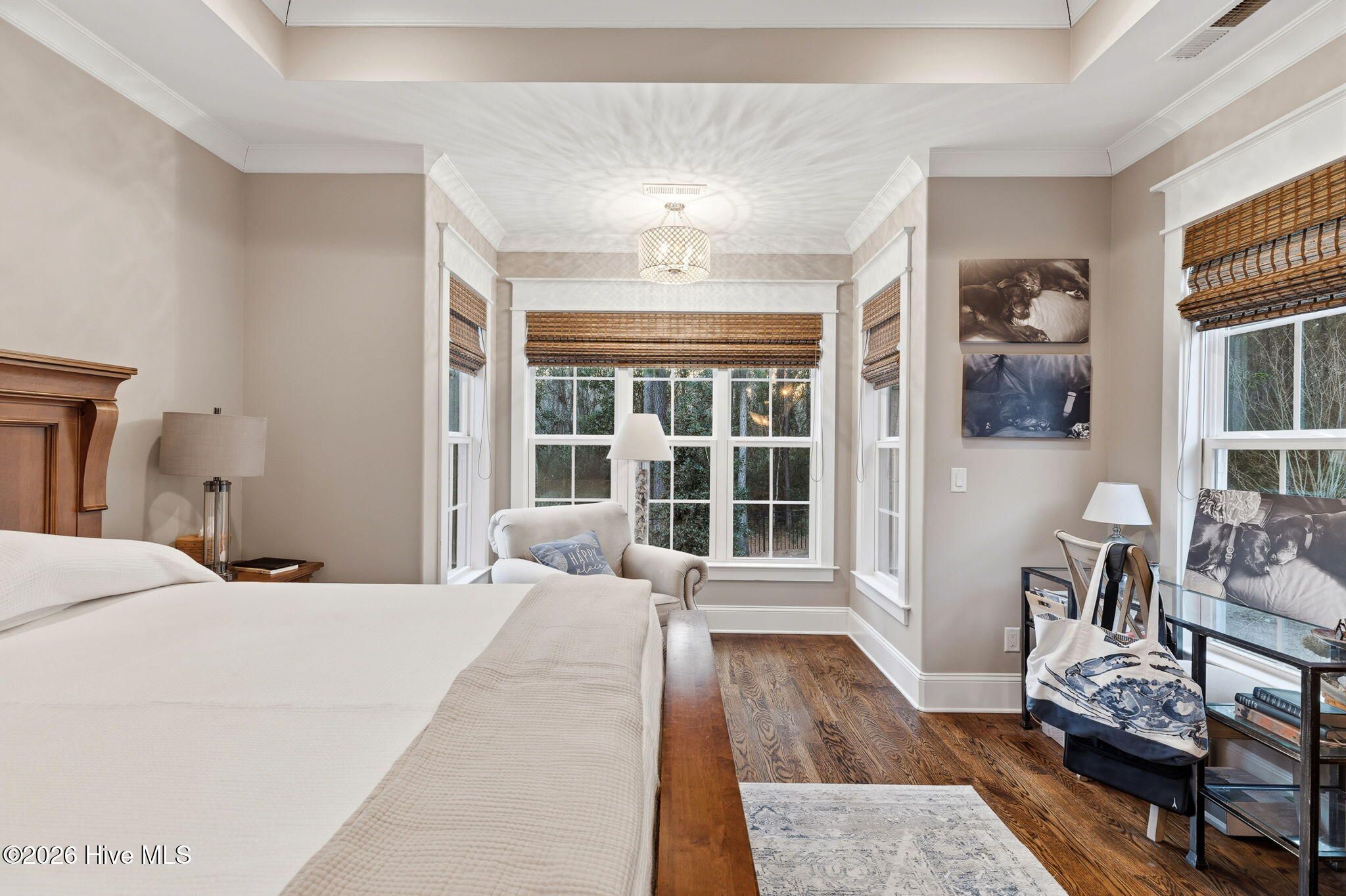 - Master Downstairs, Walk-In Closet(s), Tray Ceiling(s), High Ceilings, Entrance Foyer, Mud Room, Kitchen Island, Ceiling Fan(s), Pantry, Walk-In Shower, Wet Bar, Blinds