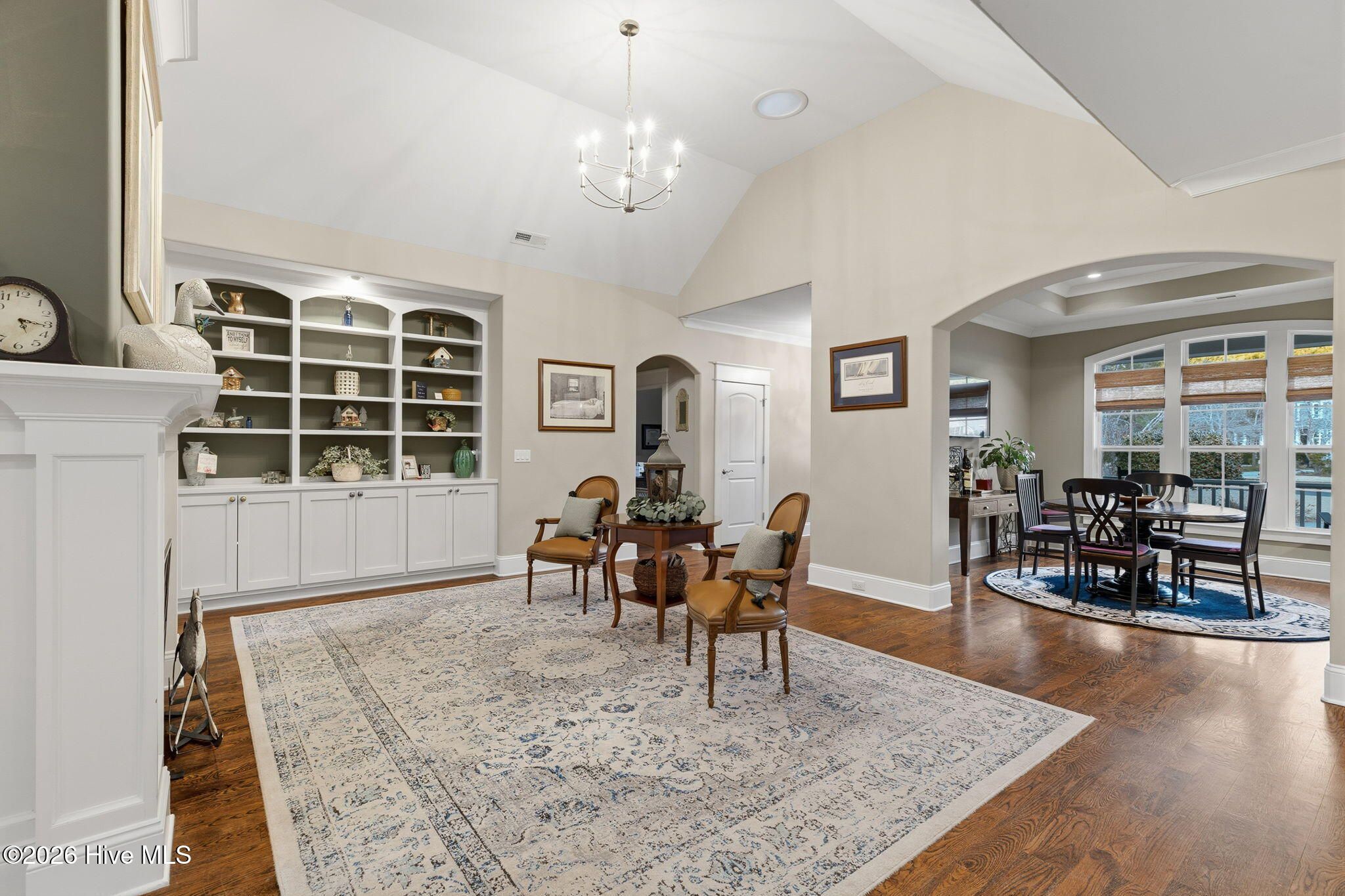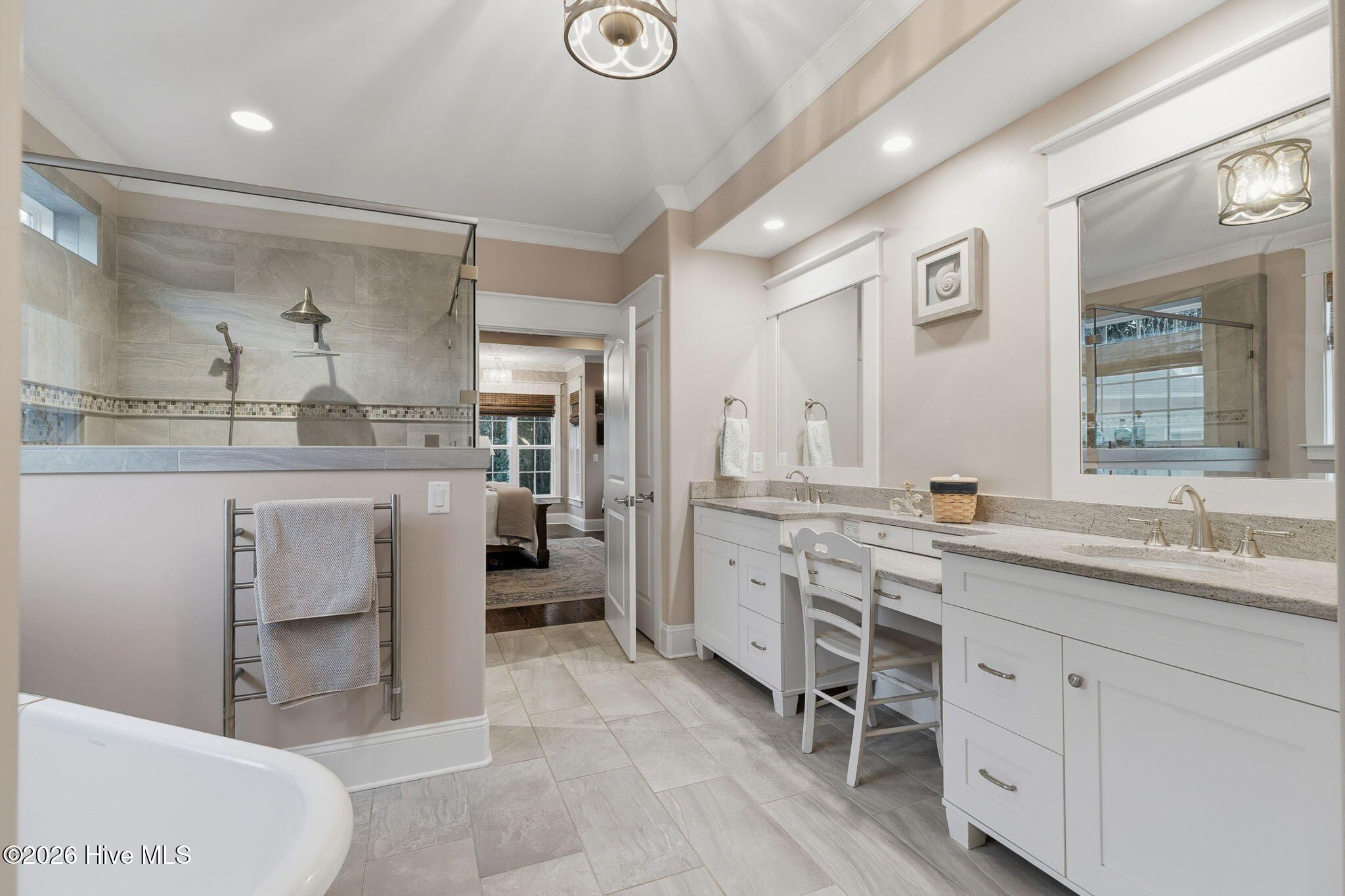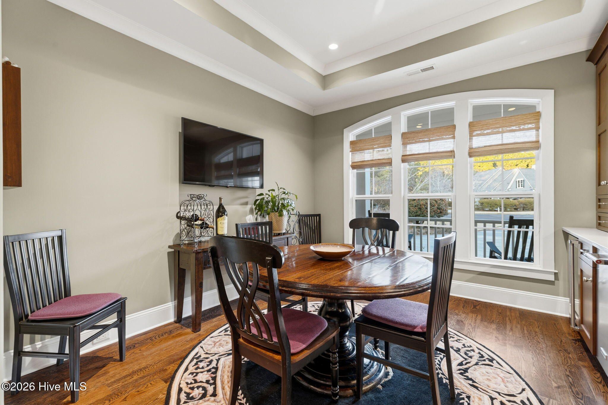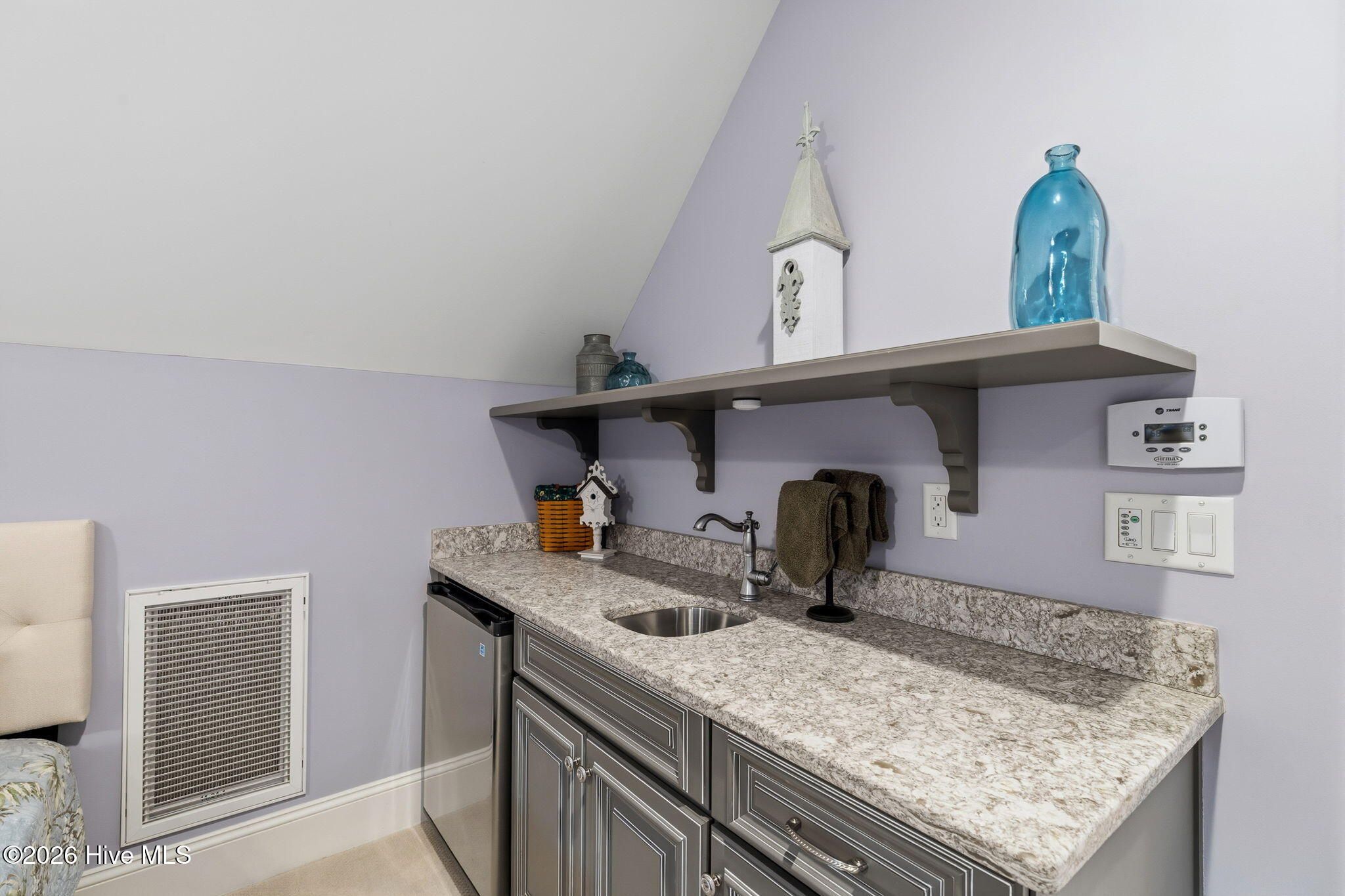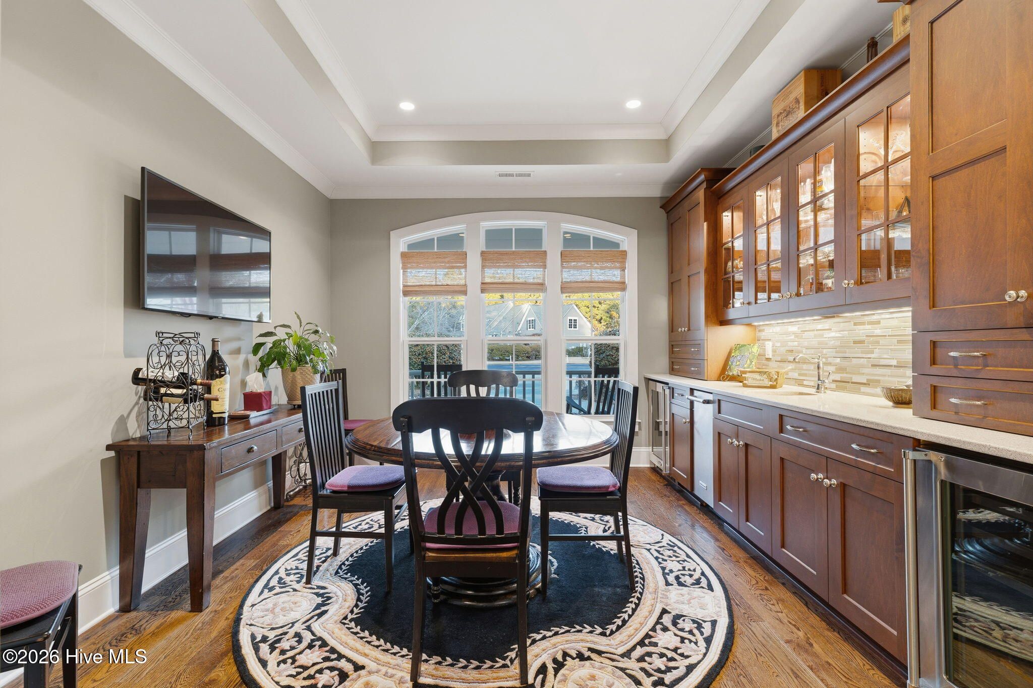 - Master Downstairs, Walk-In Closet(s), Tray Ceiling(s), High Ceilings, Entrance Foyer, Mud Room, Kitchen Island, Ceiling Fan(s), Pantry, Walk-In Shower, Wet Bar, Blinds