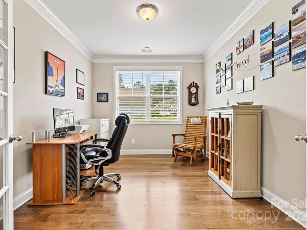 Welcome to easy living on 1 level with a split-bedroom plan in the heart of Sherrills Ford! 3 beds, 2 full baths, and a dedicated office with a bright French door entry. Enjoy a covered, rocking chair front porch, and a screened porch in the rear with a custom paver patio ready for grilling and entertaining year-round in the fabulous NC weather! Hard to come by premium corner lot is fully fenced for privacy and four-legged friends to run and play - plenty of space for your personal dream pool. Open kitchen/dining/living room layout with bright cabinets, a large island with seating, and a walk-in pantry wows the chef and the guests! The huge primary suite is privately tucked behind the living room that features a gas fireplace. Home is set apart by its neutral interior paint, wainscotting, and upgraded prefinished wide plank flooring - a must see!  2 car garage with shelving and exterior door for easy access to the side of the home. Enjoy the community outdoor pool, playground, volleyball court, and street lined sidewalks.  1 minute drive to Publix grocery and a variety of dining/shopping. 5 minutes to Mtn Creek Park for outdoor walks by the lake and more! Lake Norman enthusiasts are conveniently only 5 minutes from the Landing Marina and Waterfront dining - boat club memberships available through The Landing. Easy access to HWY 150 to Mooresville or Hickory and HWY 16 to Charlotte, Denver, and Huntersville.  Washer, dryer, refrigerator included. OPEN HOUSE Sat 10/18, 12-2:00.