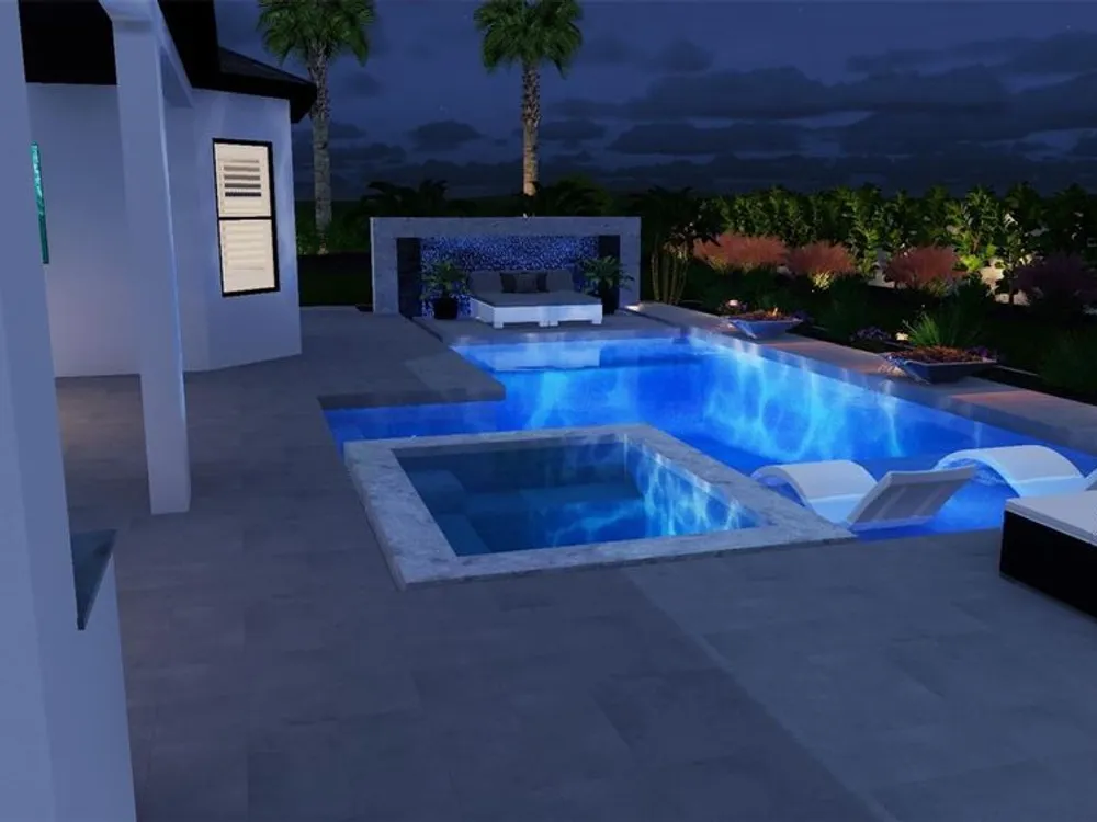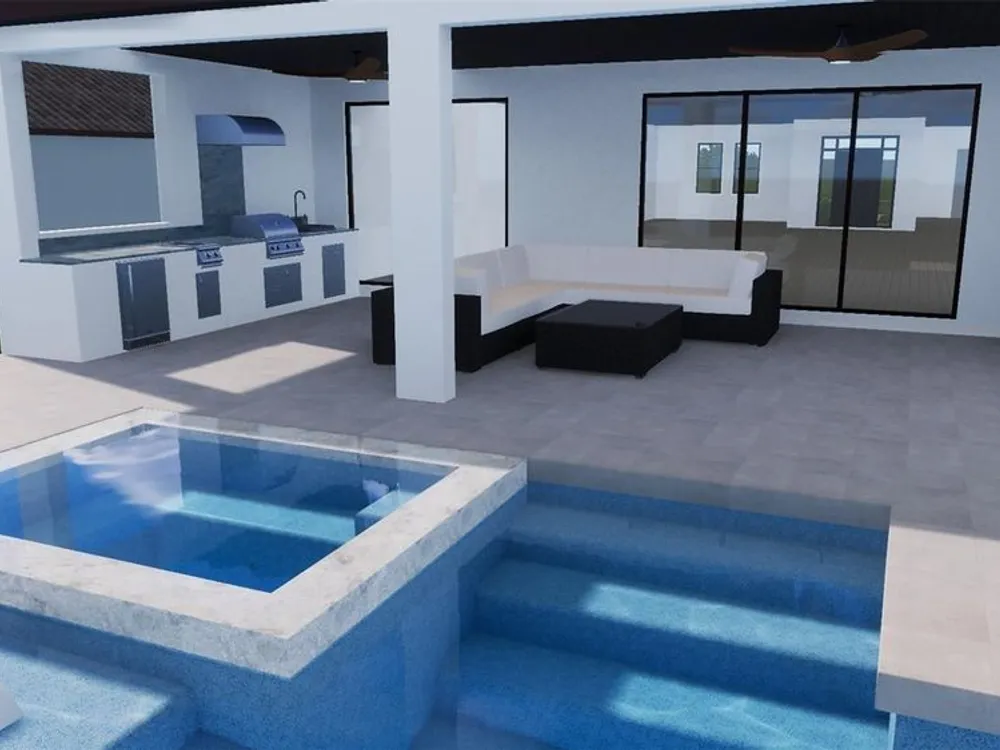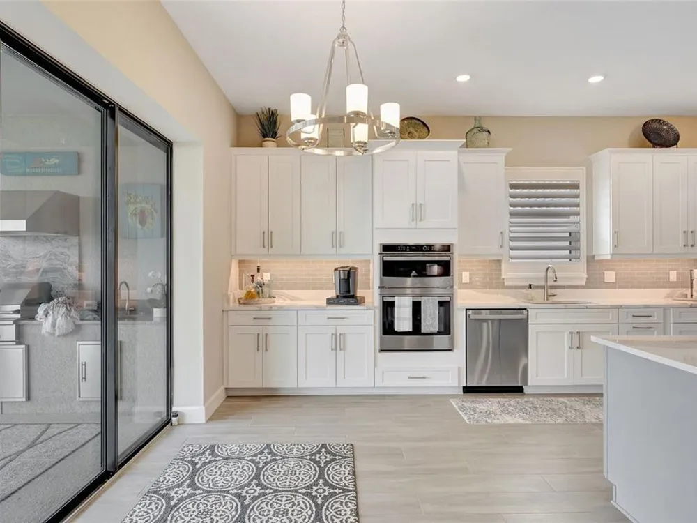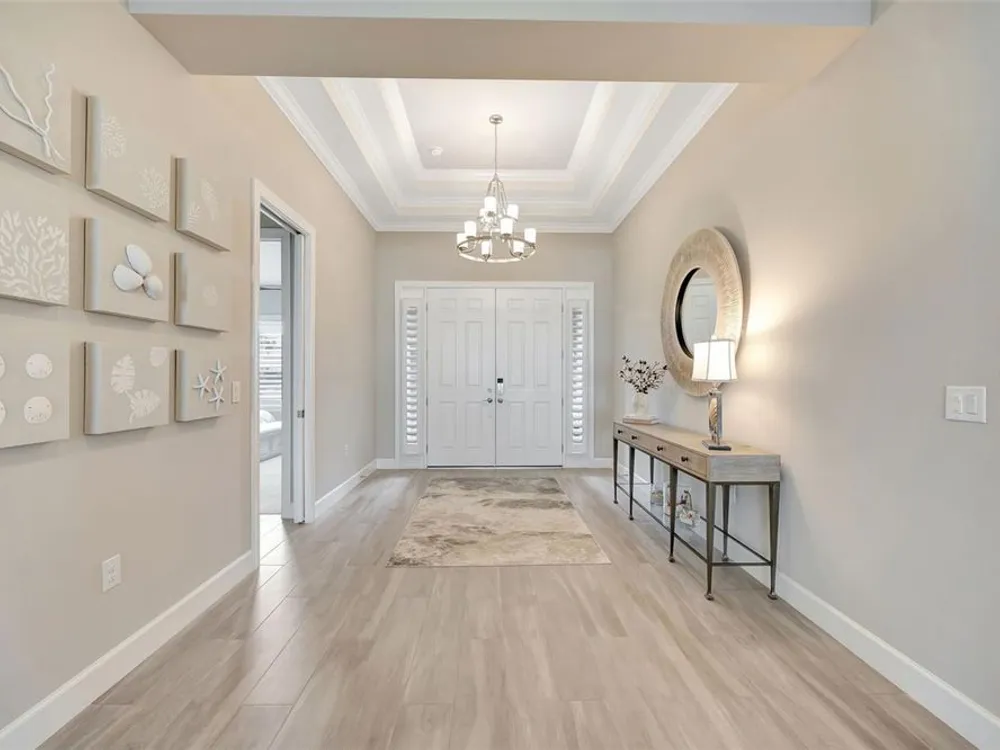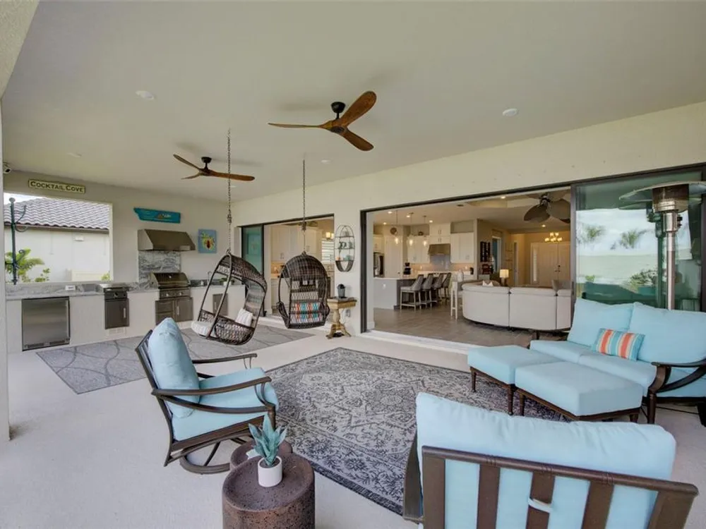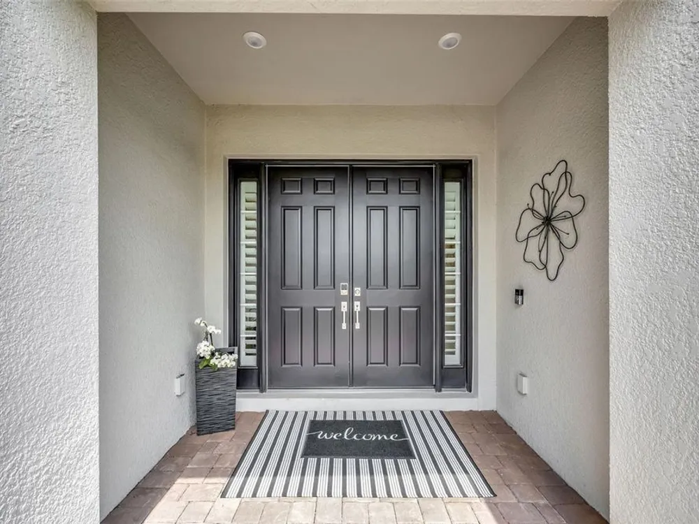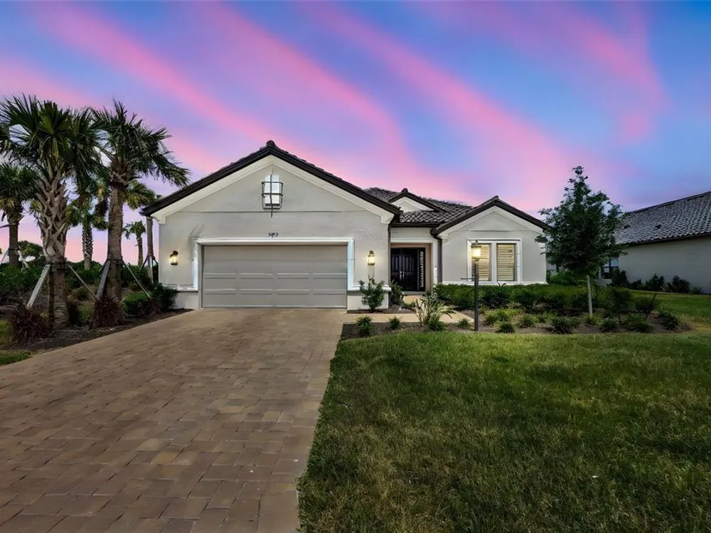 Built in June 2024, this is a rare opportunity, as there are no more non-golf lots available to build a Pallazio model in Esplanade at Azario. ANNUAL GOLF PASSES ARE AVAILABLE (CONTACT THE PRO SHOP FOR MORE INFORMATION AND FEE) The pool is the only virtually staged photo. This beautifully upgraded Pallazio model is situated on a premium corner lot with a water view in the front, a tranquil lanai view, and an easement between you and your only neighbor. 3,084 square feet. Offering 3 large bedrooms, 3 full bathrooms, an office, and a tandem 3-car garage, this home was thoughtfully designed for both luxury and comfort. Light gray wood plank tile runs throughout the living spaces, complemented by 8-foot doors and plantation shutters. The open concept living area features a tray ceiling, two sets of sliders, and a striking feature wall in the great room with lighted shelves, a sculptured three-sided fireplace, and a floating porcelain hearth. The extended gourmet kitchen boasts upgraded white shaker cabinetry with soft close doors/drawers, slide outs, a light gray oversized island, striking premium quartz countertops, custom organized pantry shelving, and GE Gourmet kitchen appliances. A private office/den with custom built-ins and double pocket doors offers a functional and quiet workspace. The oversized primary suite includes a cozy bay window sitting area, a custom walk-in closet with built-in shelving and drawers, gliding shoe rack and a luxurious spa-like bathroom with a large walk-in shower. Two additional spacious bedrooms each have their own full bathrooms for guests' comfort. Step outside to the extended lanai, designed for entertaining, featuring an extended outdoor kitchen with a Delta Heat gas grill, separate griddle, refrigerator, sink, and built-in storage. There is plenty of space to design your dream pool and spa, with pre-wiring already in place. Pool photos have been virtually staged. Additional highlights include a three-car tandem garage with epoxy flooring, motorized overhead storage, and a tankless water heater. Located in the highly desirable Esplanade at Azario, residents enjoy access to resort-style amenities including 2 pools, Bahama Bar, Culinary Center, golf course, fitness center, spa, dog park, pickle ball, tennis, bocce ball, community garden and more. This is a non-golf deeded house, so you don’t have the added expense of owning a golf lot but all the opportunity to golf! (Golf fees currently $50 per round, HOA fees are $280.00 less per month than owning a golf deeded house. This home is move-in ready waiting for you to enjoy the luxurious Florida lifestyle! Seller is flexible on closing date. Pool photos are the only photos virtually staged.
