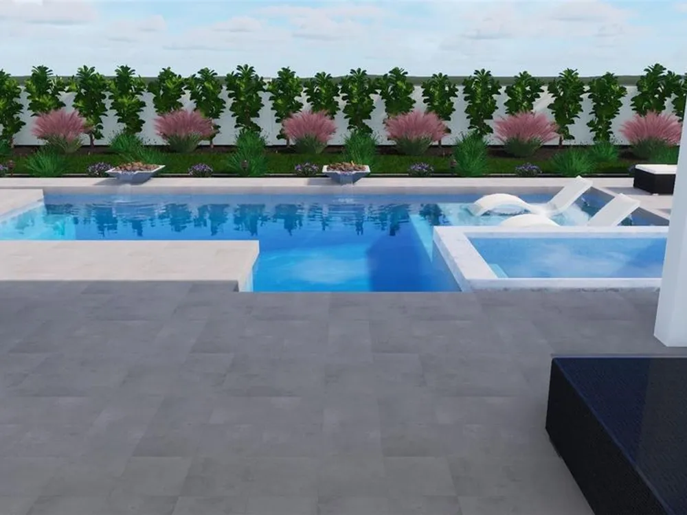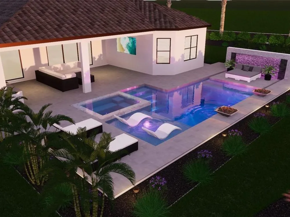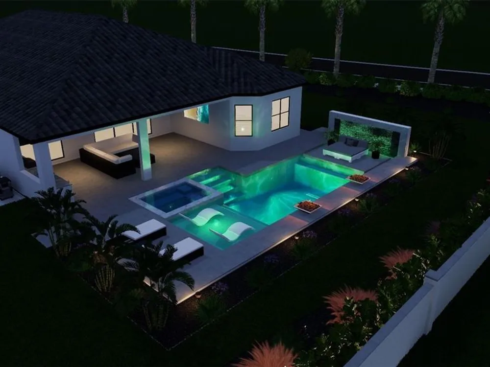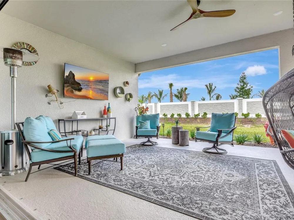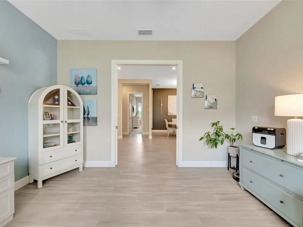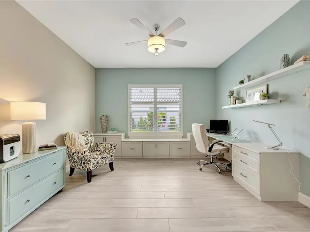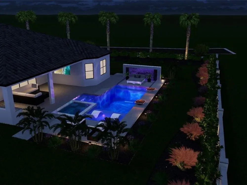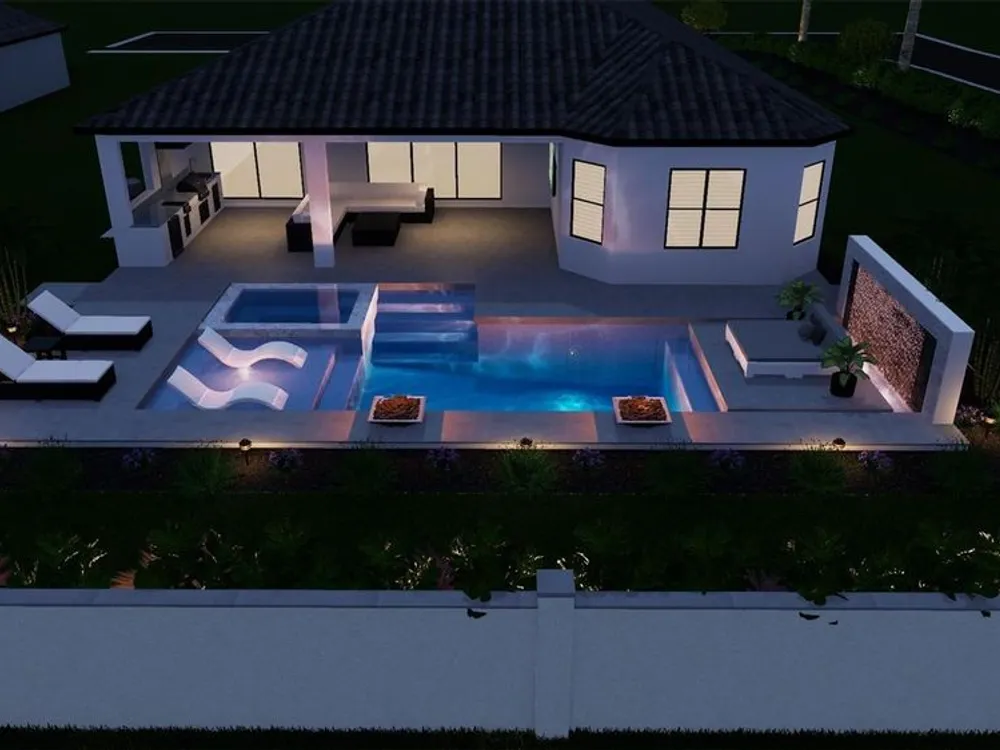 Built in June 2024, this is a rare opportunity, as there are no more non-golf lots available to build a Pallazio model in Esplanade at Azario. ANNUAL GOLF PASSES ARE AVAILABLE (CONTACT THE PRO SHOP FOR MORE INFORMATION AND FEE) The pool is the only virtually staged photo. This beautifully upgraded Pallazio model is situated on a premium corner lot with a water view in the front, a tranquil lanai view, and an easement between you and your only neighbor. 3,084 square feet. Offering 3 large bedrooms, 3 full bathrooms, an office, and a tandem 3-car garage, this home was thoughtfully designed for both luxury and comfort. Light gray wood plank tile runs throughout the living spaces, complemented by 8-foot doors and plantation shutters. The open concept living area features a tray ceiling, two sets of sliders, and a striking feature wall in the great room with lighted shelves, a sculptured three-sided fireplace, and a floating porcelain hearth. The extended gourmet kitchen boasts upgraded white shaker cabinetry with soft close doors/drawers, slide outs, a light gray oversized island, striking premium quartz countertops, custom organized pantry shelving, and GE Gourmet kitchen appliances. A private office/den with custom built-ins and double pocket doors offers a functional and quiet workspace. The oversized primary suite includes a cozy bay window sitting area, a custom walk-in closet with built-in shelving and drawers, gliding shoe rack and a luxurious spa-like bathroom with a large walk-in shower. Two additional spacious bedrooms each have their own full bathrooms for guests' comfort. Step outside to the extended lanai, designed for entertaining, featuring an extended outdoor kitchen with a Delta Heat gas grill, separate griddle, refrigerator, sink, and built-in storage. There is plenty of space to design your dream pool and spa, with pre-wiring already in place. Pool photos have been virtually staged. Additional highlights include a three-car tandem garage with epoxy flooring, motorized overhead storage, and a tankless water heater. Located in the highly desirable Esplanade at Azario, residents enjoy access to resort-style amenities including 2 pools, Bahama Bar, Culinary Center, golf course, fitness center, spa, dog park, pickle ball, tennis, bocce ball, community garden and more. This is a non-golf deeded house, so you don’t have the added expense of owning a golf lot but all the opportunity to golf! (Golf fees currently $50 per round, HOA fees are $280.00 less per month than owning a golf deeded house. This home is move-in ready waiting for you to enjoy the luxurious Florida lifestyle! Seller is flexible on closing date. Pool photos are the only photos virtually staged.