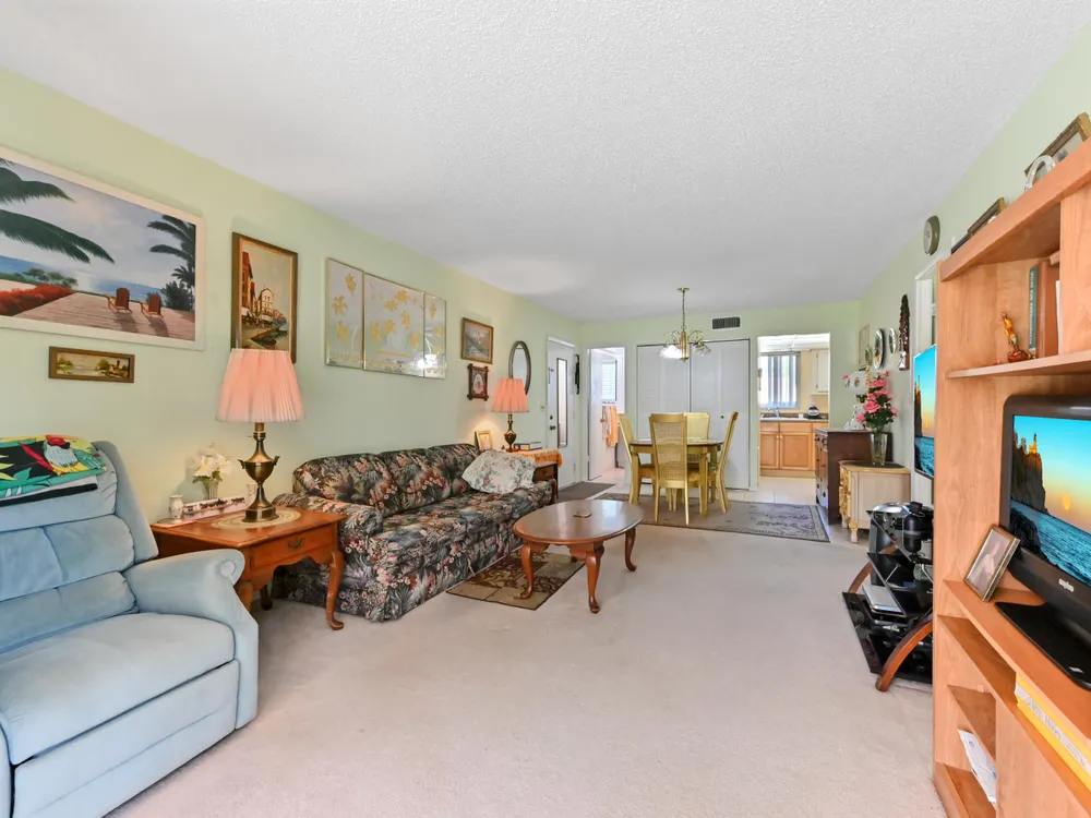 Welcome to this charming and welcoming first-floor condo located in a well-maintained 55+ community of Golden Lakes! This cozy 1-bedroom, 1.5-bathroom home offers a functional layout with a combined living and dining area, ideal for relaxed everyday living. The inviting kitchen features a convenient pantry and flows seamlessly into the main living space, while the carpeted flooring throughout adds warmth and comfort to the home.