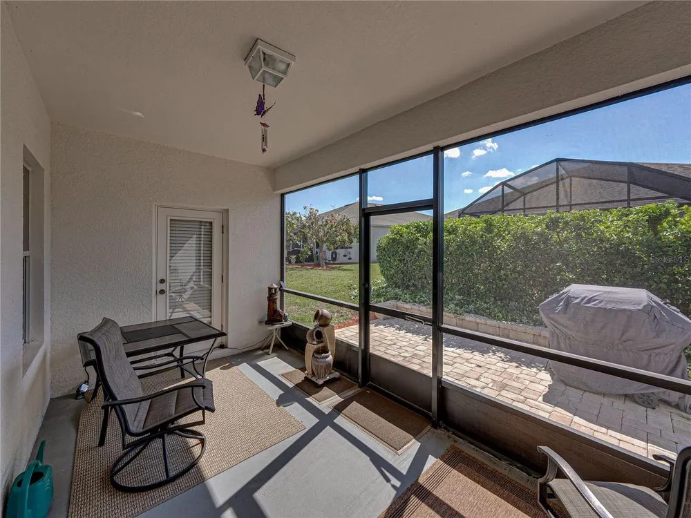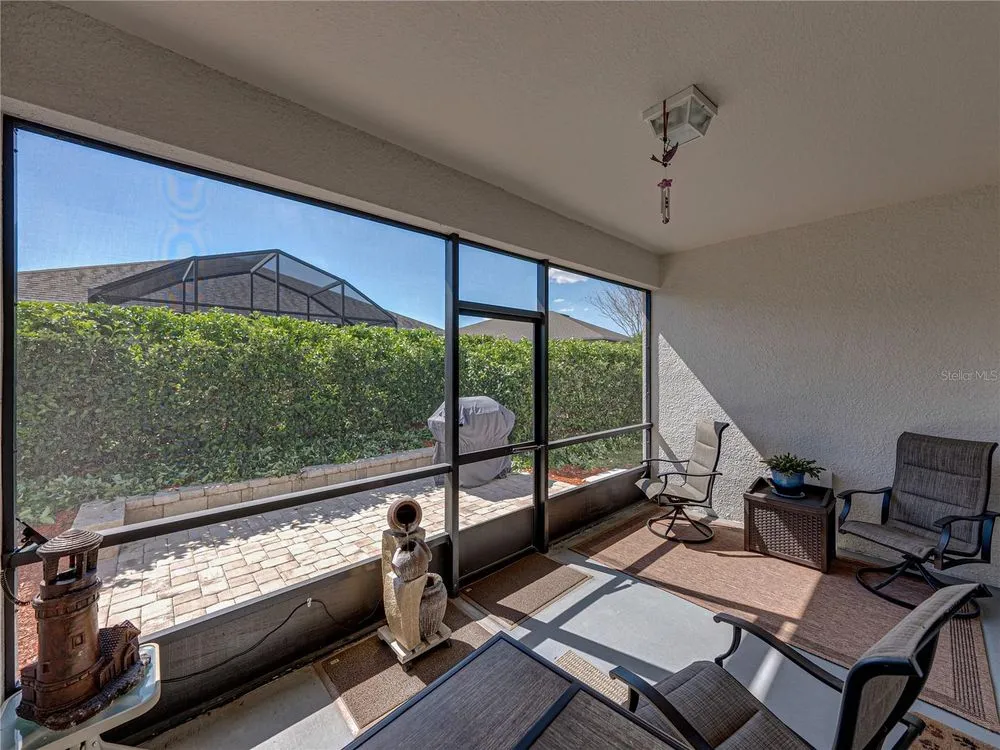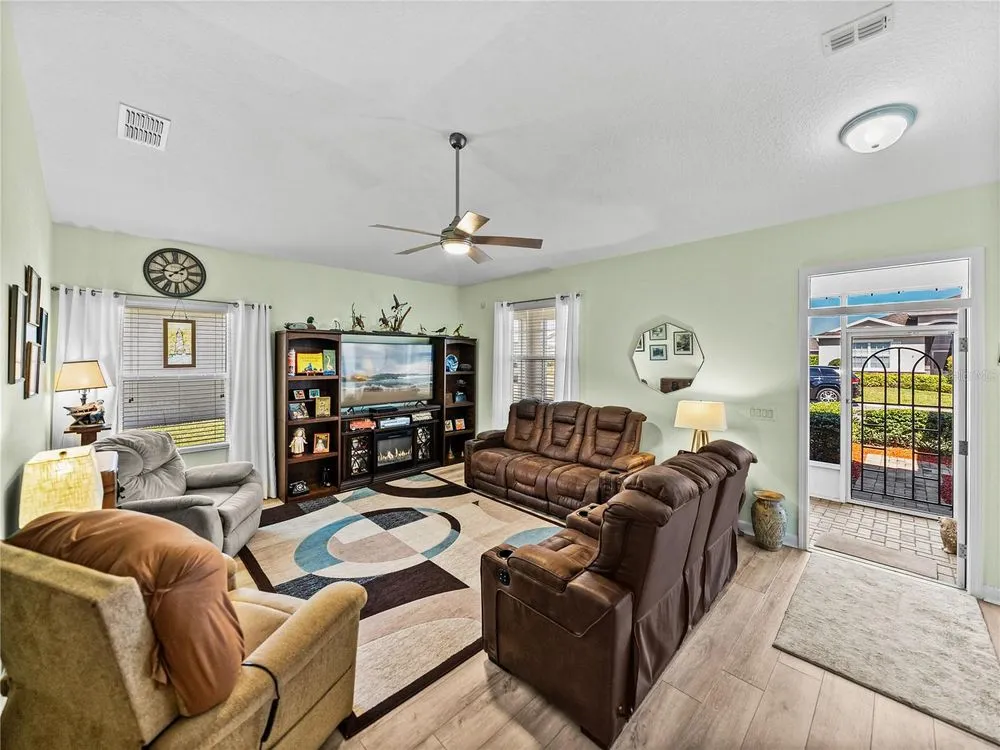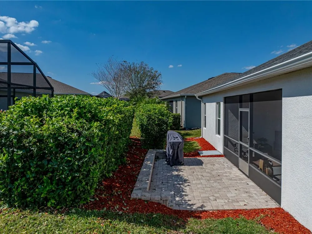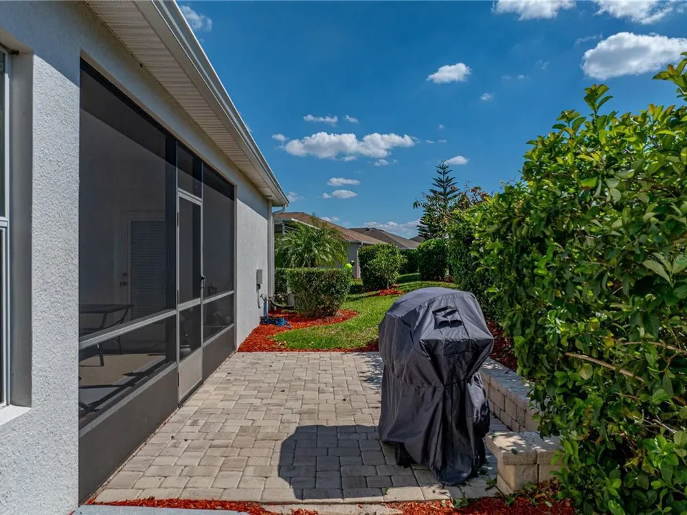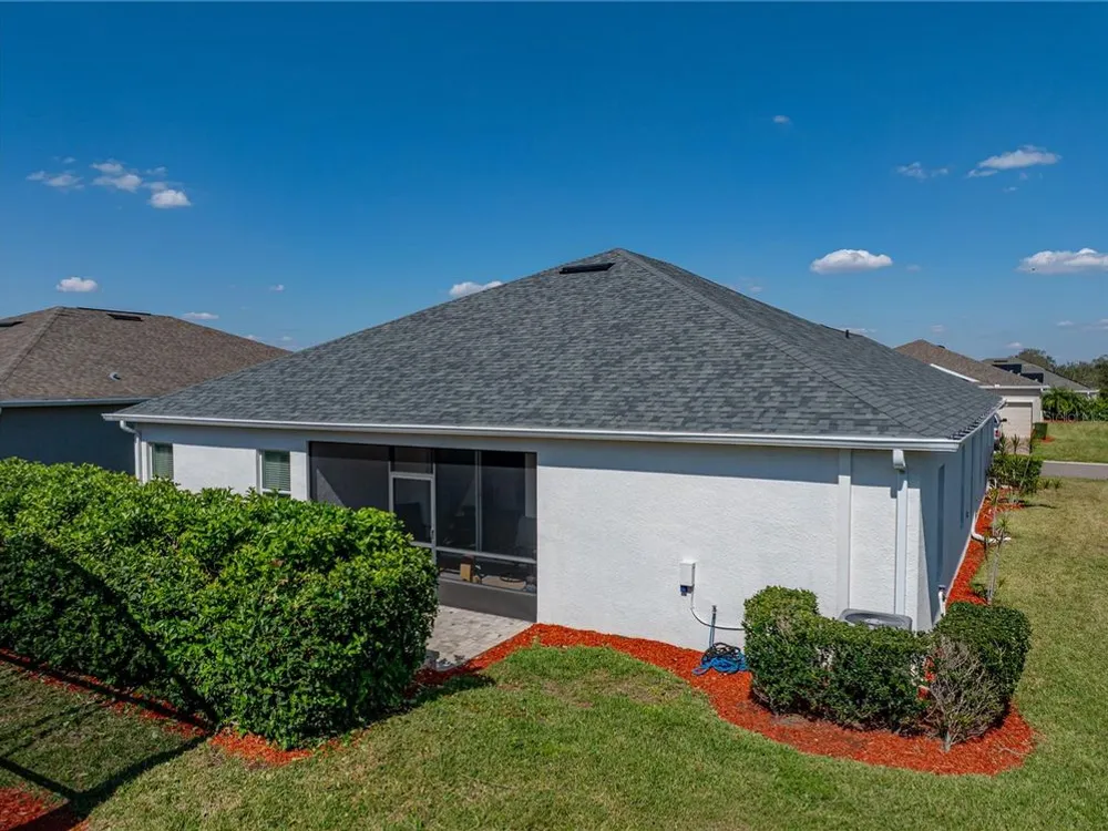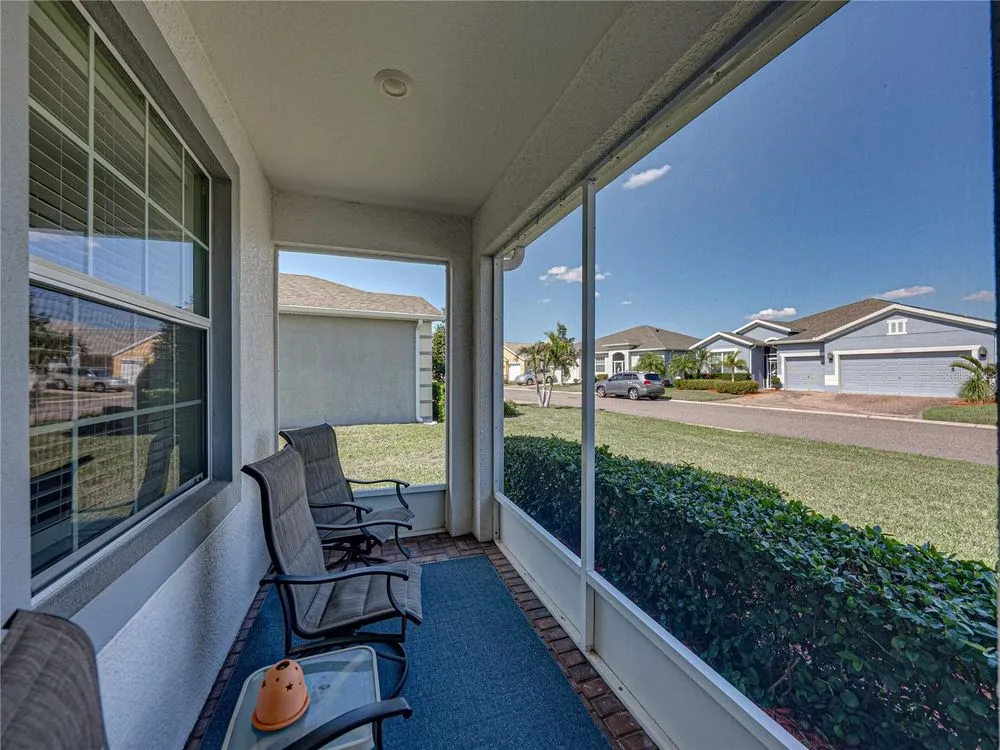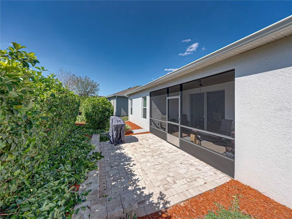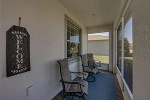 This beautifully updated 4-bedroom, 3-bath residence offers a spacious and thoughtfully designed layout with 2,404 sq ft of comfortable living space. Set in the desirable Traditions 55+ active adult community, the home’s curb appeal is undeniable — featuring a tasteful elevation, accent paint, full front screened porch, and meticulous landscaping. A new roof installed in 2023 comes with a transferable warranty (see attached documents), offering peace of mind for years to come. The three-car garage includes both a double door and a single door, the latter with a manually operated screen and walk-through door. The double garage door is equipped with an electric screen, enhancing ventilation while maintaining privacy. Inside, the split floor plan provides privacy, with the spacious primary suite on one side and guest rooms on the other. Soaring cathedral ceilings, luxury waterproof vinyl plank flooring, and a soft, neutral color palette create a warm and inviting atmosphere from the moment you enter. The kitchen boasts granite countertops and updated stainless steel appliances, ideal for the home chef. Custom ceiling fans throughout the home enhance both style and comfort. Additional features include a whole-house water softener and a large walk-in shower in the primary bath. One of the guest baths has been upgraded with a Safeway walk-in tub and shower — a valuable convenience. Step outside to a tranquil screened veranda with a water fountain and tall privacy hedge — perfect for relaxing or entertaining. A paver patio just beyond the veranda offers even more outdoor enjoyment. In addition to the kitchen appliances and washer & dryer, the golf cart and the garage refrigerator are included with the sale. Living in Traditions means enjoying access to a stunning clubhouse, resort-style outdoor pool, and an active community lifestyle. The HOA covers lawn care, exterior house painting, cable TV, internet, and community amenities. For full HOA details, contact the office located in the clubhouse. Don’t miss the chance to own this gorgeous, move-in-ready home. Schedule your private showing today!