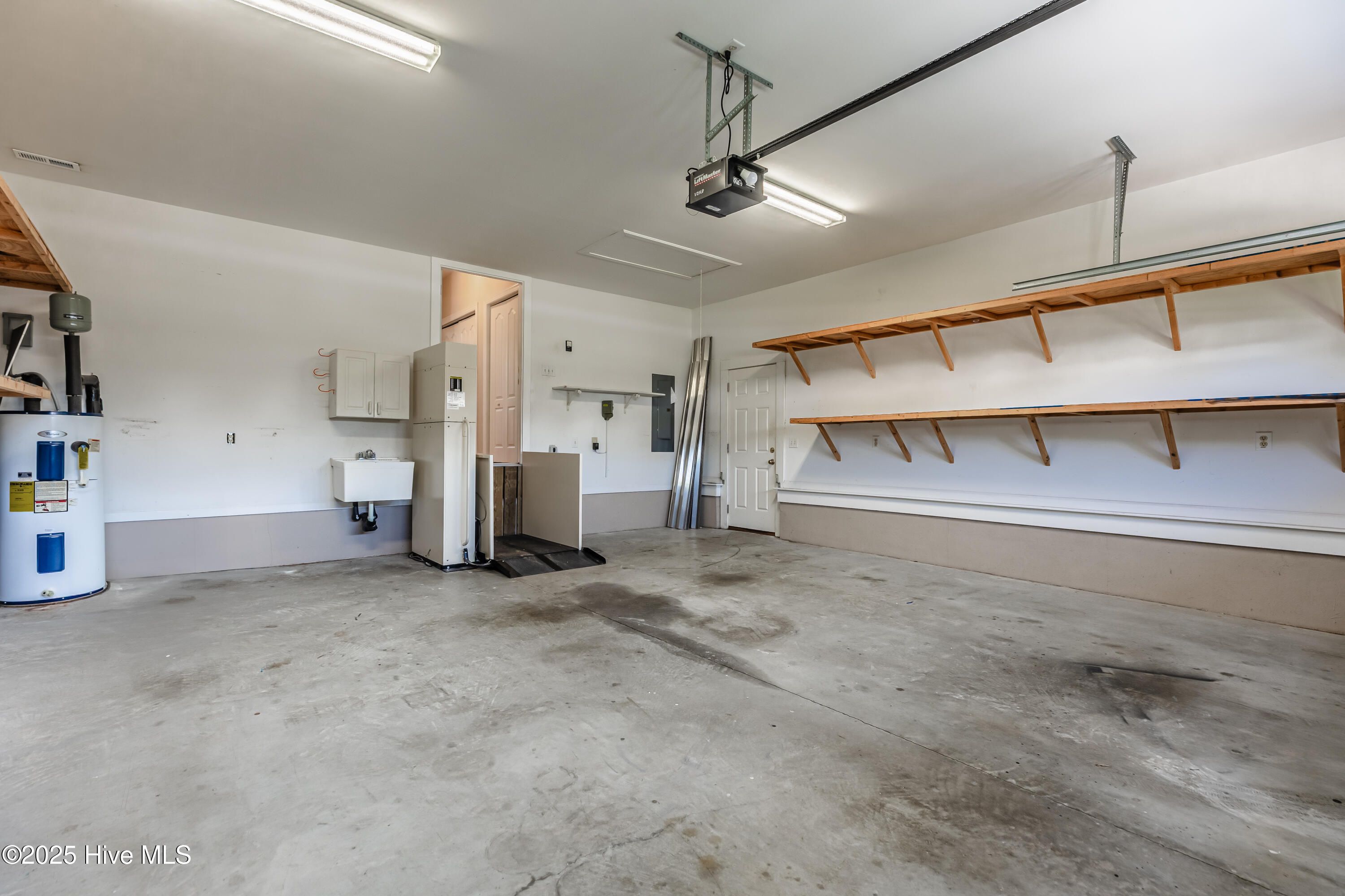 Welcome to this beautifully maintained 3-bedroom, 2-bath home in the sought-after community of St. James. Enter inside to find freshly painted interiors, refinished hardwood floors, and brand-new carpet in the bedrooms. Plantation shutters throughout. The spacious primary suite offers a private retreat with an updated zero-entry tiled shower for added comfort and convenience. Enjoy peace of mind with a Fortified Roof installed in 2022, hurricane shutters, and a garage lift providing easy access to the main living area. Outdoor living is a breeze with a screened-in porch, irrigation system, fenced yard, and lush surroundings perfect for entertaining or relaxing. St. James offers an unbeatable coastal lifestyle, including a community oceanfront pool and beach house just minutes away on Oak Island. Don't miss your chance to own this move-in ready home in one of the area's premier gated communities!