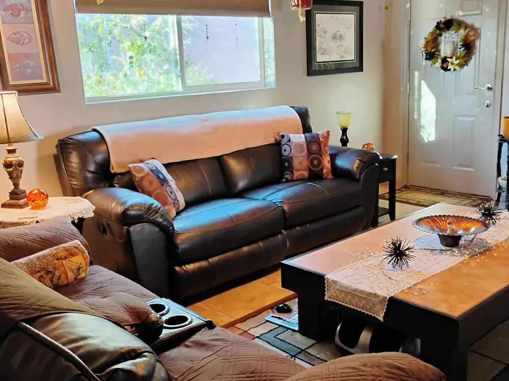 Completely renovated home in a 55+ gated community located in beautiful Southeastern Arizona. Home was gutted and remodeled down to the baseboards and hardware in 2021. New additions include all new LG appliances, On-demand water heater, water softener, 3 tiled points of entry, all new tile throughout, completely painted, including ceiling. All new lines ran for the sprinkler system and new timer installed. The yard is well established and brings so much charm and character to this property. With one of the biggest backyards in the community overlooking mountains and the Bureau of Land Management property, one of the most important ecosystems in the U.S., you will never have rear neighbors. The resort has so much to offer: Pool/spa, weight room, clubhouse, pickleball courts, walking/biking trail, etc. Monthly functions: Karaoke, pot luck dinners, live music, billiards, painting classes, water aerobics and so much more. You will love living here!