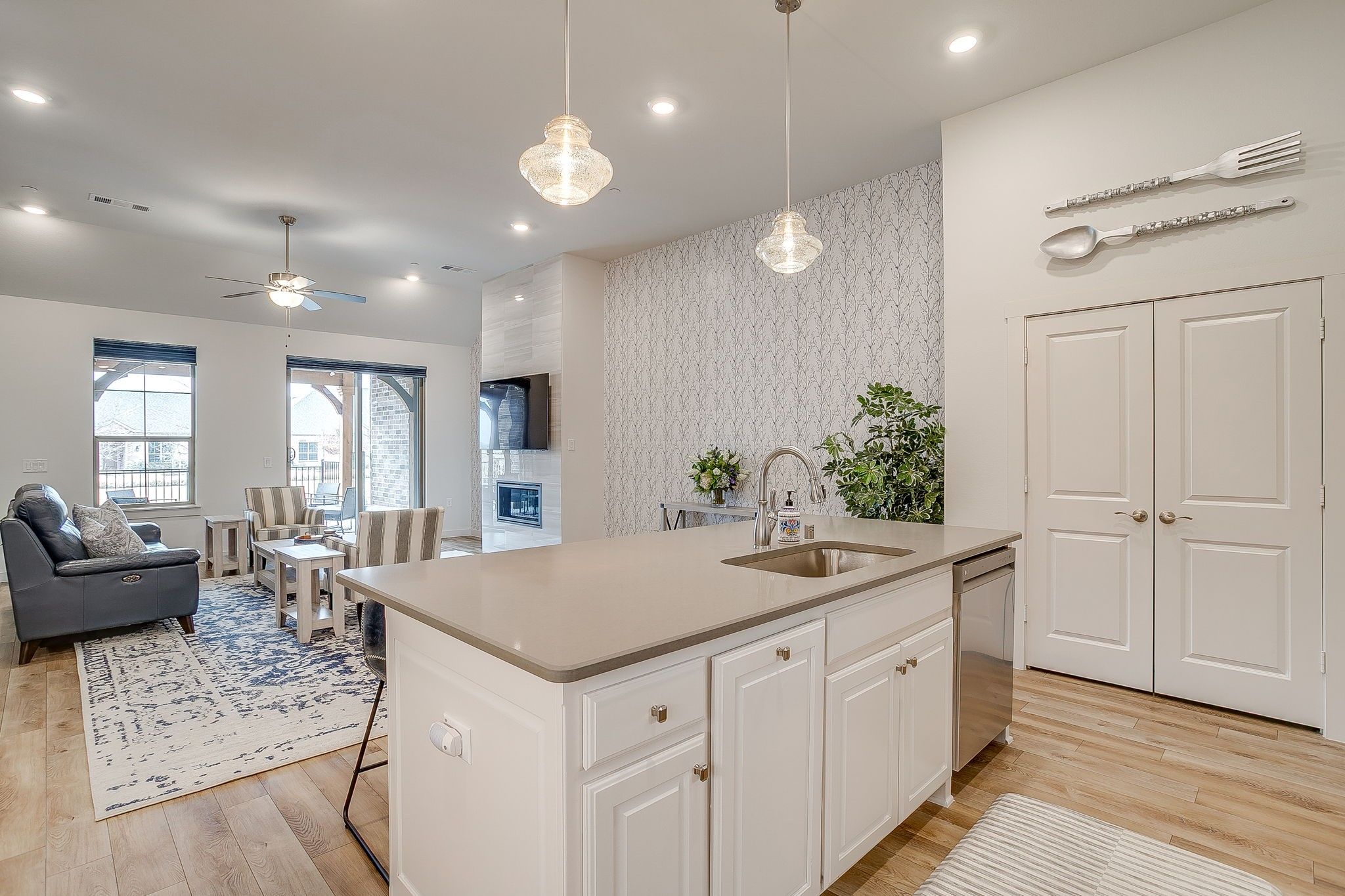 Welcome to low-maintenance luxury living in Windsong Ranch, one of Prosper’s premier master-planned communities. This beautifully designed open-concept townhome offers modern comfort paired with resort-style amenities. Inside, the light-filled floor plan features soaring ceilings, wide-plank flooring, and a seamless flow between the living, dining, and kitchen spaces. The kitchen showcases crisp cabinetry, stainless steel appliances, generous counter space, and a large island overlooking the main living area. The spacious living room opens to a covered patio, creating an easy indoor-outdoor connection ideal for morning coffee or evening relaxation. A thoughtfully added pergola enhances the front patio, providing a charming and functional outdoor space to enjoy year-round. The private primary suite offers a peaceful retreat with a standing shower and walk-in closet, while the additional bedroom provides flexibility for guests, a home office, or hobby space. Enjoy a true lock-and-leave lifestyle with access to Windsong Ranch’s unmatched amenities, including the iconic 5-acre crystal lagoon, resort-style pools, fitness center, tennis and pickleball courts, miles of walking trails, parks, playgrounds, and on-site dining. Conveniently located near Prosper ISD schools, shopping, and dining, this home delivers both comfort and lifestyle in one exceptional setting. HOA dues are $324 monthly, with additional quarterly dues of $630. Seller is open to conveying all furniture, washer, dryer, and refrigerator with an acceptable offer.