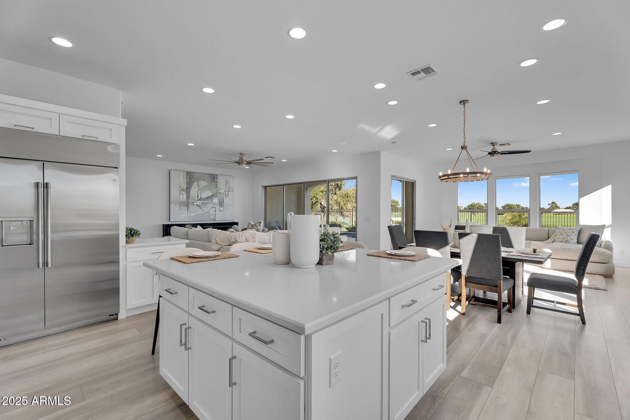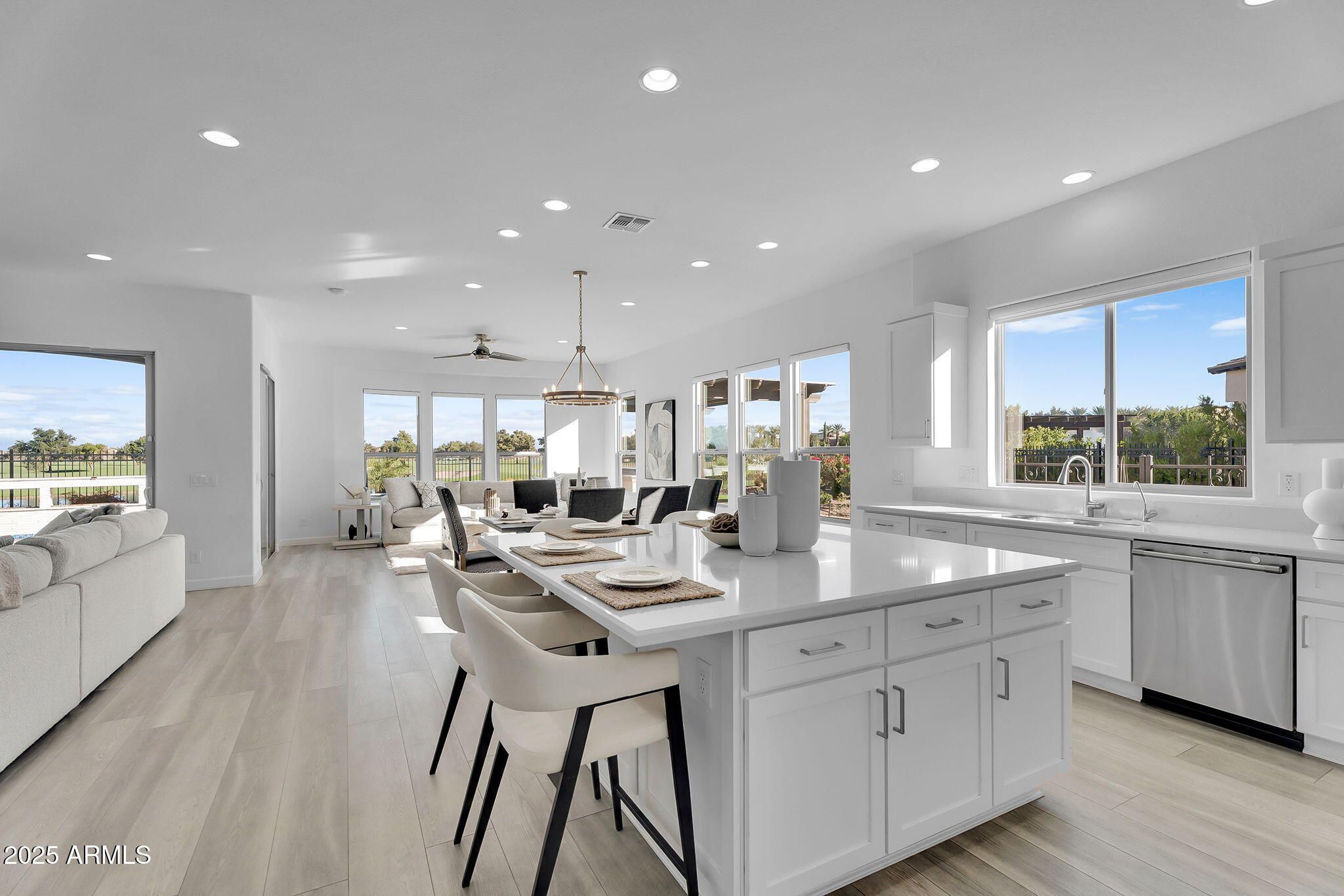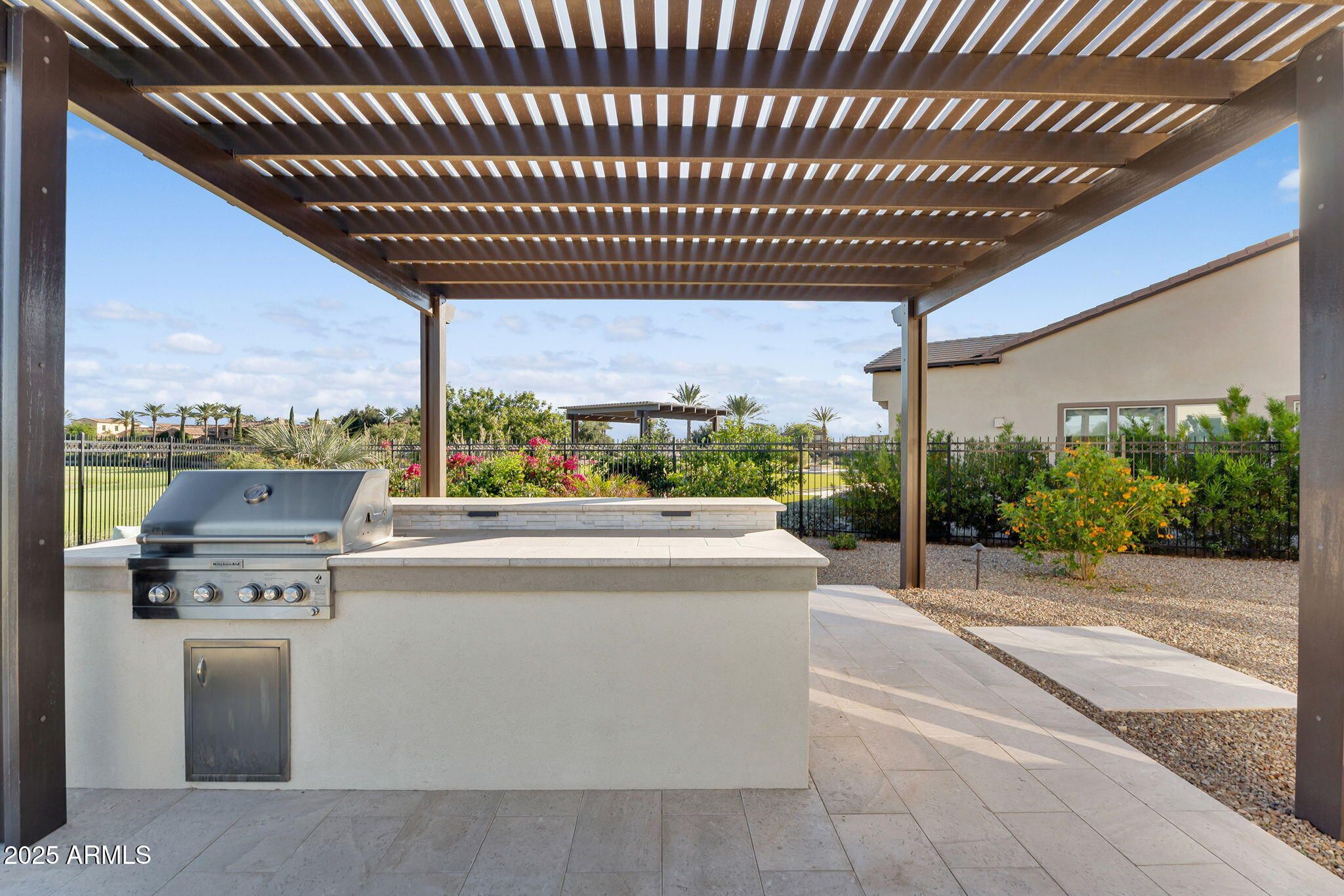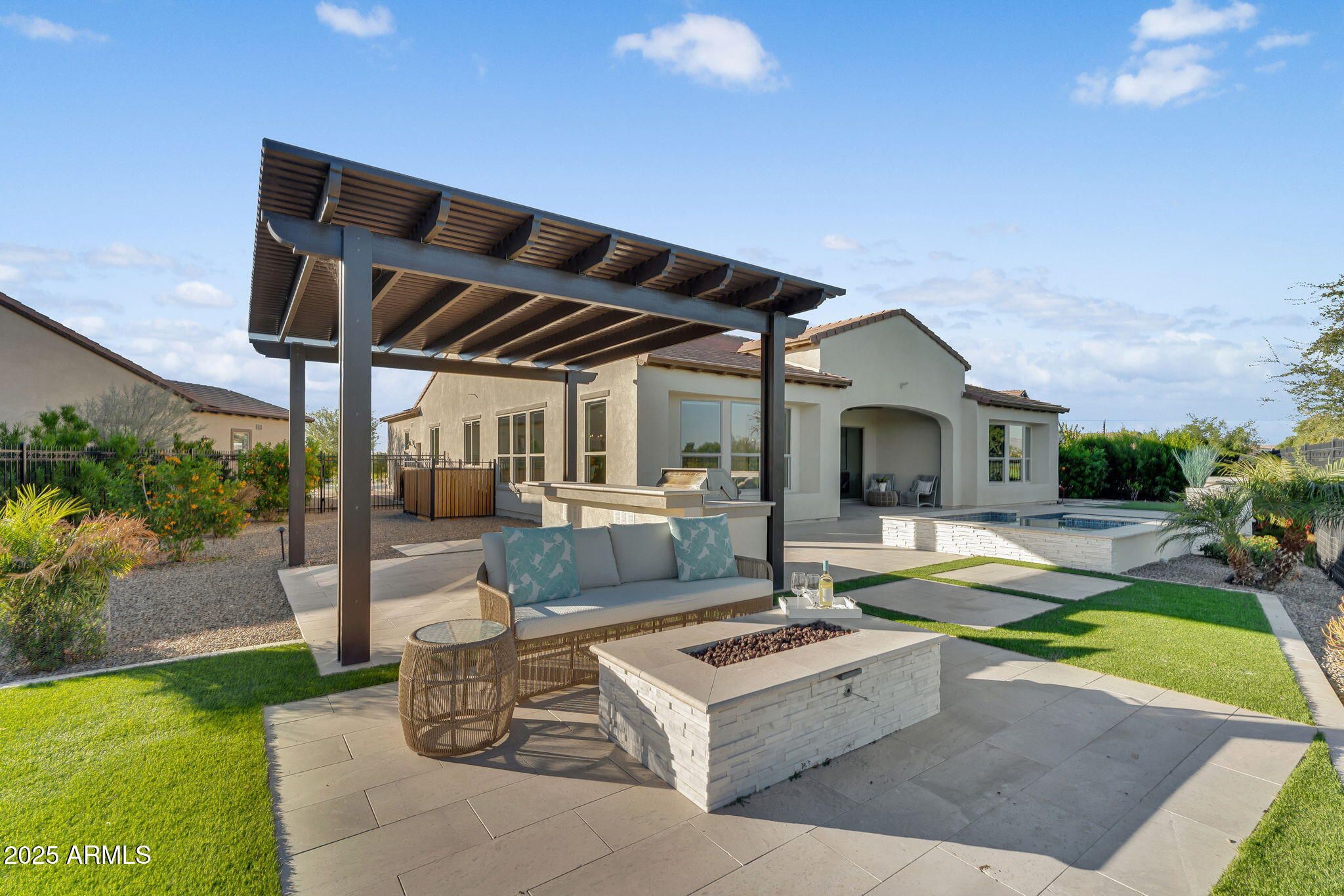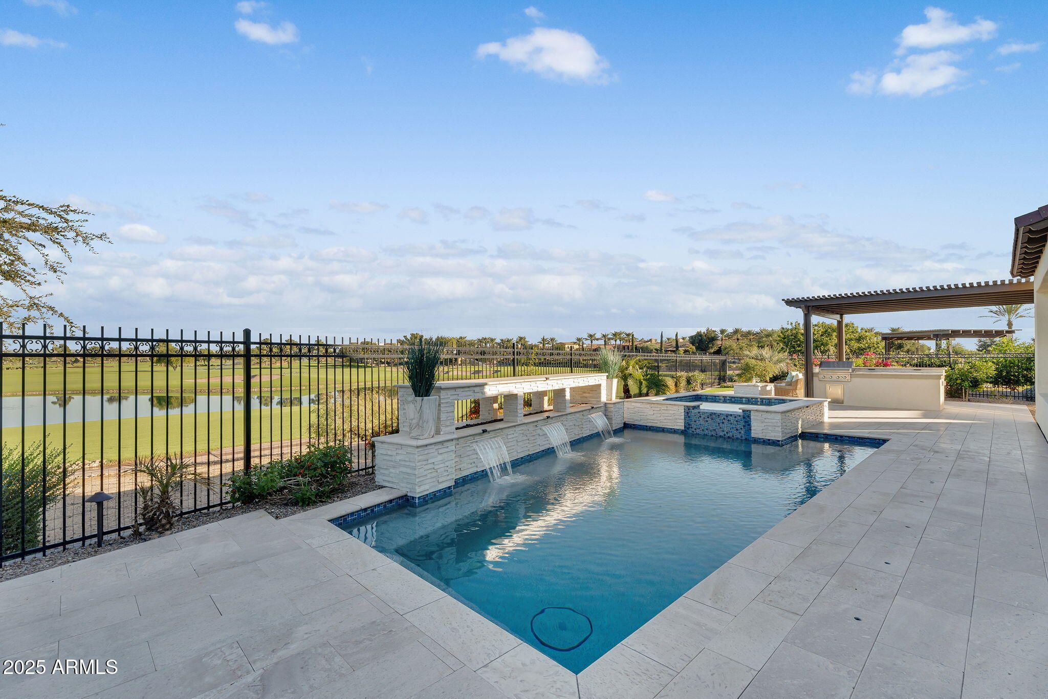 Experience luxury living on one of Encanterra Golf & Country Club's most desirable floorplans on stunning, premier homesite. This elegant Alora model with CASITA offers over 2,900 square feet of refined living space on an expansive 11,500 sq ft golf course lot, perfectly positioned on Encanterra's award-winning course. Wake each morning to breathtaking Superstition Mountain sunrises and serene panoramic water and fairway views. The outdoor retreat is truly spectacular — a private backyard oasis featuring a sparkling pool with fire feature, in-ground spa, built-in outdoor kitchen, and a covered pergola with seating and fire pit. Whether you're hosting a gathering or enjoying a quiet morning coffee, this setting provides a front-row seat to Encanterra's stunning landscape and relaxed lifestyle. Inside, the Alora's open-concept layout welcomes you with natural light, modern finishes, and elegant design details throughout. The attached casita offers the perfect blend of privacy and hospitality for guests or multi-generational living. Beyond your doorstep, Encanterra Golf & Country Club delivers a lifestyle unlike any other in a gated community where luxury meets connection. Residents enjoy world-class amenities including: -A state-of-the-art fitness center and spa - Multiple on-site restaurants and bars - Clubhouse and member events that foster genuine community - Resort-style pools, tennis, and pickleball courts -Golf, lifestyle clubs, and classes that enrich every day Here, sophistication and comfort come together in perfect balance, all just moments from the charm of Queen Creek and the best of the Phoenix Southeast Valley. If you've been searching for a home that truly embodies "the good life on the golf course," this is it. Discover the unparalleled blend of elegance, community, and beauty that only Encanterra can offer.