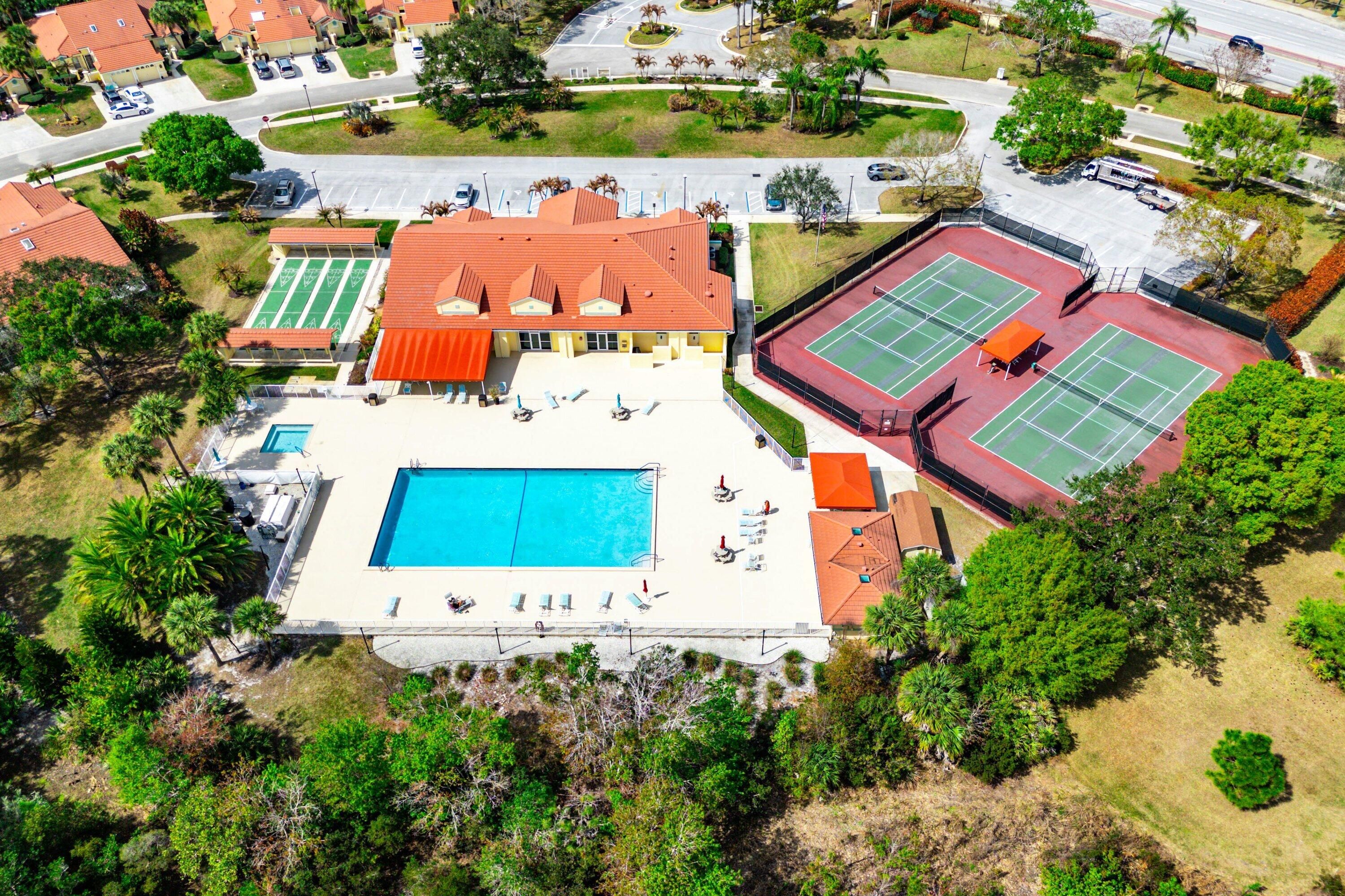 - Association Fee Includes: Billiard Room, Clubhouse, Fitness Center, Pool, Shuffleboard Court, Spa/Hot Tub, Tennis Court(s), Trail(s), Community Room, Internet Access, Gated, Cable TV, Insurance, Maintenance Grounds, Pest Control, Security, Sewer, Water, Common Areas, Real Estate Taxes