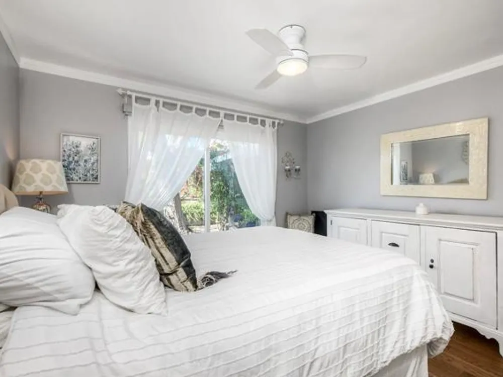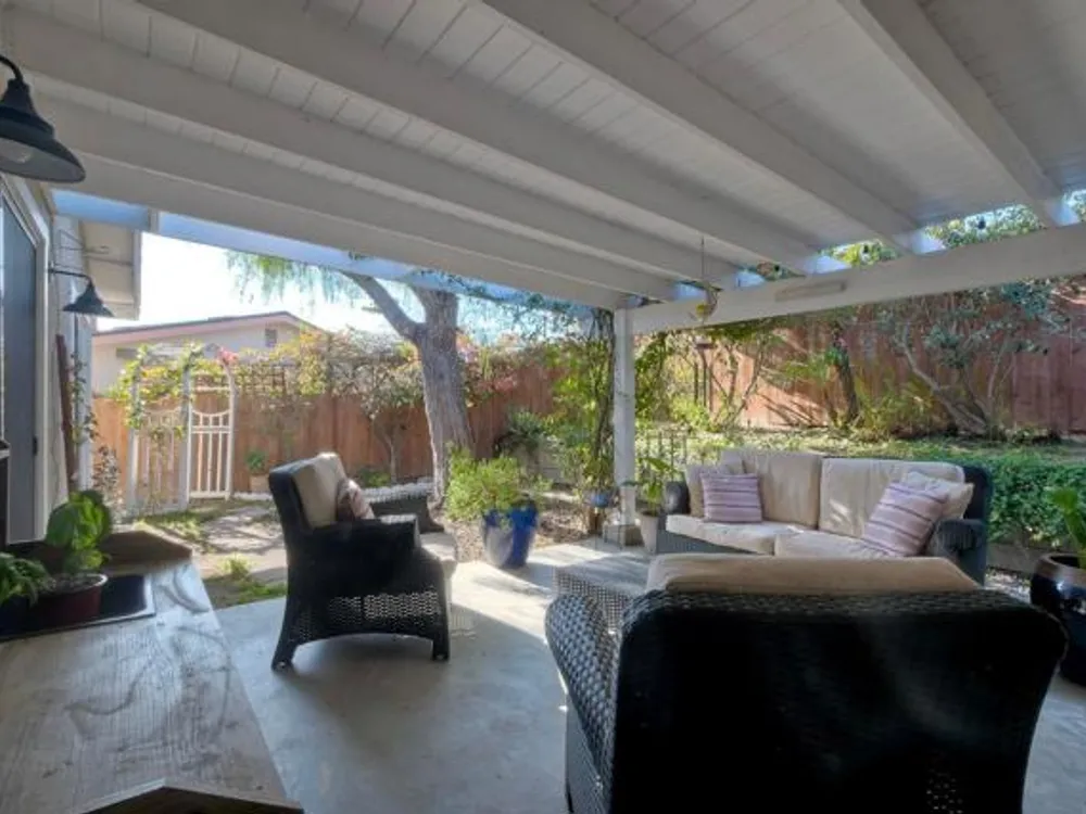 Coastal Cottage Living at Its Finest – Welcome to Costa Serena! Step into this charming 2-bedroom, 1-bath Twin Home in the highly desirable 55+ Costa Serena Community, offering a true Cottage feel throughout. Thoughtfully Updated and Move-in ready, the home features Real Oak engineered Wood Floors with moisture barrier, Plantation Shutters, and custom Patio door Automatic Shades. The modernized kitchen boasts Granite Countertops and comes complete with a Refrigerator, Stove, and Microwave. The bathroom has been tastefully refreshed, complementing the home’s bright and inviting character. The attached one-car Garage, with direct access from the kitchen, offers convenience for parking, storage, or a personal workshop. Outdoors, the Front Yard overlooks the peaceful neighborhood, while the private Backyard is designed for easy enjoyment with low-maintenance landscaping and a delightful potting Shed/Workshop with Barn Doors—your perfect retreat for hobbies or gardening. Pets are allowed. Best of all, Costa Serena has NO HOA Fees, giving you freedom and value that’s hard to find. Conveniently located just minutes from Shopping, Healthcare, Freeways, and the Sandy Beaches, Oceanside Harbor, and Pier. This home is more than just a place to live—it’s a Lifestyle. Don’t miss
