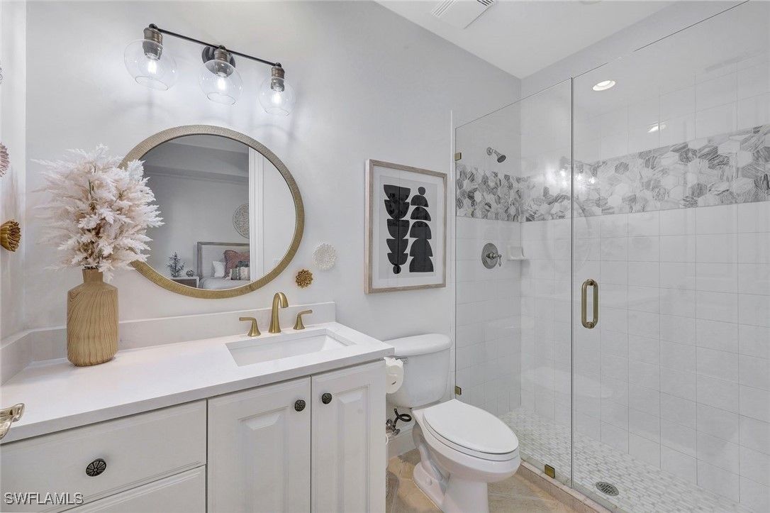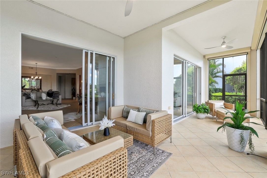 This unit is a must see! Stunning panoramic lake & golf course views are only one of the reasons you will fall in love with this beautiful first floor end unit featuring 3 bedrooms and 3 baths in Montreux at Fiddler's Creek. Montreux is a particularly popular village due to its close proximity to the Club and Spa, it's own beautiful village pool, new roofs, and debt portion of the CDD paid in full. A brand new landscape design is being installed and nearing completion. This lovely, absolutely move in ready Coach Home has been meticulously maintained, recently renovated, freshly painted, decorated with a contemporary palette, thoughtful accents, and fabulous modern light fixtures. Enjoy the kitchen's new quartz counters, gorgeous backsplash, stainless appliances, and newly leveled peninsula, perfect for entertaining. The natural light pours into the kitchen and charming casual dining nook leading you to the spacious family room with modern touches everywhere you look. Guests will swoon over the chic dining and living room with vintage bar. The primary suite will delight with dual custom closets and private door to the oversized lanai. All bathrooms have new quartz counters, new tile and designer fixtures. Updates include a new A/C, tankless hot water heater, and electric hurricane screens on lanai providing low maintenance. Guest rooms are situated away from the primary suite offering privacy your friends and family will enjoy. This wonderful space lives like a single family home with the low maintenance and convenience of a condominium. Fiddler's Creek is a resort community like no other, with award winning amenities, 2 restaurants, tennis, bocce, a terrific enlarged pickleball experience and a full social calendar of events year round. Separate private beach memberships available plus the only course in Naples, currently offering memberships with no waitlist, to the private equity Arthur Hills designed Creek Course, featuring a brand new golf clubhouse as well as a full turf renovation. There are so many reasons people fall in love with Fiddler's Creek, from the lush landscaping, to the resort style amenities, to the superior location, minutes from the white sands of Marco or the fabulous 5th Avenue of downtown Naples. All this can be yours! Come find your own slice of paradise today!