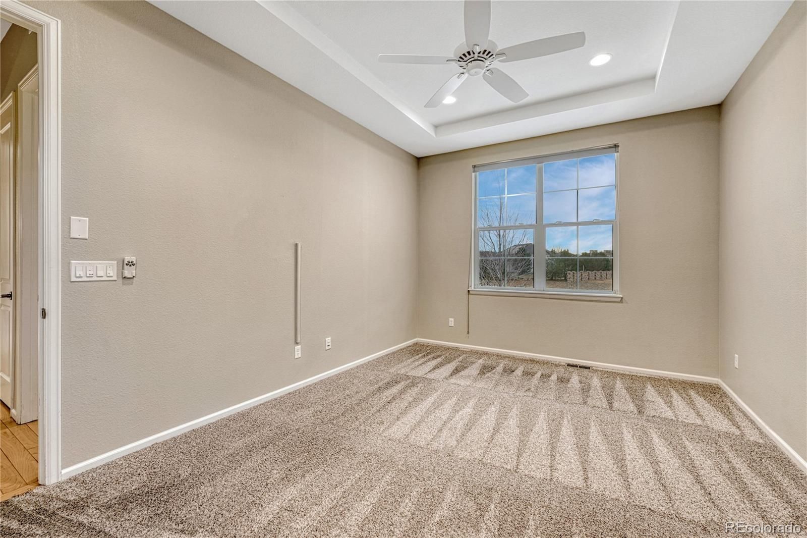 PRICED TO SELL. BEST LOT AVAILABLE AT NEW HAVEN IN THE MEADOWS. Backs to open space, open floor plan, finished basement. Main level includes 2 bedrooms, 2 bathrooms, office, laundry room with utility sink, gas fireplace, stone surround, hardwood floors, 10' ceilings, covered front porch, & lots of natural lighting. Gourmet kitchen includes a double oven, 4 burner gas cooktop, stainless steel appliances, large island, slab granite countertops, room for stools, beautiful backsplash, and designer pendant lighting. Primary bedroom includes views of the open space, coffered ceiling, bathroom with a walk-in shower, closet w/built-in shelving, dual sink vanity, Corian countertops and tile floors. Fully finished basement has 9' ceilings, large great room, wet bar rough-in, bedroom, full bathroom, & finished/unfinished storage areas. All appliances at the property are included. Other items include private covered back patio w/views, sun shades, garage w/epoxy flooring, professionally landscaped yard, central A/C. HOA includes exterior maintenance & insurance, snow removal, yard maintenance/watering, trash/recycle, and more. This home has a no maintenance yard plus reduced homeowners insurance with an H06 policy. Located in The Meadows, this property is close to stores, restaurants, hiking/biking trails, parks with tennis & pickle ball courts, schools, I-25, DTC, and much more.