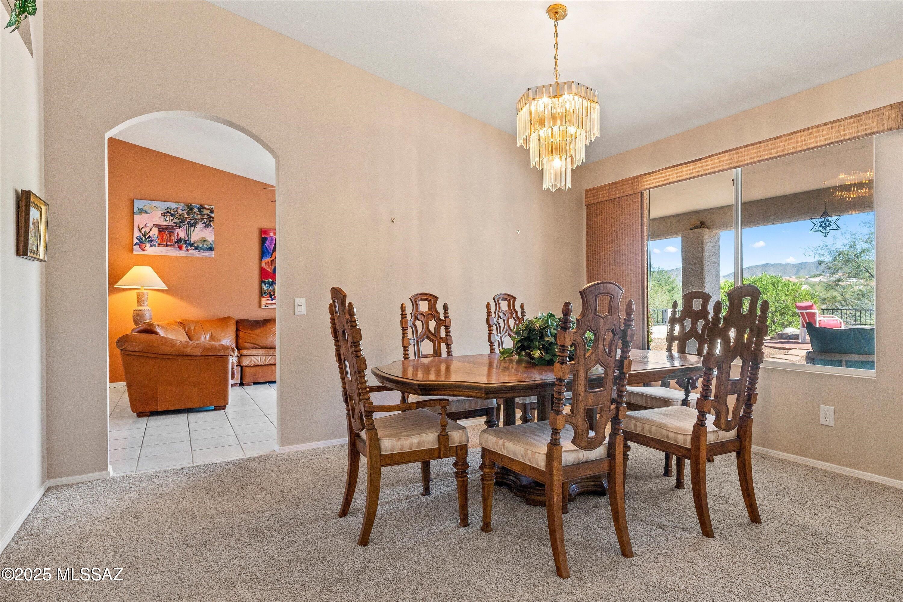 This sought after Topaz model features 2 Bedroom plus a Den is situated on a generous golf course lot. The kitchen has been updated to include ample cabinetry, granite countertops, and stainless steel appliances. The primary suite offers backyard views and an upgraded en-suite bathroom with double vanities, a large, tiled corner shower, and a walk-in closet. Additional spaces include a den, guest bedroom, and bath, round out this inviting home. The expansive yard and covered patio provide a perfect space for entertaining. The property backs onto a common area separating it from the golf course and offering mountain views beyond. This residence exemplifies the finest aspects of SaddleBrooke living.