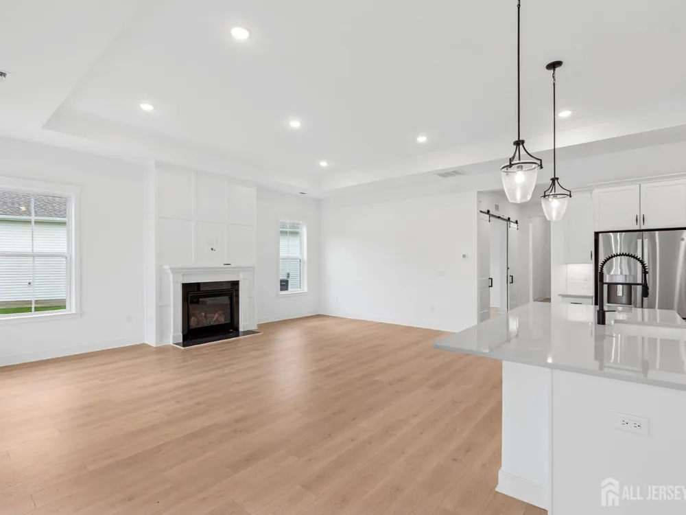 Welcome to the Poitier ESP at Serenity Walk at Plainsboroa thoughtfully designed 3-bedroom, 3-bathroom ranch-style home offering 2,120 sq. ft. of elegant living space. This one-story layout features a grand 13' foyer, a dedicated home office, and an Extra Suite Plus with a private living room and full bathideal for guests or multi-generational living. The open-concept great room impresses with vaulted ceilings, optional beams, and a cozy fireplace, flowing seamlessly into a chef's kitchen with a spacious center island and ample storage. A 12' sliding glass door leads to a vaulted covered patio, perfect for outdoor entertaining. The primary suite offers a spa-like bath and generous walk-in closet. Enjoy low-maintenance 55+ living near downtown Princeton.
