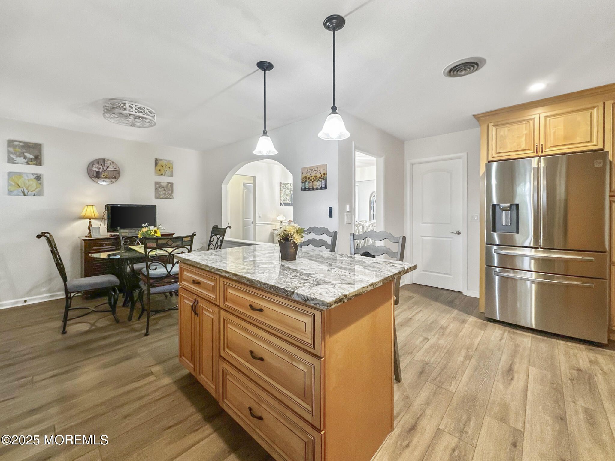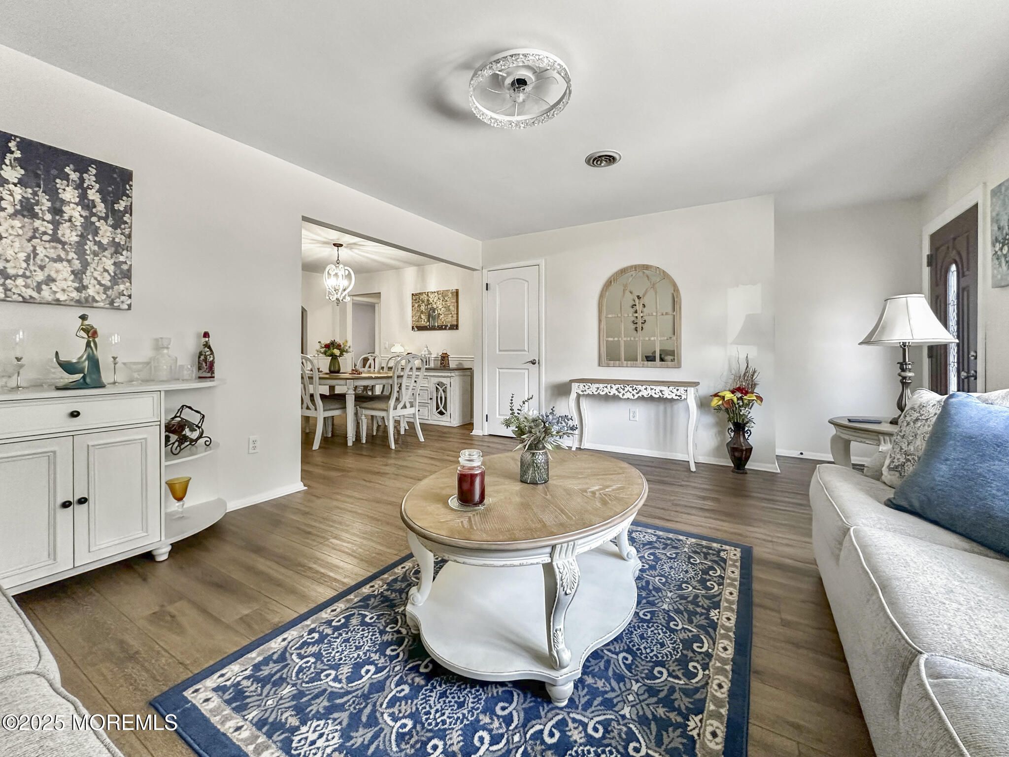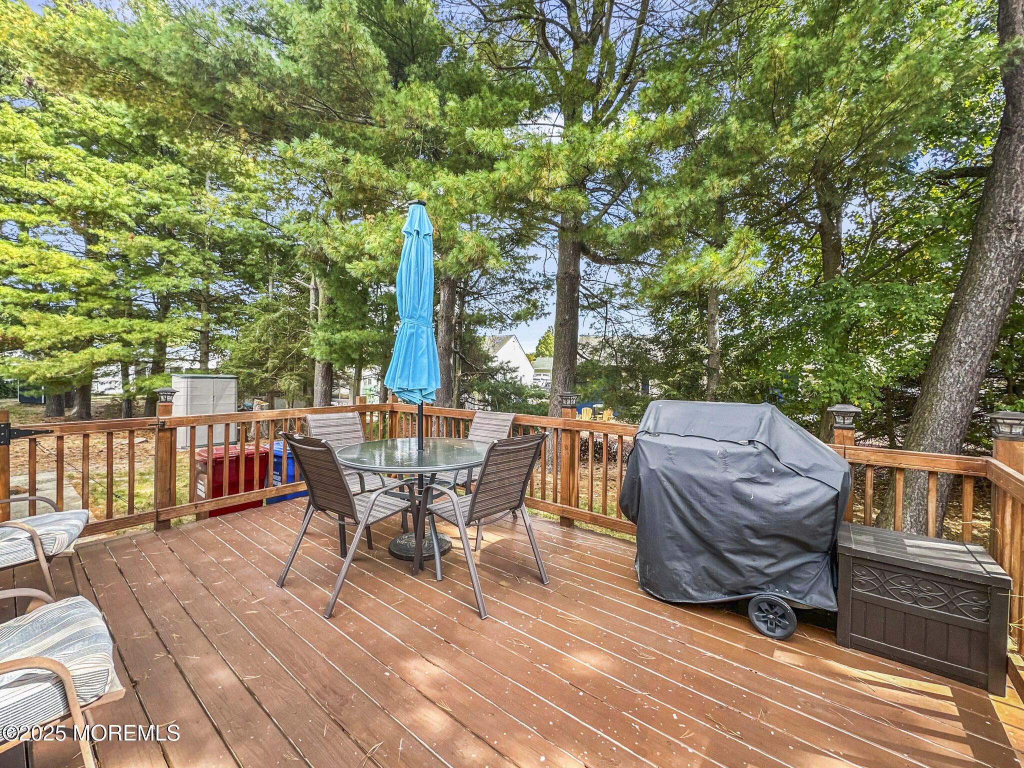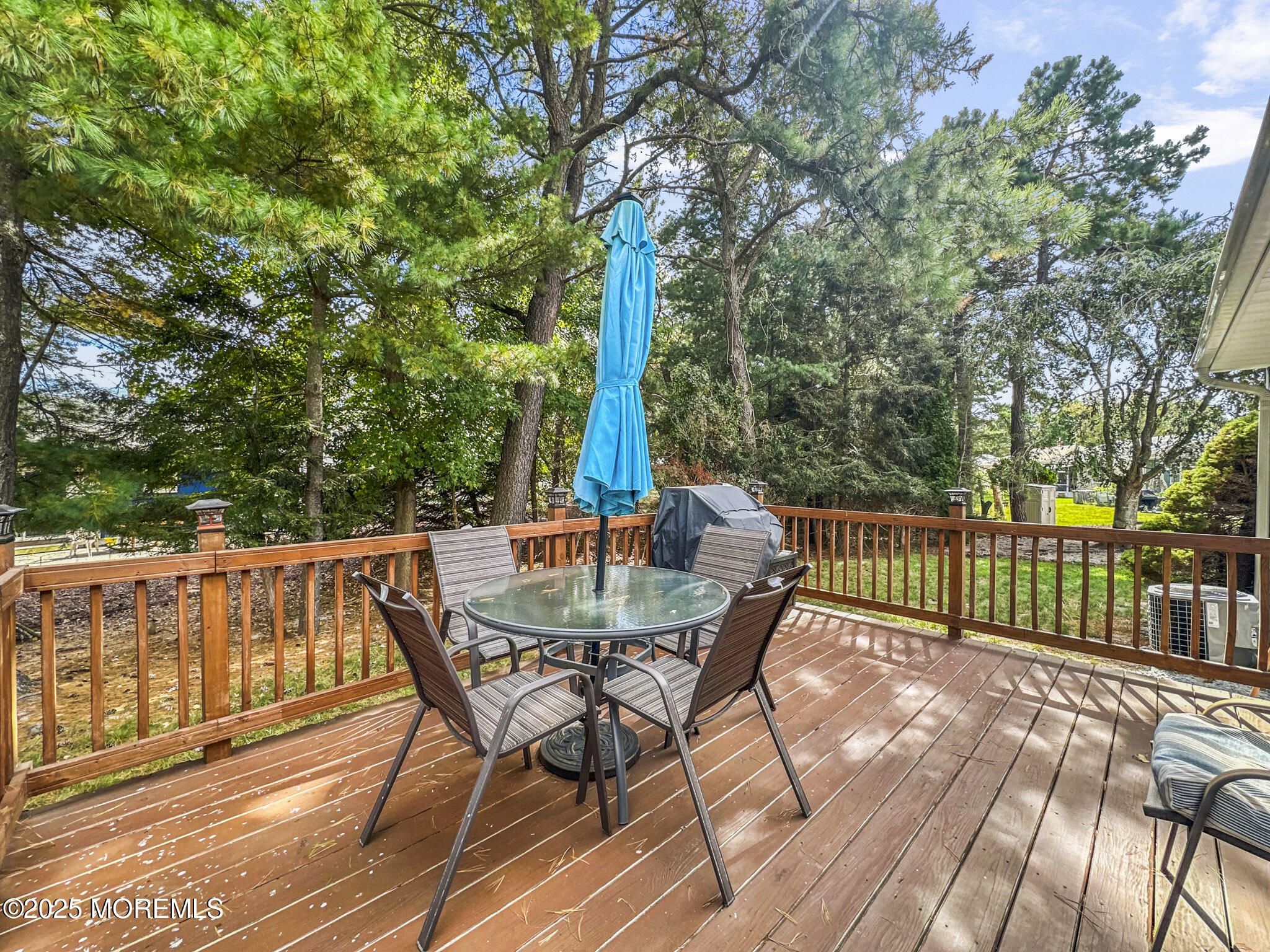 Discover Comfort & Style in Silver Ridge North! Welcome to your move-in ready ranch nestled at the end of a quiet cul-de-sac in the desirable 55+ community of Silver Ridge North. This immaculate home features 2 BD plus 3rd bonus room, 2 beautifully updated baths. As you step inside, you'll notice the upgraded vinyl plank flooring flowing throughout & the open, sun-lit dining + family room areas anchored by a large bay window—perfect for relaxing or entertaining. The heart of the home is the stunning kitchen, complete with granite countertops, anti-slam drawers, tiled backsplash, SS Appliances incl. a 5-burner gas stove, & center island offering extra prep space + casual seating. The primary suite offers a private full bath (renovated) w/ a bumped-out tiled shower, upgraded vanity, & fresh modern finishes giving you a spa-like feel every day. The second bedroom & full common bath round out the layout, giving flexibility whether you're hosting guests or using one room as a home office. Step outside onto your private deck overlooking a tranquil, wooded backyard ideal for enjoying morning coffee, bird-watching, or winding down in the evening in peace. Additional highlights include: 1) One-car garage with direct entry, 2) newer HVAC & water heater. 3) Low-maintenance exterior w/ Deck! Engaging community amenities: clubhouse, pool, shuffleboard courts, and bocci in a 55+ association setting that promotes active, social living. Desirable location: serene neighborhood, yet close to local shopping, dining, and the Jersey Shore lifestyle. If you're looking for a perfect blend of comfort, style, and convenience in a well-maintained community, this home checks all the boxes. This could be the home you've been waiting for!