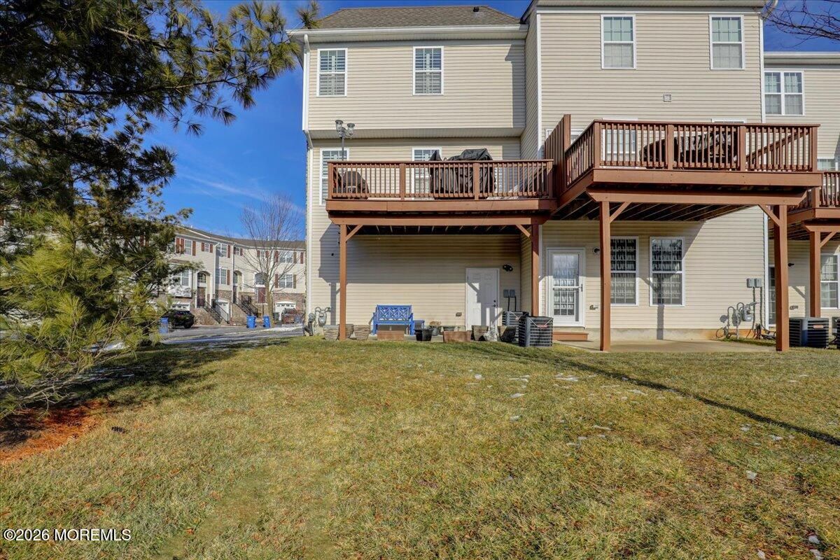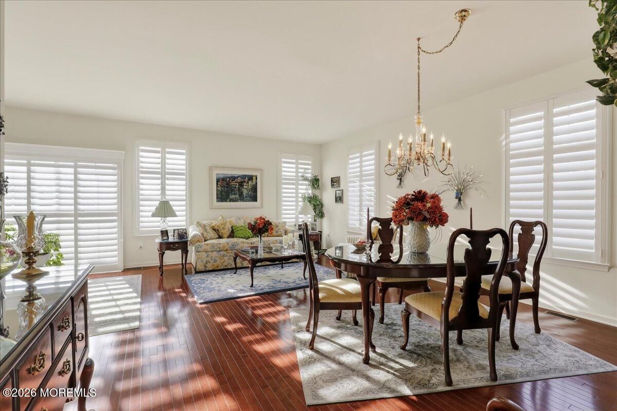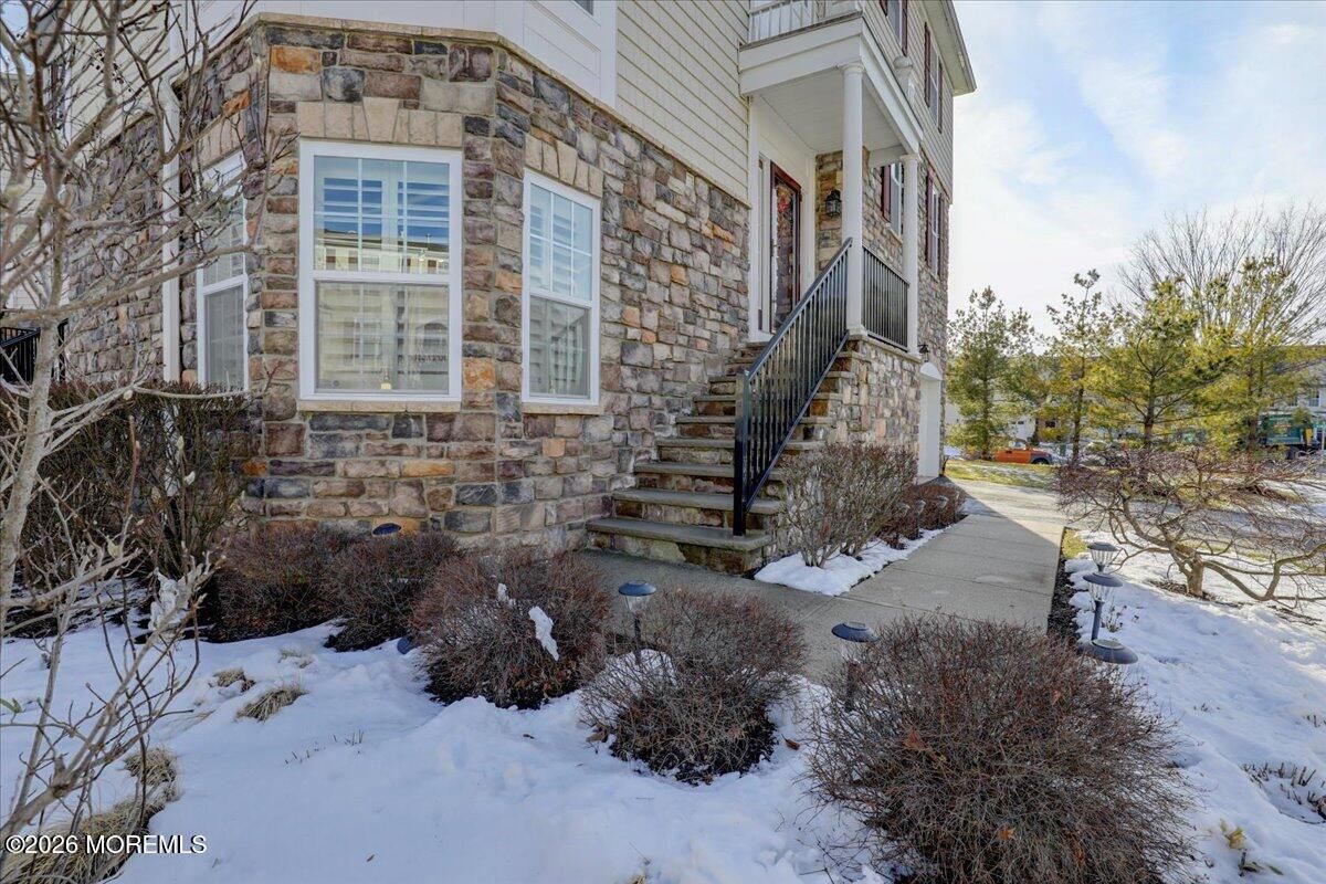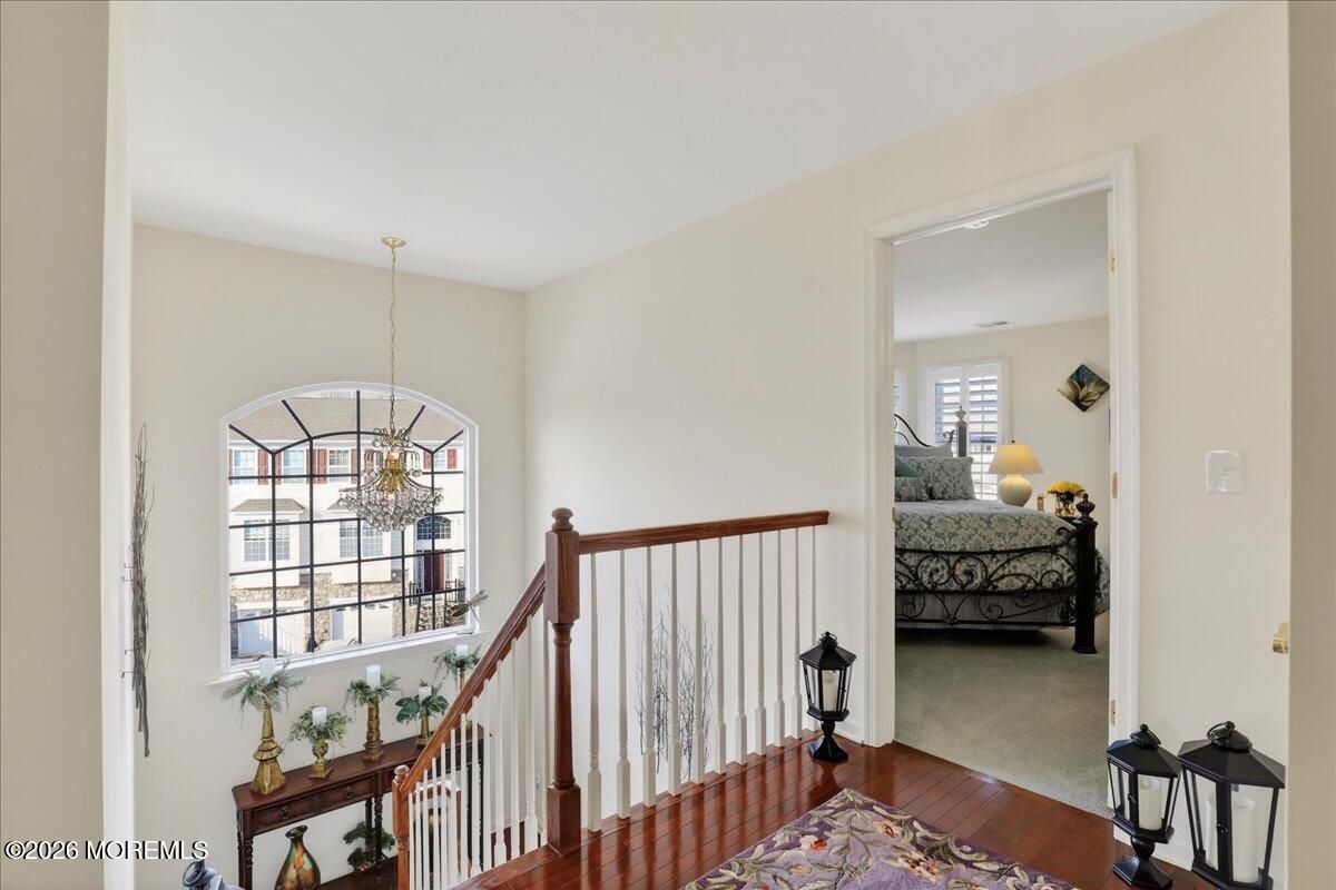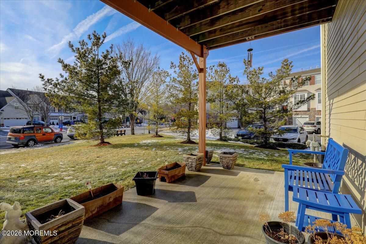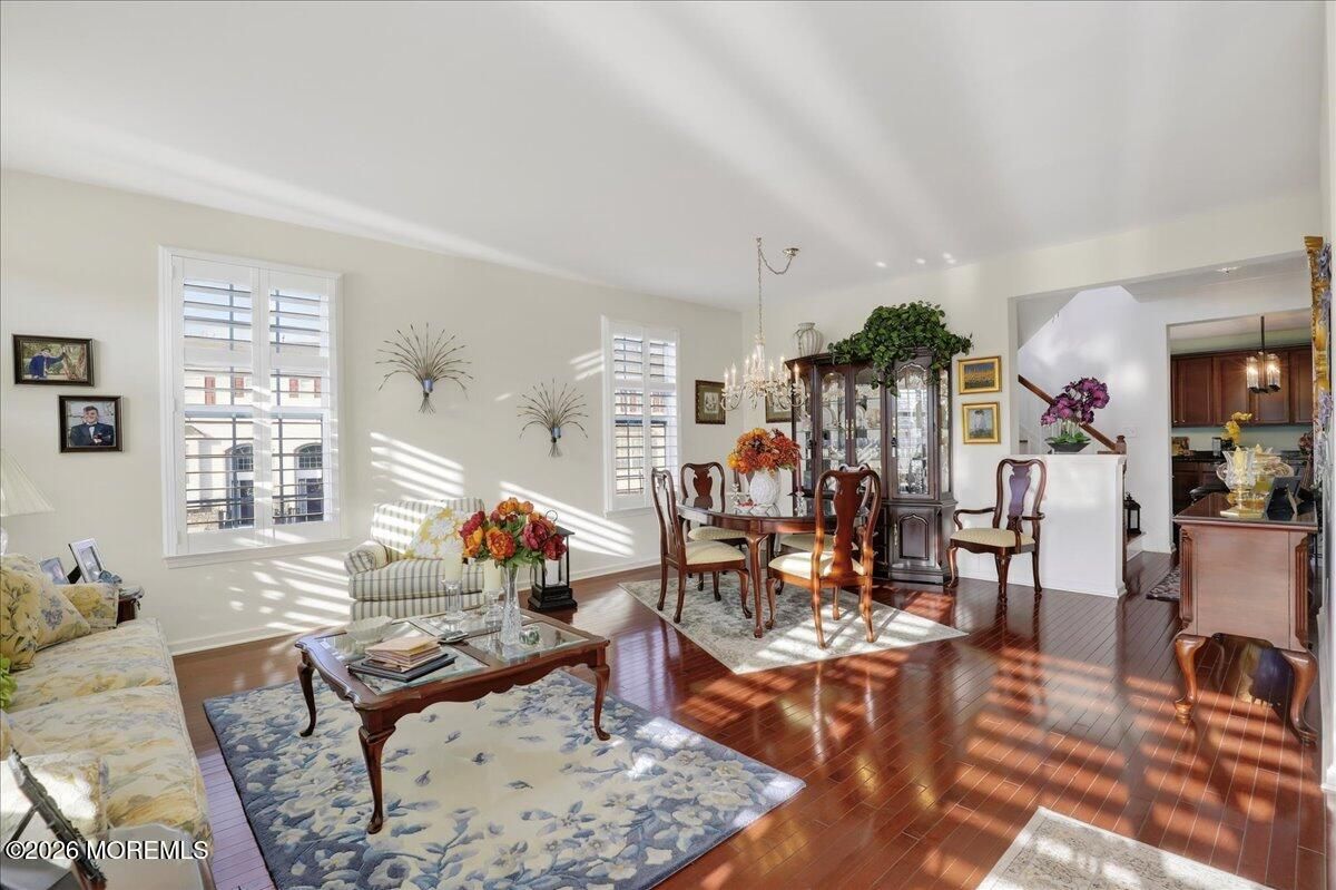Welcome to this elegant and sun-filled 2-bedroom, 2.5-bath end-unit townhouse with a 2-car garage, ideally situated in the sought-after Madison Crossing 55+ community. From the moment you enter, the dramatic two-story foyer sets the tone, featuring a chandelier on a lift for effortless elegance and convenience. The open-concept main level is designed for both comfort and entertaining, offering a beautifully appointed eat-in kitchen with center island that flows seamlessly into the dining and living areas. Sliding glass doors lead to a generous private deck, creating the perfect indoor-outdoor living experience. Gleaming hardwood floors, custom plantation shutters, a walk-in pantry, and a stylish powder room complete this level. See more - Upstairs, retreat to a luxurious primary suite featuring spacious walk-in closets and a spa-inspired en-suite bath with double vanities, an oversized stall shower, and a private water closet. A sun-filled second bedroom, a full guest bath, and convenient second-floor laundry provide both flexibility and ease of living. The finished lower level adds valuable living space, perfect for a family room, home office, or media lounge, and includes an additional powder room, ample storage, and access to the two-car garage. The garage opens to a private patio, offering yet another peaceful outdoor retreat. Additional highlights include two-zone heating and air conditioning, abundant closet space, and a layout designed for effortless everyday living. Ideally located near Route 9 shopping, dining, and transportation, this home offers the perfect balance of comfort, convenience, and sophistication. Come experience the lifestyle you deserve and enjoy all that Madison Crossing has to offer.