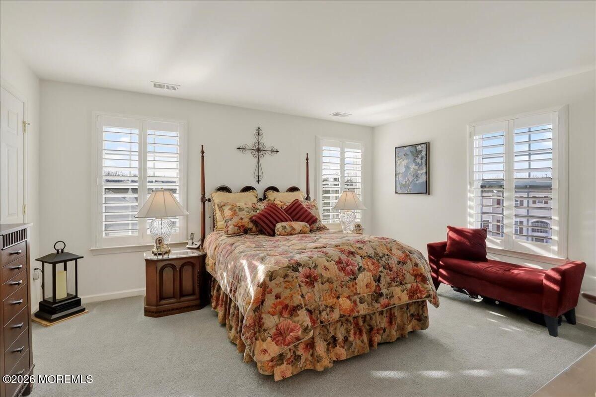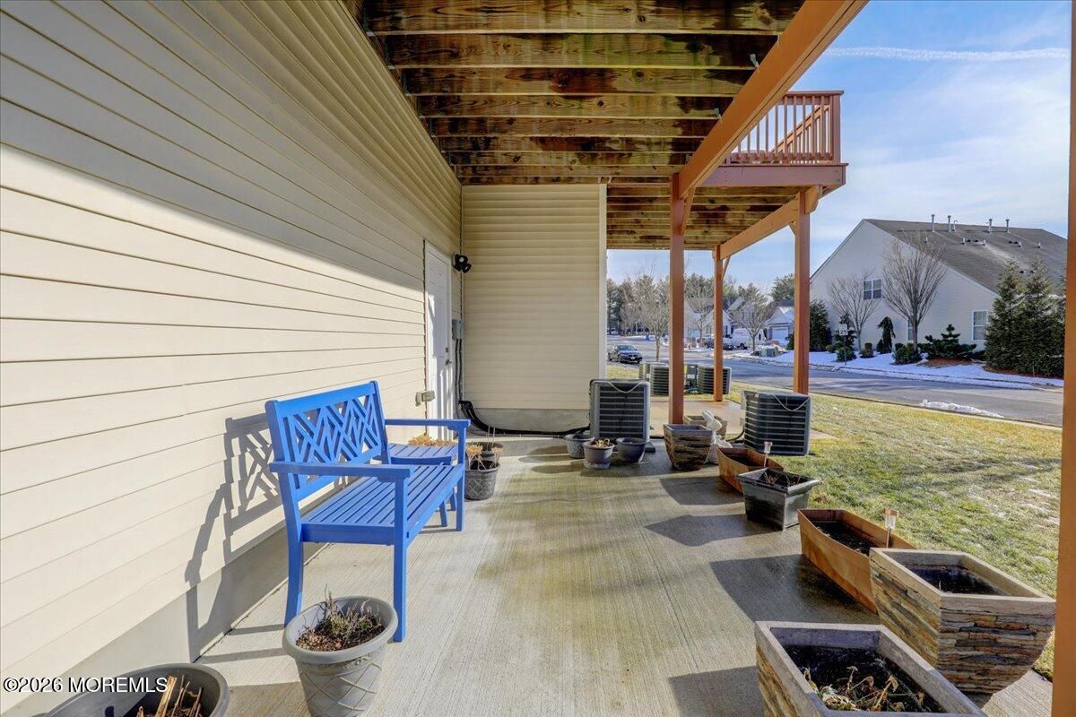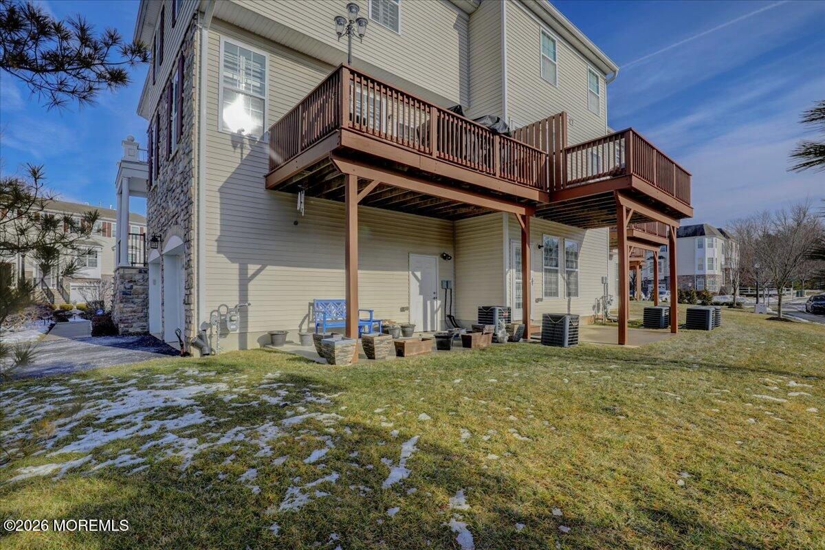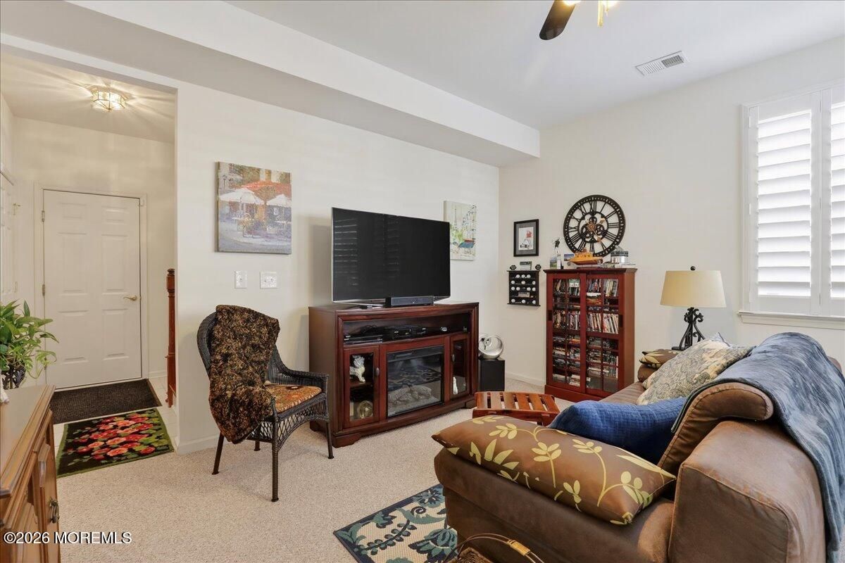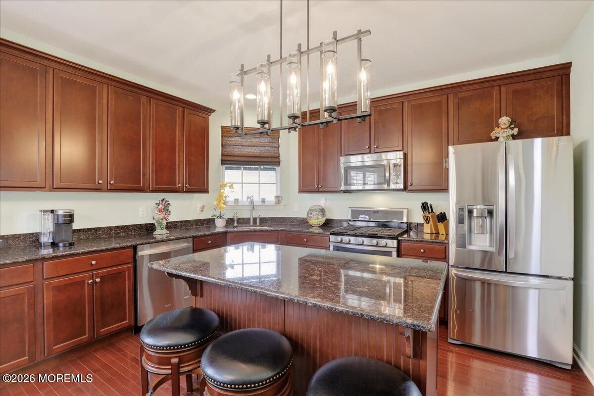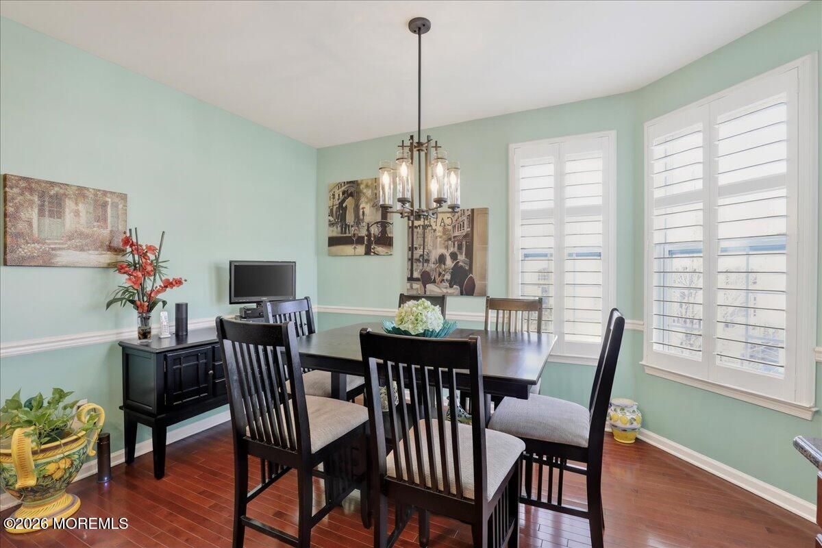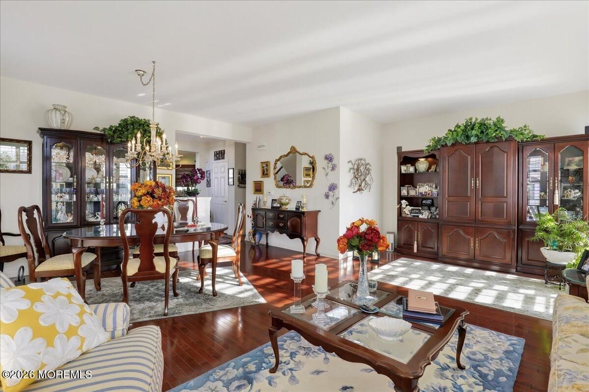 Welcome to this elegant and sun-filled 2-bedroom, 2.5-bath end-unit townhouse with a 2-car garage, ideally situated in the sought-after Madison Crossing 55+ community. From the moment you enter, the dramatic two-story foyer sets the tone, featuring a chandelier on a lift for effortless elegance and convenience. The open-concept main level is designed for both comfort and entertaining, offering a beautifully appointed eat-in kitchen with center island that flows seamlessly into the dining and living areas. Sliding glass doors lead to a generous private deck, creating the perfect indoor-outdoor living experience. Gleaming hardwood floors, custom plantation shutters, a walk-in pantry, and a stylish powder room complete this level. See more - Upstairs, retreat to a luxurious primary suite featuring spacious walk-in closets and a spa-inspired en-suite bath with double vanities, an oversized stall shower, and a private water closet. A sun-filled second bedroom, a full guest bath, and convenient second-floor laundry provide both flexibility and ease of living. The finished lower level adds valuable living space, perfect for a family room, home office, or media lounge, and includes an additional powder room, ample storage, and access to the two-car garage. The garage opens to a private patio, offering yet another peaceful outdoor retreat. Additional highlights include two-zone heating and air conditioning, abundant closet space, and a layout designed for effortless everyday living. Ideally located near Route 9 shopping, dining, and transportation, this home offers the perfect balance of comfort, convenience, and sophistication. Come experience the lifestyle you deserve and enjoy all that Madison Crossing has to offer.