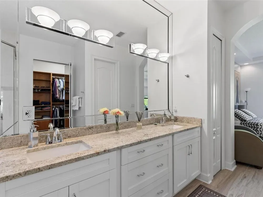 One or more photo(s) has been virtually staged. Welcome to 37 Jasmine Drive, a stunningly renovated Renoir model home boasting 3 bedrooms and 2.5 baths, nestled within the charming River Walk neighborhood of Grand Haven. From its elegant tiled roof to the inviting paver driveway, every detail of this residence exudes sophistication. Step inside to discover a spacious eat-in kitchen, newly renovated to perfection. Adorned with ample cabinet space, a walk-in pantry, and a butler's pantry, this culinary haven features modern appliances, including a gas stove, and a captivating island with convenient storage.and quartz counter tops. Adjacent is a formal dining room, ideal for hosting gatherings and creating lasting memories. Retreat to the expansive master bedroom, complete with a walk-in California closet and a recently renovated master bath featuring a luxurious walk-in shower and double vanities. Imagine waking up to serene views of the preserved area outside your window. Entertain or unwind on the vast screened patio, offering panoramic vistas of the picturesque and very private surroundings. The entire home has been tastefully painted, enhancing its timeless appeal. Additional highlights include an irrigation well with sprinklers, ensuring lush landscaping year-round, and a laundry room boasting ample storage space for added convenience. Enjoy easy access to the Intracoastal Waterway walkway trail which offers miles of walking, biking or fishing adventures and proximity to the Village Center cafe and amenities (gym pool, tennis pickleball, bocce, exercise classes) and Jack Nicklaus signature golf course, making every day in this exquisite home an unparalleled experience. Welcome to your new haven of luxury living.All this and more awaits you everyday, just beyond the 24 hour gated entrance to Grand Haven.