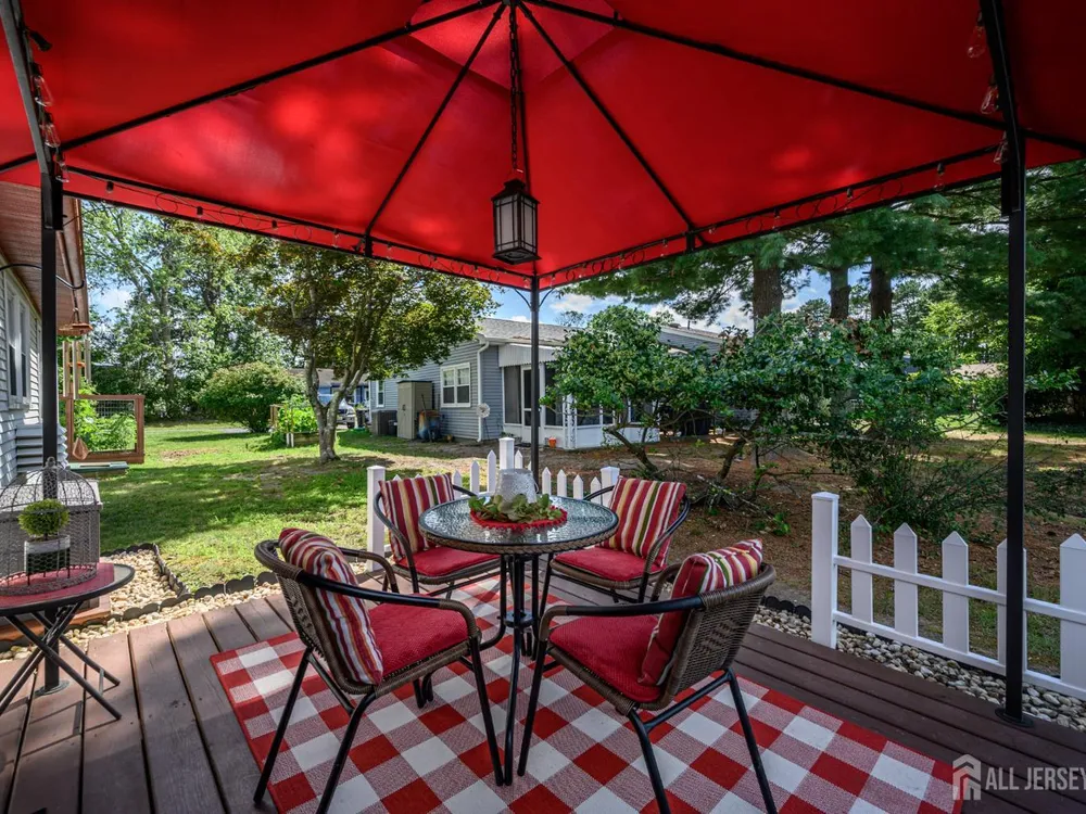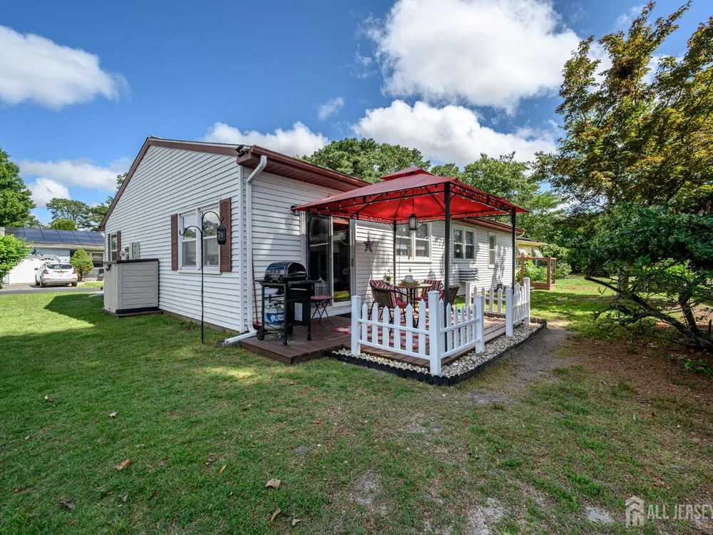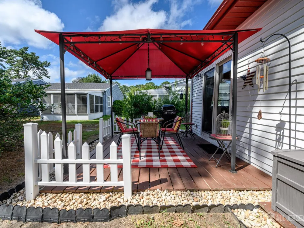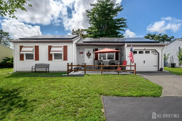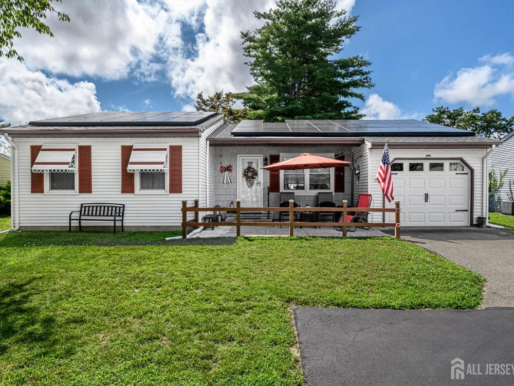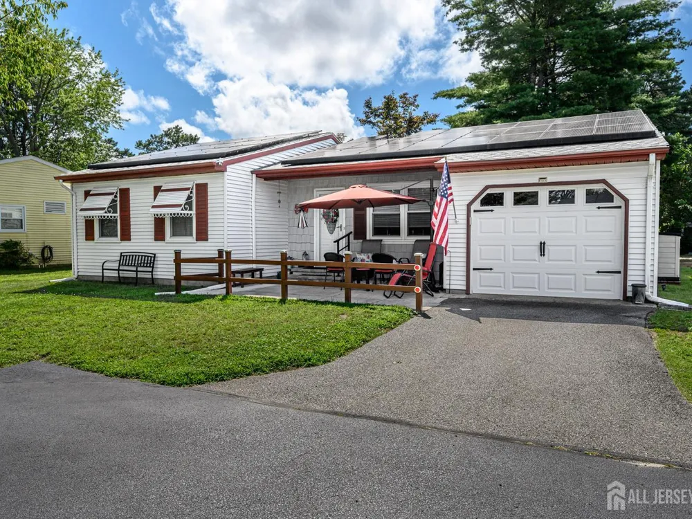 Home Sweet Home! Crestwood VII premieres this lovely 2 Bed 1 Bath Newbury model with 1 Car Garage and NEW Roof (Aug 2024), ready and waiting for you! Lovingly owned and maintained, with pride of ownership. Charming covered front porch boasts curb appeal, the perfect spot to enjoy your morning coffee with a new patio cantilever umbrella. Step in to find a spacious, light and bright interior with generous room sizes and plenty of natural light all through. Large living room, separate formal dining room, and cozy den with faux wood stove with sliders to the rear patio makes for seamless living and entertaining. Kitchen features ample upgraded maple wood cabinetry and decorative backsplash. Down the hall, the convenient laundry room, the main full bath, and 2 generous bedrooms with plush carpets and lighted ceiling fans for added comfort. Primary bedroom boasts a faux electric fireplace for added coziness. Dine al fresco on the private back patio with a 10x10 canopy for shade, and plush, peaceful views. Portable backup generator with dual gas/propane fuel adds the package. 1 car garage, driveway parking, solar panel savings, the list goes on! Enjoy amenities such as clubhouse events, exercise facilities, the community bus, mini golf, and more! All in a prime location, just 20 minutes to Seaside Boardwalk and Beaches, 40 minutes to LBI, and 10 minutes to Harry Wright Lake. *House comes furnished, if desired* Don't miss out! This could be the one!!