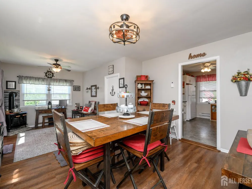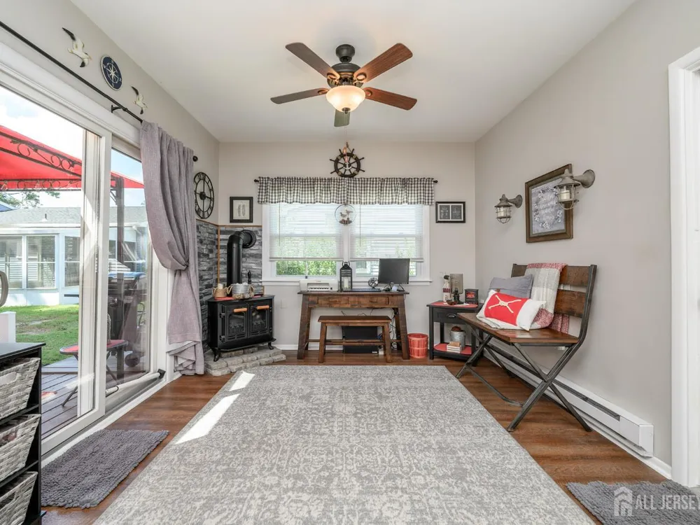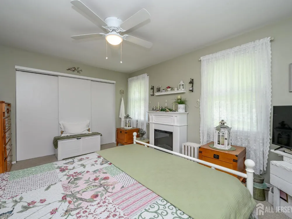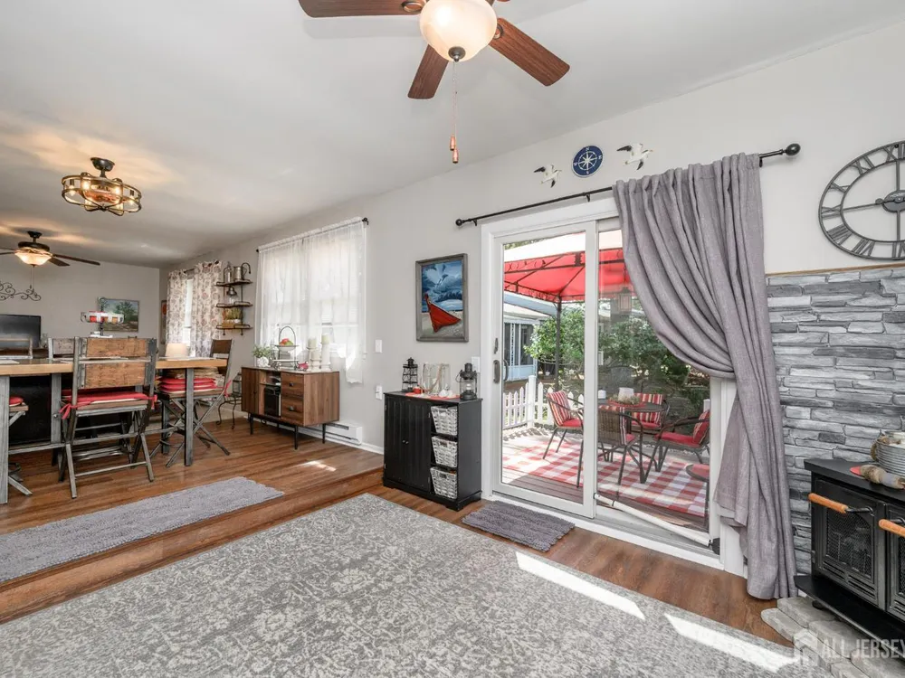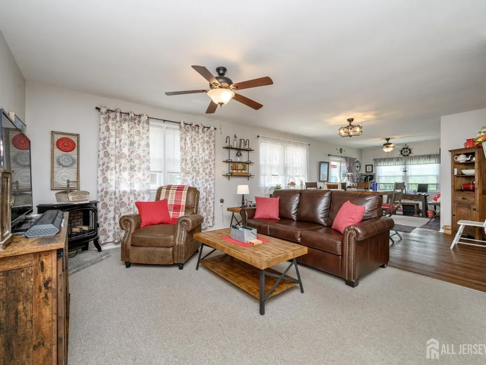 Home Sweet Home! Crestwood VII premieres this lovely 2 Bed 1 Bath Newbury model with 1 Car Garage and NEW Roof (Aug 2024), ready and waiting for you! Lovingly owned and maintained, with pride of ownership. Charming covered front porch boasts curb appeal, the perfect spot to enjoy your morning coffee with a new patio cantilever umbrella. Step in to find a spacious, light and bright interior with generous room sizes and plenty of natural light all through. Large living room, separate formal dining room, and cozy den with faux wood stove with sliders to the rear patio makes for seamless living and entertaining. Kitchen features ample upgraded maple wood cabinetry and decorative backsplash. Down the hall, the convenient laundry room, the main full bath, and 2 generous bedrooms with plush carpets and lighted ceiling fans for added comfort. Primary bedroom boasts a faux electric fireplace for added coziness. Dine al fresco on the private back patio with a 10x10 canopy for shade, and plush, peaceful views. Portable backup generator with dual gas/propane fuel adds the package. 1 car garage, driveway parking, solar panel savings, the list goes on! Enjoy amenities such as clubhouse events, exercise facilities, the community bus, mini golf, and more! All in a prime location, just 20 minutes to Seaside Boardwalk and Beaches, 40 minutes to LBI, and 10 minutes to Harry Wright Lake. *House comes furnished, if desired* Don't miss out! This could be the one!!