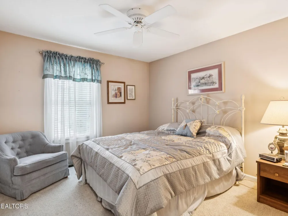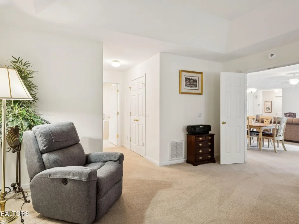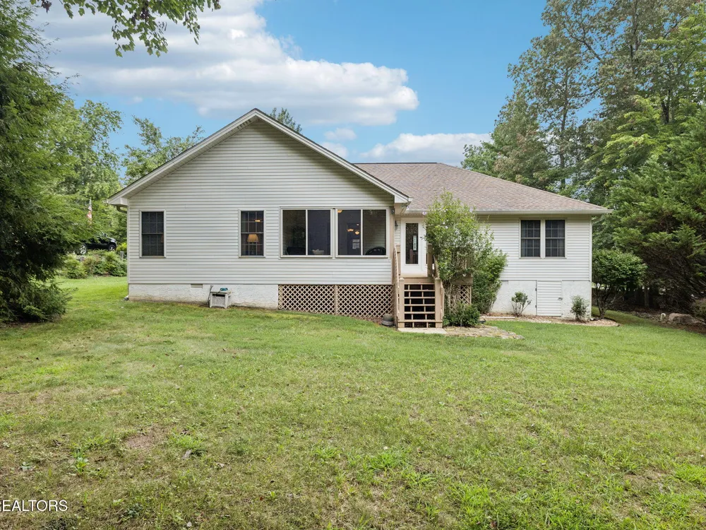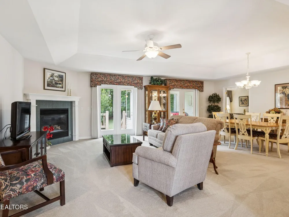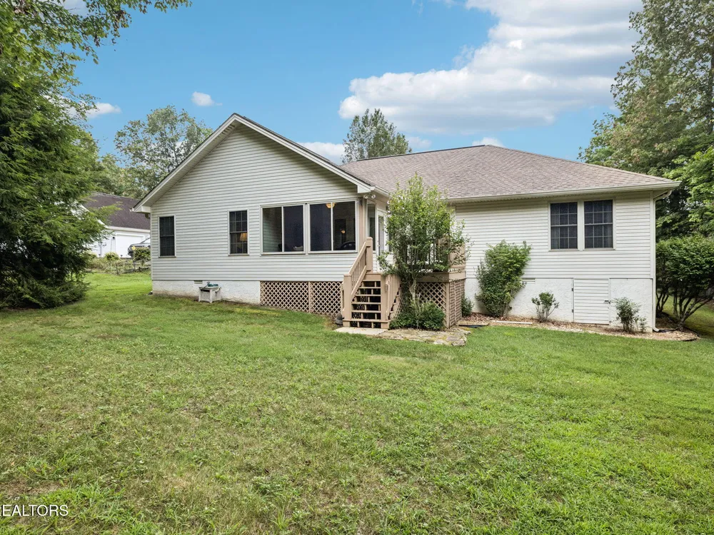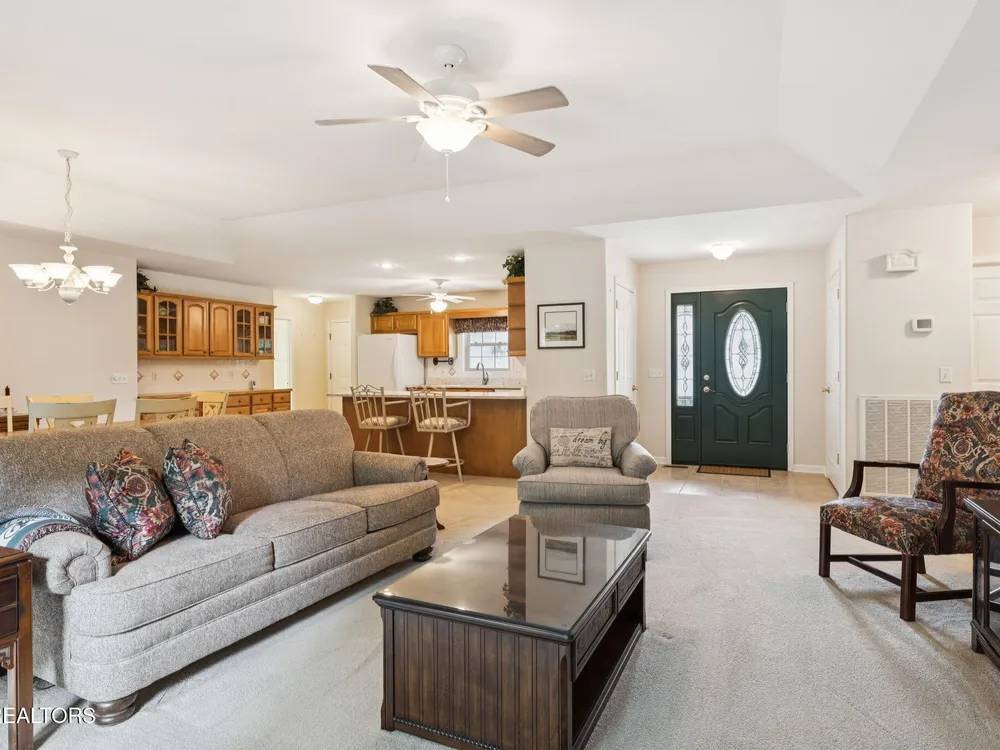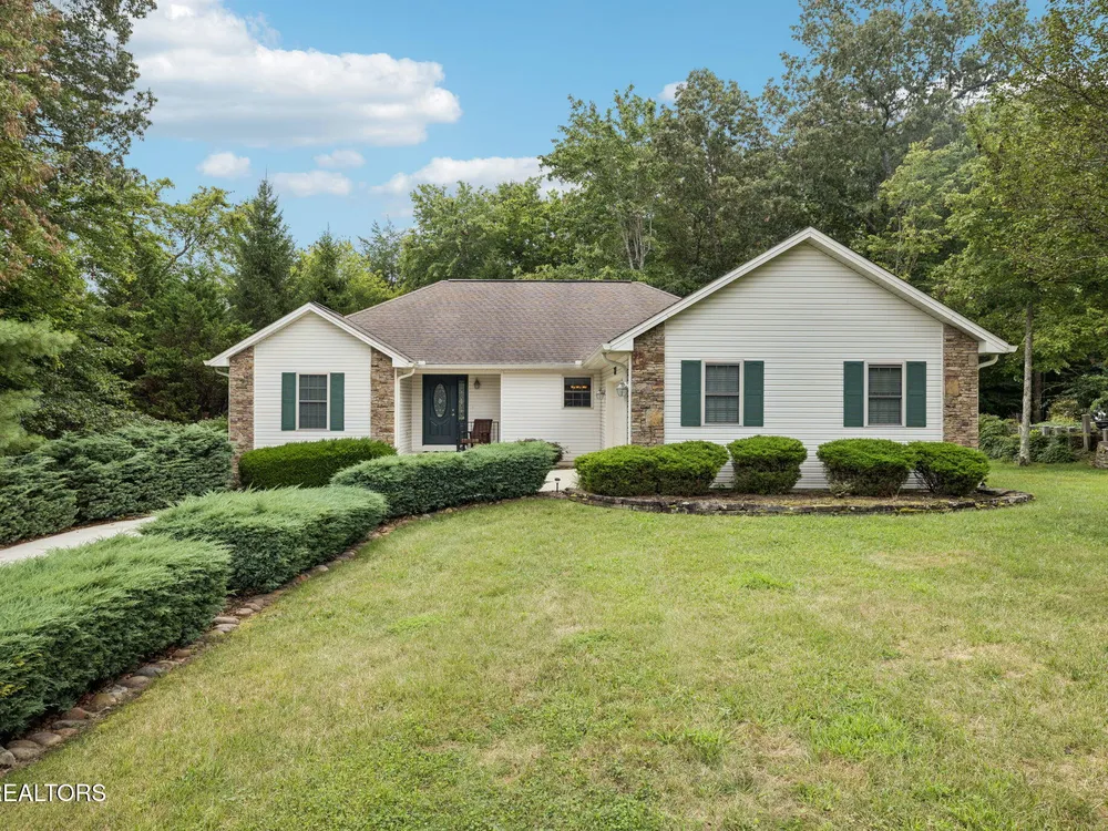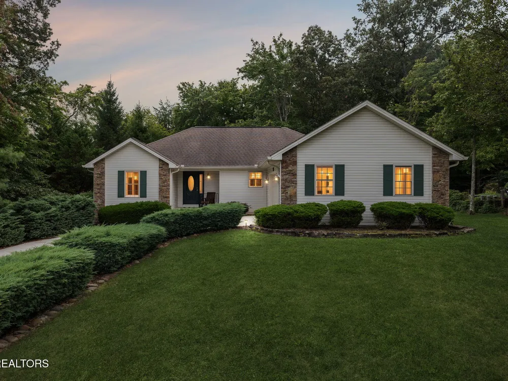 Welcome to this beautifully maintained, one-owner ranch nestled in a serene and sought-after neighborhood known for its stunning homes and breathtaking views. Just shy of 2,000 square feet, this residence offers a thoughtful split floor plan with 3 spacious bedrooms and 2 full baths, perfect for both everyday living and entertaining. Enjoy the semi open-concept layout featuring elegant trey ceilings in the great room, dining area, and primary suite. The sunroom provides a peaceful retreat, while the recently refreshed kitchen showcases quartz countertops, vinyl flooring, and an abundance of cabinet space. HVAC recently replaced in 2022. The generous primary suite is a true haven, complete with his-and-hers closets, dual vanities, and a walk-in shower. Additional highlights include a large attic space accessible via easy garage stairs—ideal for storage—and a private backyard perfect for relaxing or hosting guests. With its premium location and refined features, this home offers exceptional value in a high-end area. Don't miss your chance to own a home in one of the most desirable neighborhoods at a remarkably competitive price.