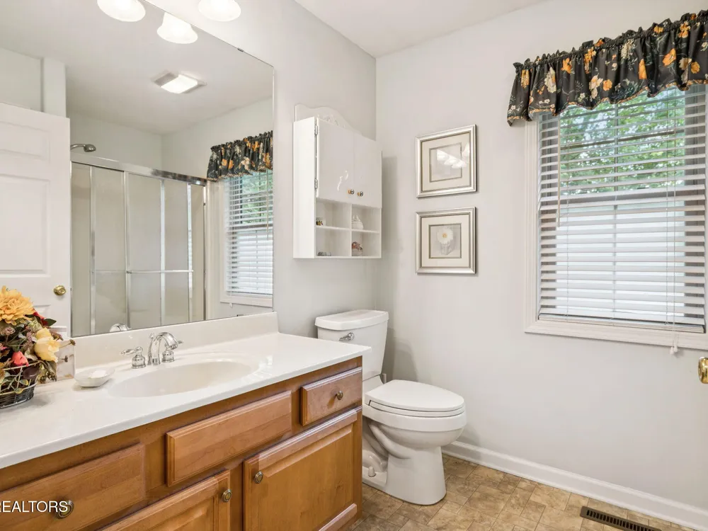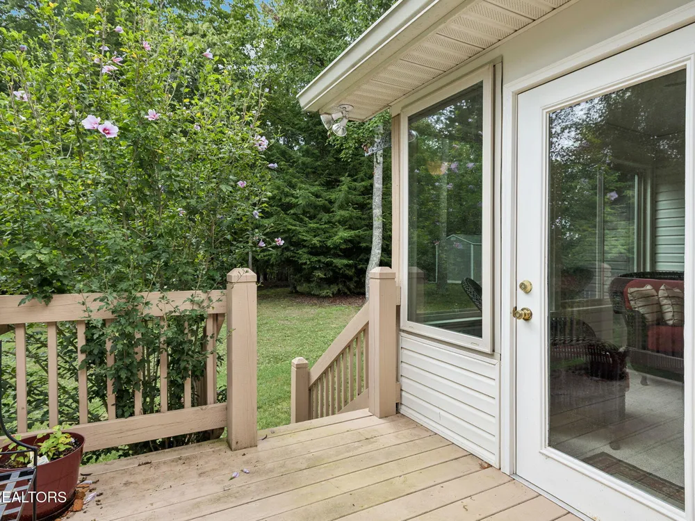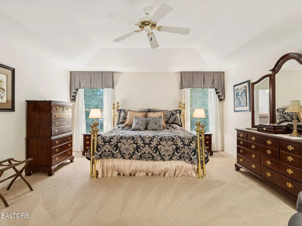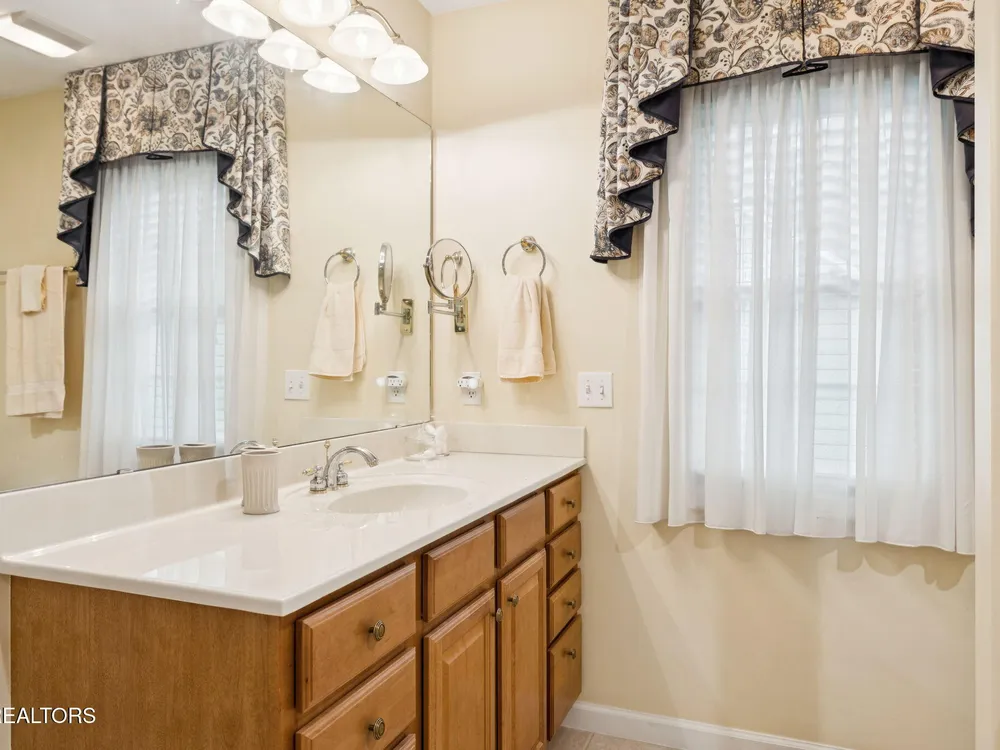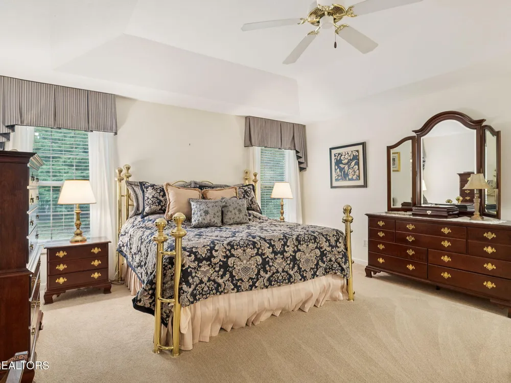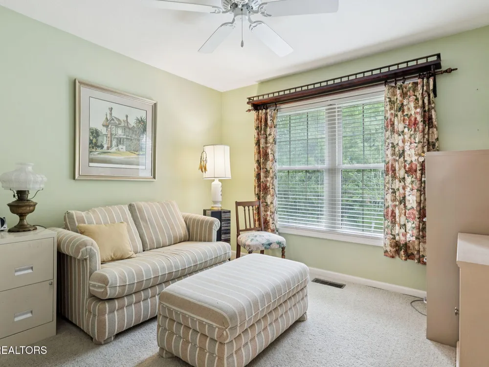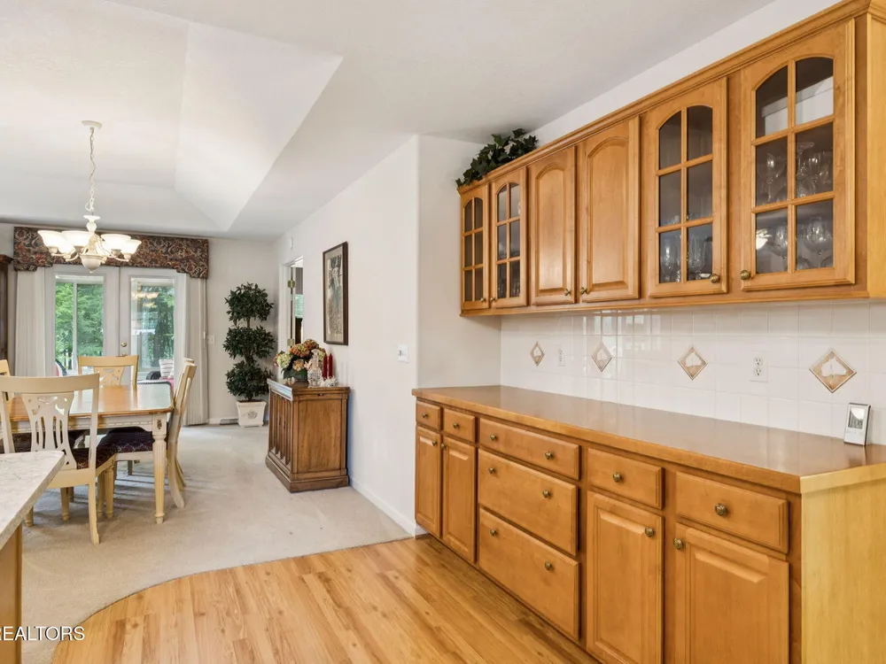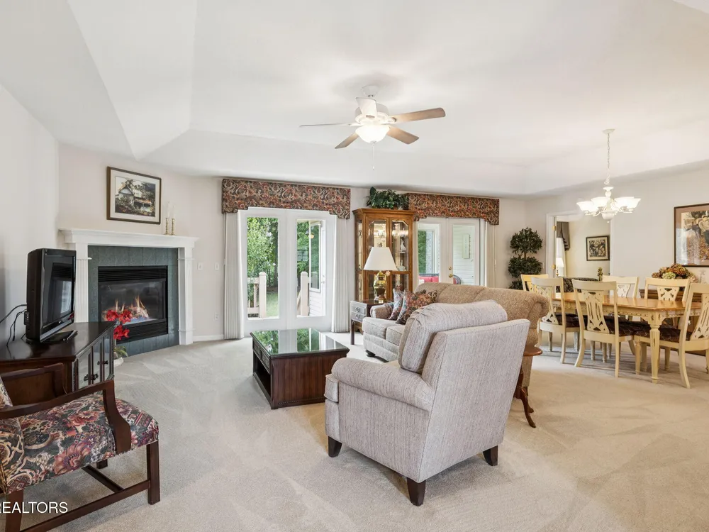 Welcome to this beautifully maintained, one-owner ranch nestled in a serene and sought-after neighborhood known for its stunning homes and breathtaking views. Just shy of 2,000 square feet, this residence offers a thoughtful split floor plan with 3 spacious bedrooms and 2 full baths, perfect for both everyday living and entertaining. Enjoy the semi open-concept layout featuring elegant trey ceilings in the great room, dining area, and primary suite. The sunroom provides a peaceful retreat, while the recently refreshed kitchen showcases quartz countertops, vinyl flooring, and an abundance of cabinet space. HVAC recently replaced in 2022. The generous primary suite is a true haven, complete with his-and-hers closets, dual vanities, and a walk-in shower. Additional highlights include a large attic space accessible via easy garage stairs—ideal for storage—and a private backyard perfect for relaxing or hosting guests. With its premium location and refined features, this home offers exceptional value in a high-end area. Don't miss your chance to own a home in one of the most desirable neighborhoods at a remarkably competitive price.