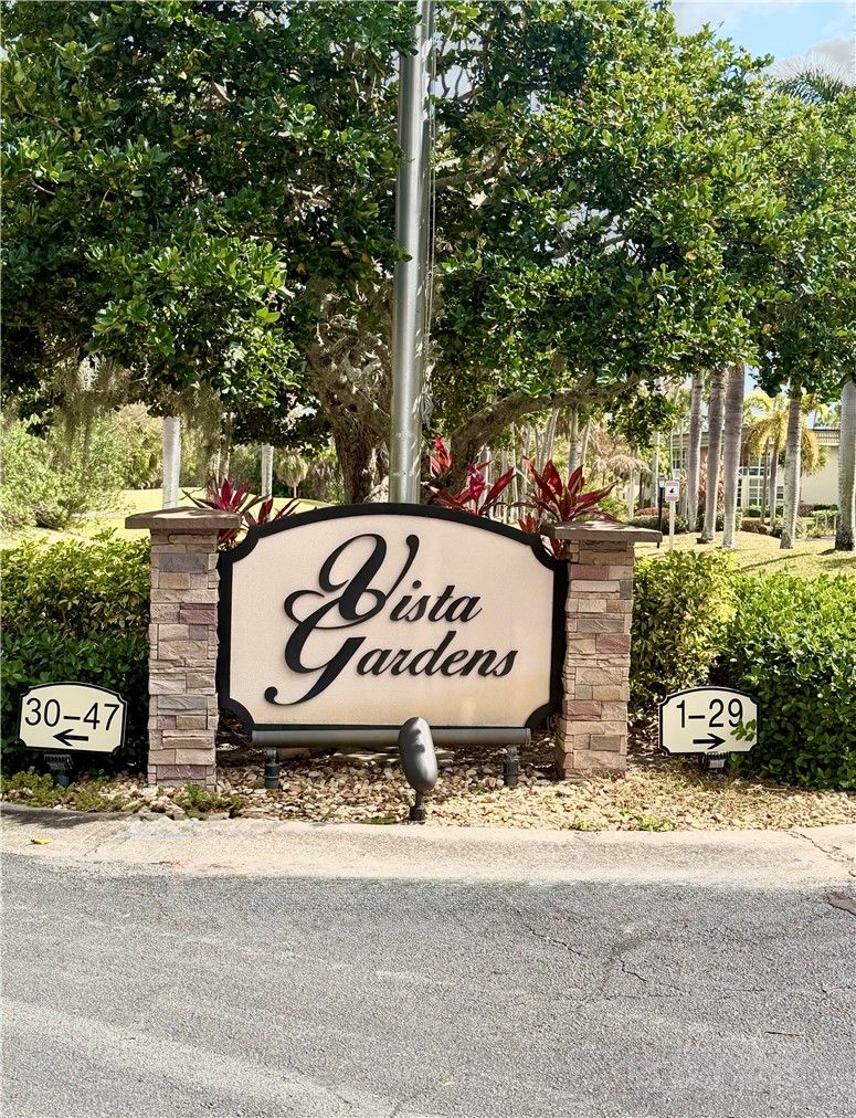 Welcome home to this FIRST-FLOOR, END UNIT! Offered furnished-turnkey, or sellers willing to unfurnish so you can bring your own personal touch! Kitchen boasts a window filling the space w/ even more natural light! Enjoy tropical breezes & unwind on the large enclosed porch featuring an addt'l storage space! Primary offers spacious walk-in closet, a walk-in shower & a slider to the porch! Condo located only steps away from outside washer/dryer! Set on public golf course running thruout Vista Gardens. Near clubhouse/pool/spa/fitness center/tennis, yet only minutes to beaches, dining, shopping!