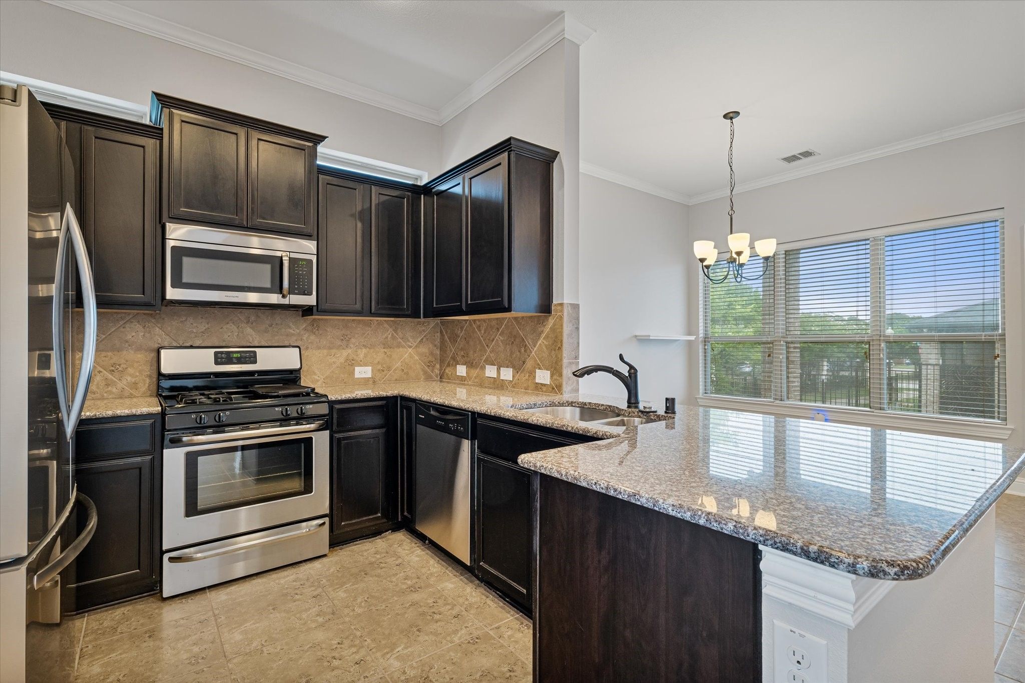 - Dishwasher, Gas Cooktop, Disposal, Gas Oven, Microwave, Vented Exhaust Fan