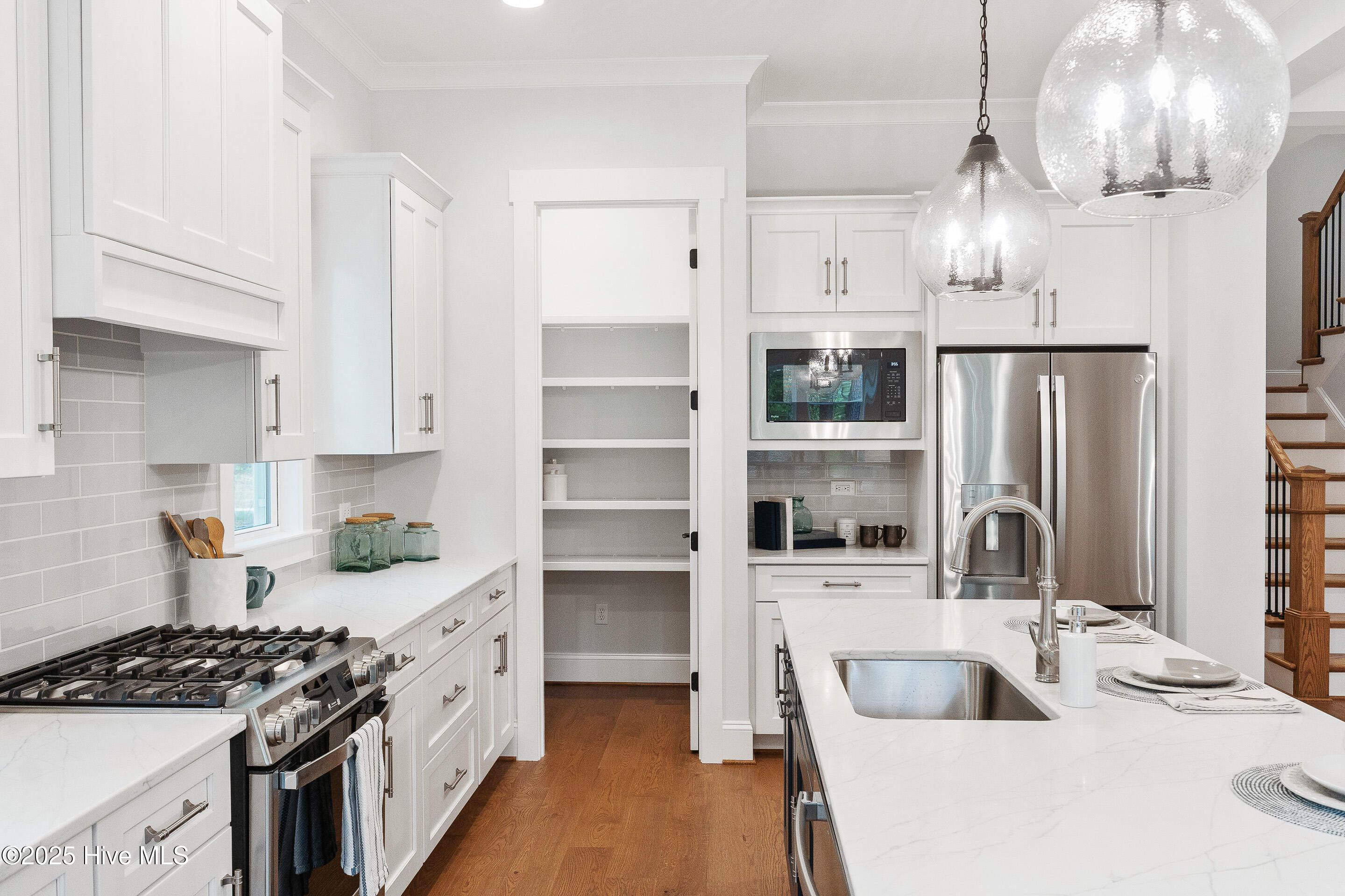 - Gas Log, Walk-In Closet(s), Pantry, Master Downstairs, Kitchen Island, High Ceilings