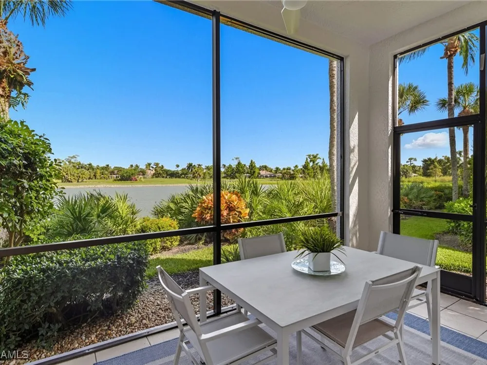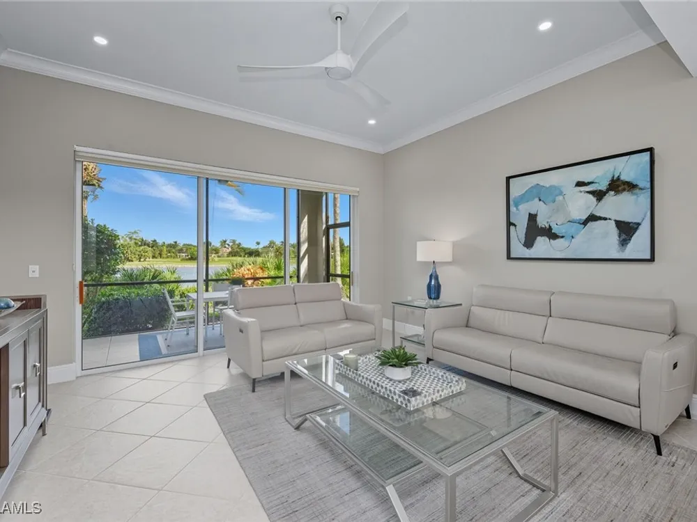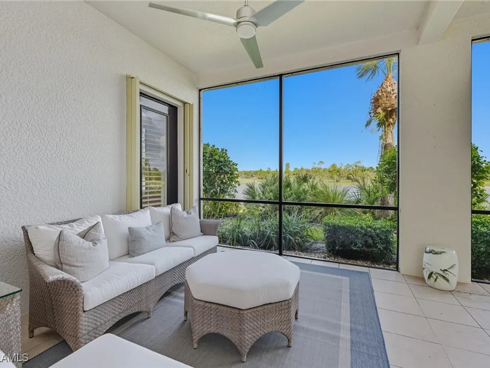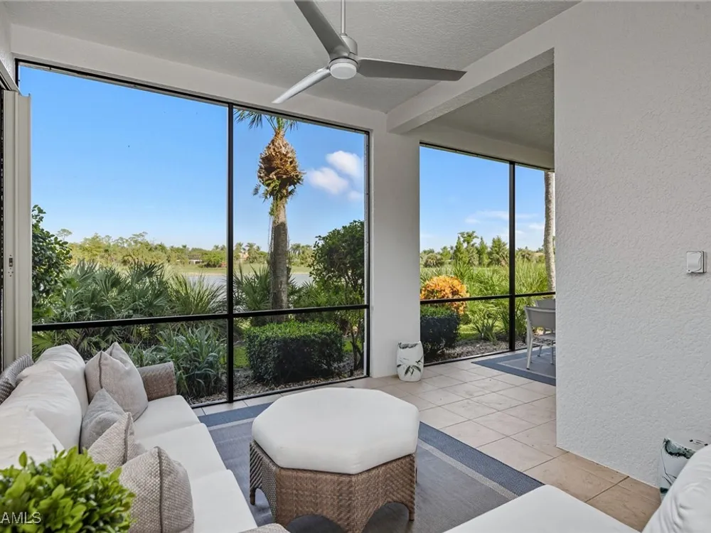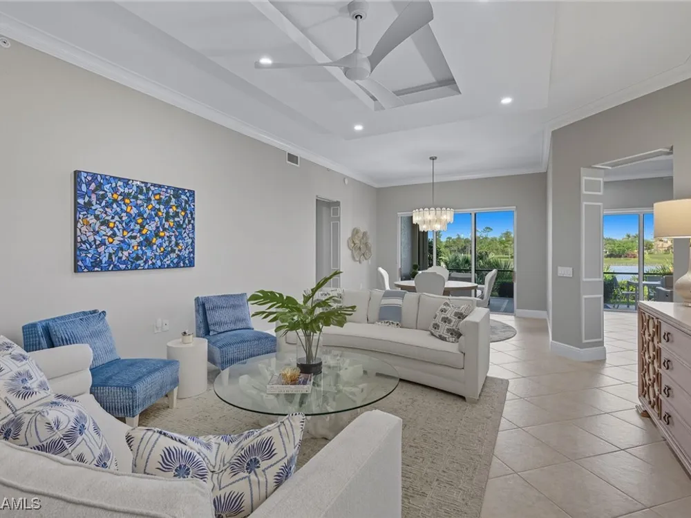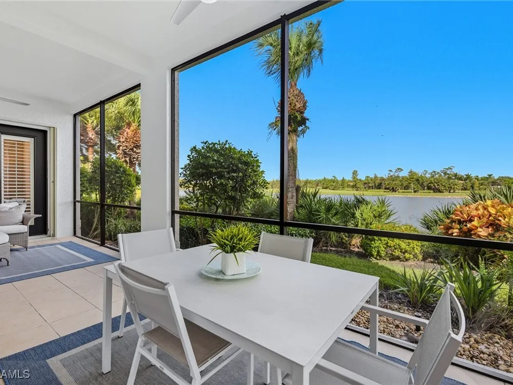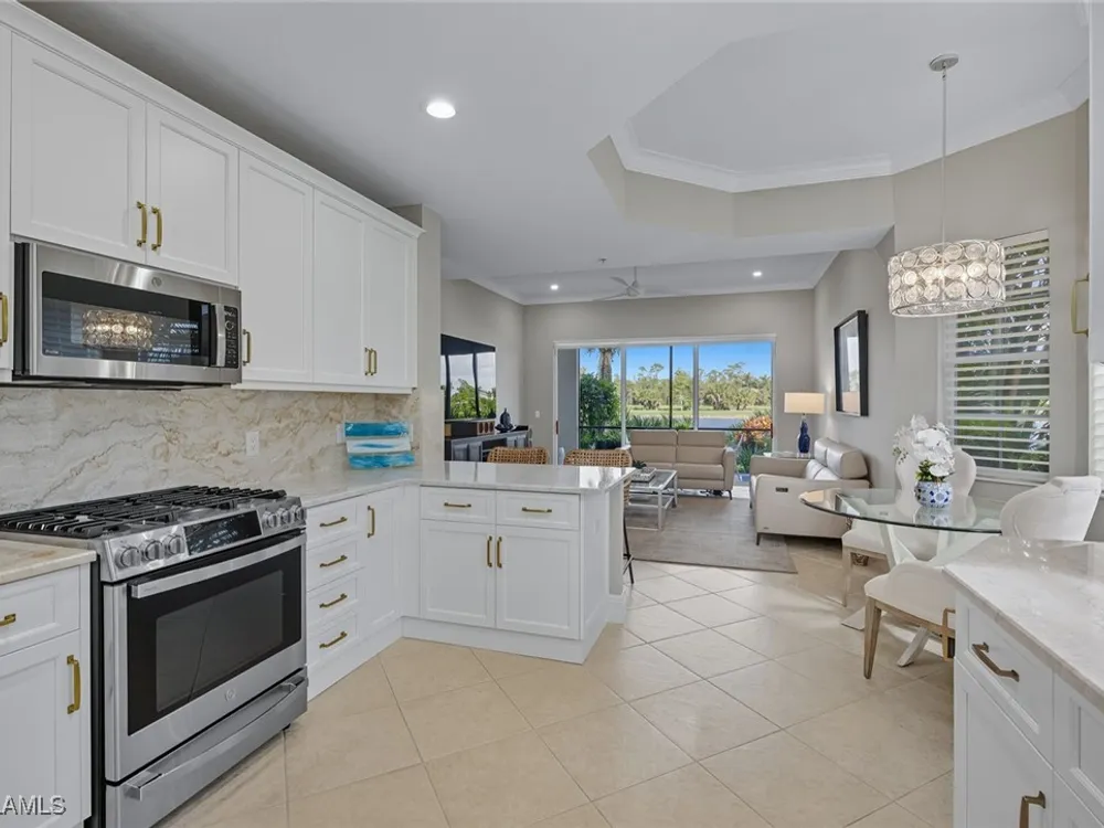 Experience refined coastal living in this beautifully renovated first-floor residence, perfectly positioned to capture tranquil lake and golf course views within the coveted Montreux enclave of Fiddler’s Creek. Designed with elegance and livability in mind, this spacious three-bedroom, three-bath home lives like a single-family residence, offering a private entrance, attached two-car garage, and an open, light-filled layout. The gourmet kitchen impresses with quartzite countertops and backsplash, white cabinetry, stainless steel appliances, and a charming breakfast nook overlooking lush tropical gardens. Each of the three bathrooms has been completely renovated, showcasing elegant finishes, modern tilework, and spa-like details throughout. The serene owner’s suite opens to the lanai and features dual walk-in closets and a beautifully updated bath with a soaking tub and frameless glass shower. Additional enhancements include a freshly painted interior, designer lighting, and a brand-new HVAC system, creating a move-in-ready retreat that blends comfort and modern sophistication. A screened lanai provides the ideal setting for morning coffee or evening gatherings, framed by sweeping water and golf vistas. Montreux is currently undergoing a community-wide landscaping enhancement, further elevating the neighborhood’s beauty and appeal. Residents enjoy access to the award-winning Fiddler’s Creek Club & Spa, offering fine and casual dining, resort-style pools, a full-service fitness center, spa, tennis, pickleball, and an active social calendar. Optional golf, beach, and marina memberships further enhance the unparalleled Florida lifestyle this residence affords.