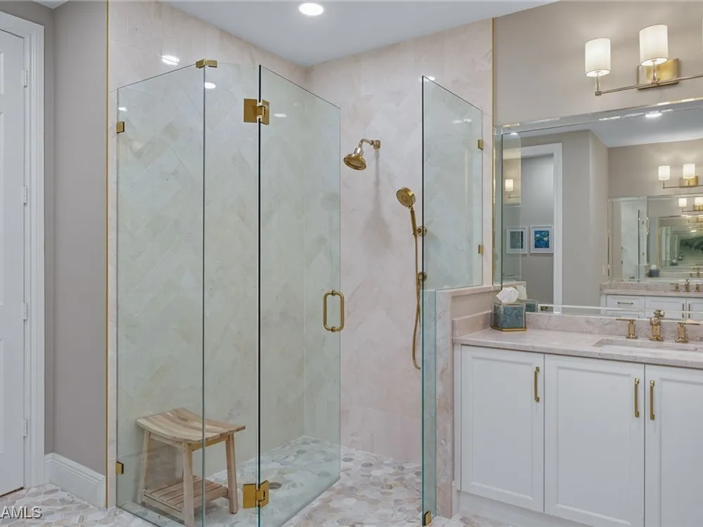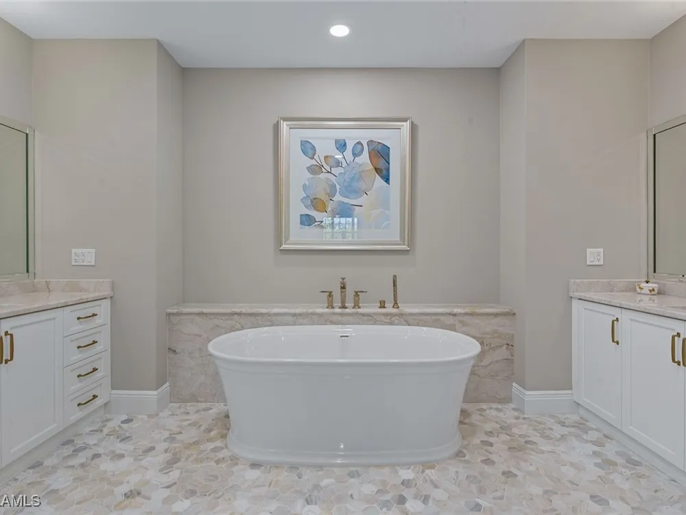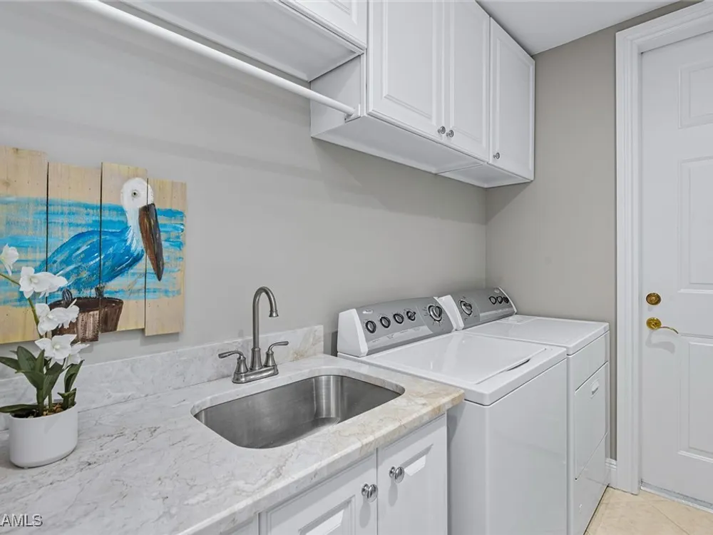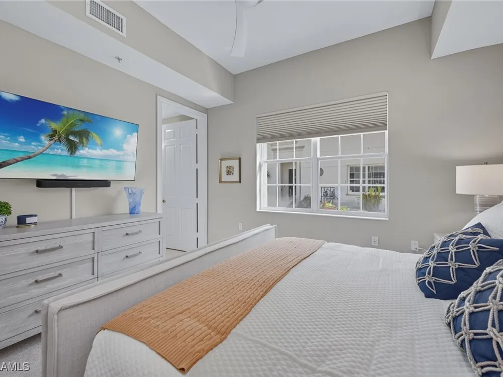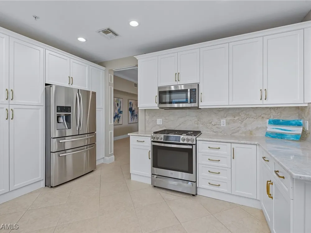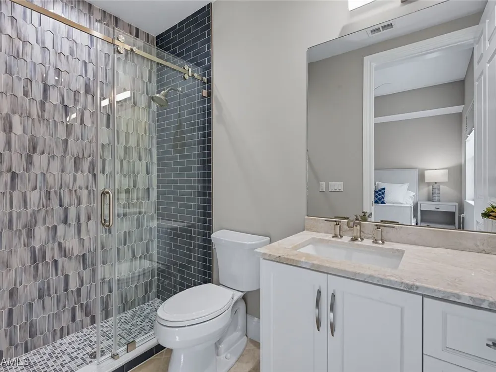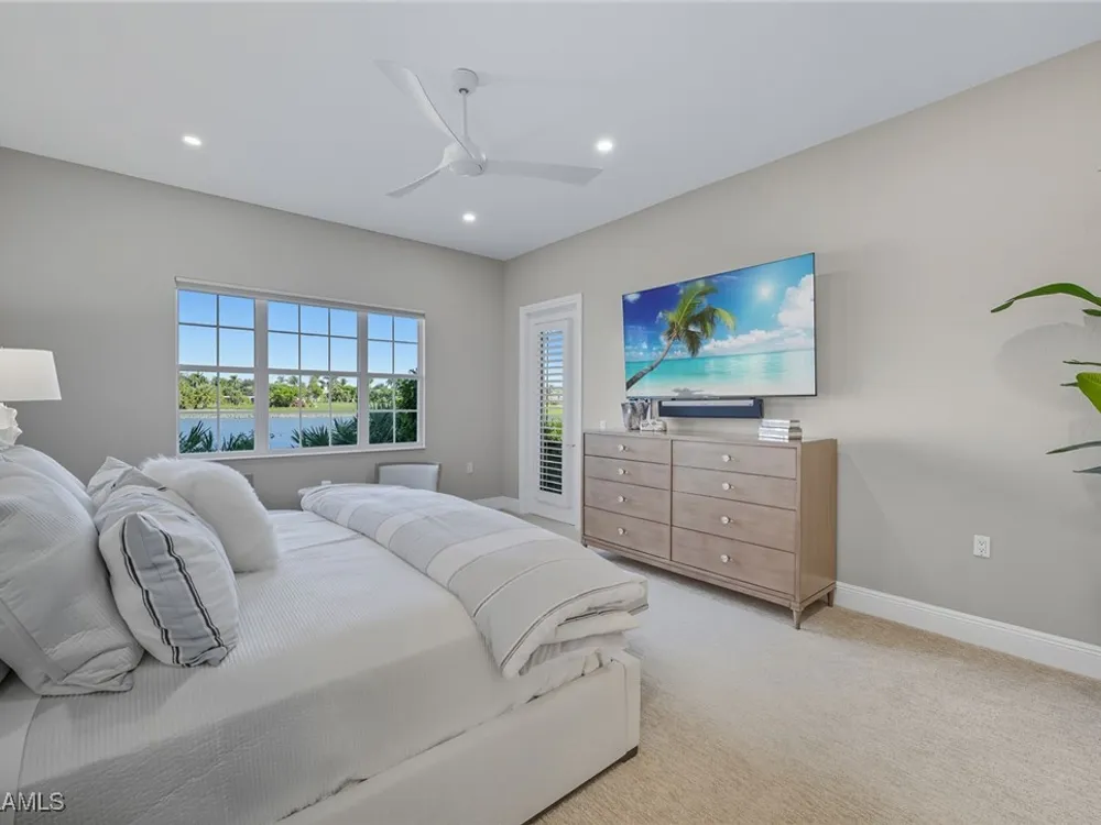 Experience refined coastal living in this beautifully renovated first-floor residence, perfectly positioned to capture tranquil lake and golf course views within the coveted Montreux enclave of Fiddler’s Creek. Designed with elegance and livability in mind, this spacious three-bedroom, three-bath home lives like a single-family residence, offering a private entrance, attached two-car garage, and an open, light-filled layout. The gourmet kitchen impresses with quartzite countertops and backsplash, white cabinetry, stainless steel appliances, and a charming breakfast nook overlooking lush tropical gardens. Each of the three bathrooms has been completely renovated, showcasing elegant finishes, modern tilework, and spa-like details throughout. The serene owner’s suite opens to the lanai and features dual walk-in closets and a beautifully updated bath with a soaking tub and frameless glass shower. Additional enhancements include a freshly painted interior, designer lighting, and a brand-new HVAC system, creating a move-in-ready retreat that blends comfort and modern sophistication. A screened lanai provides the ideal setting for morning coffee or evening gatherings, framed by sweeping water and golf vistas. Montreux is currently undergoing a community-wide landscaping enhancement, further elevating the neighborhood’s beauty and appeal. Residents enjoy access to the award-winning Fiddler’s Creek Club & Spa, offering fine and casual dining, resort-style pools, a full-service fitness center, spa, tennis, pickleball, and an active social calendar. Optional golf, beach, and marina memberships further enhance the unparalleled Florida lifestyle this residence affords.