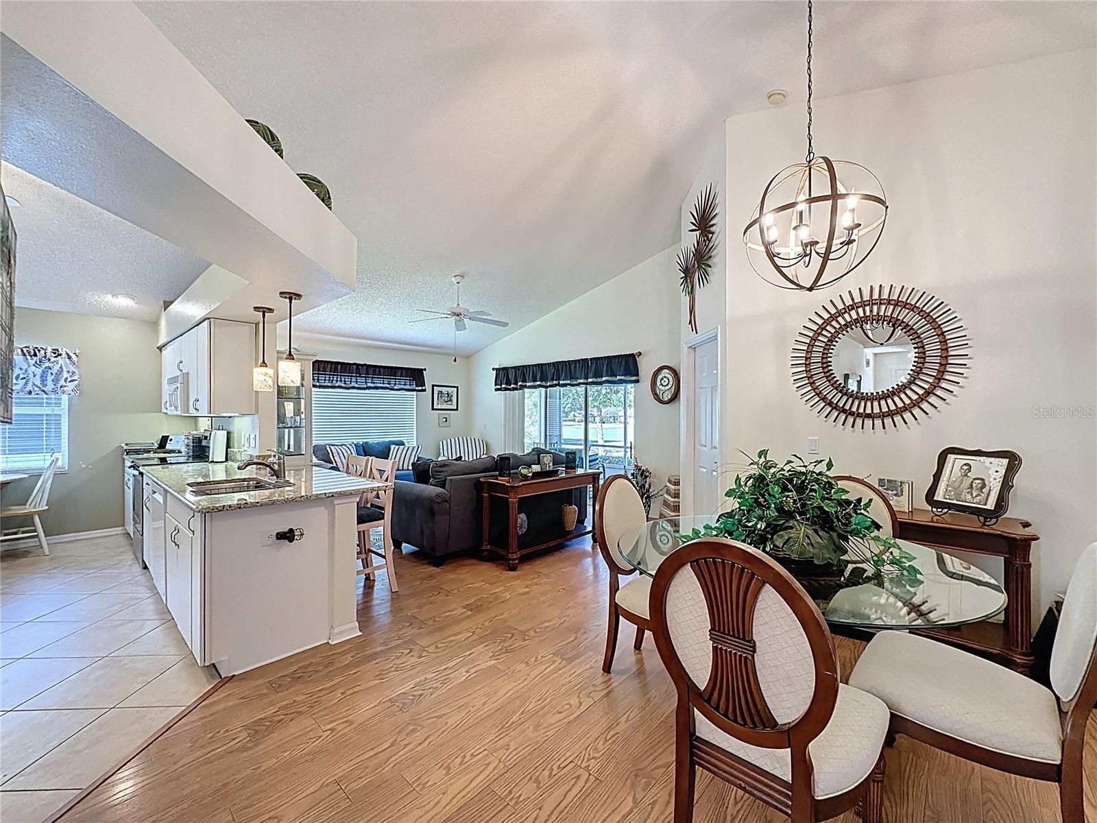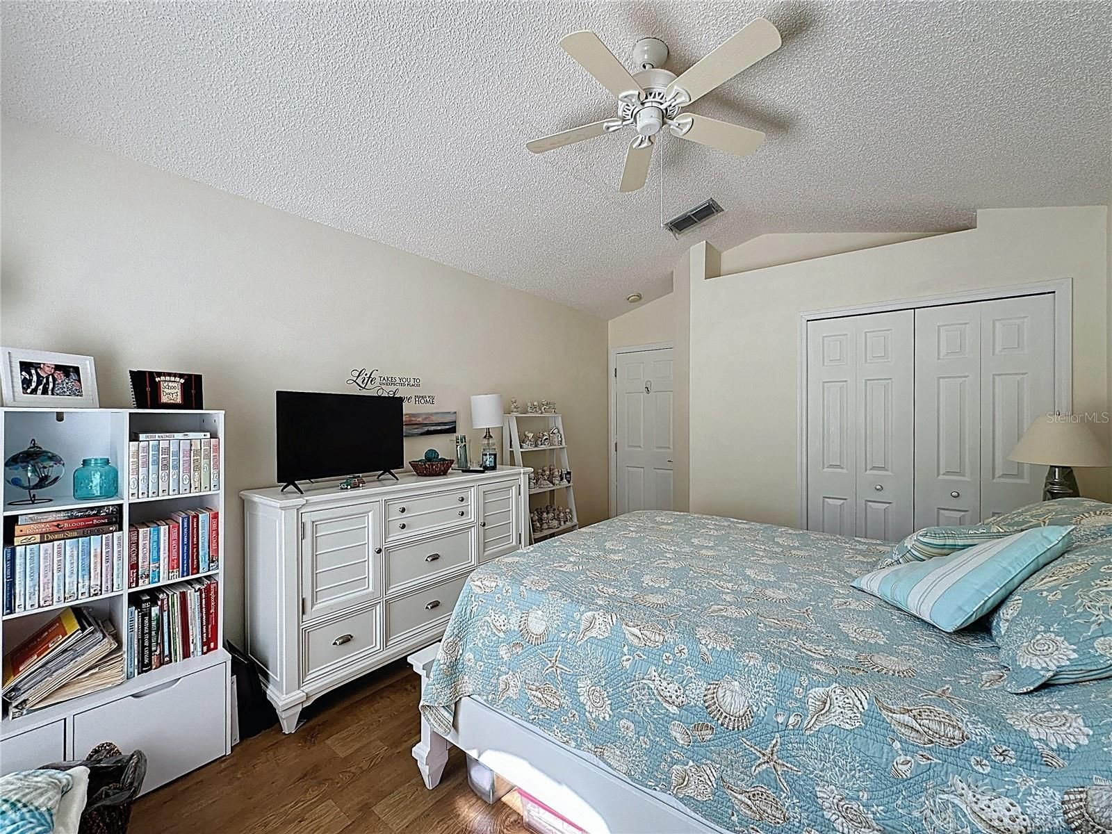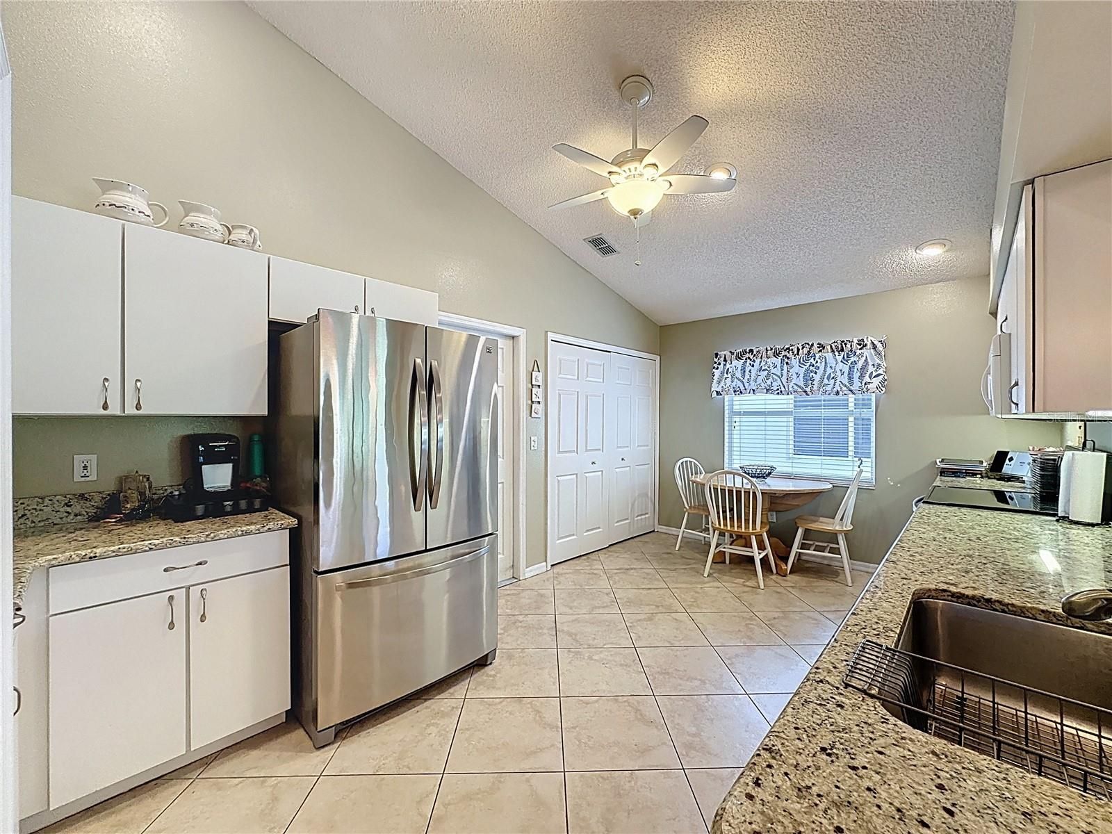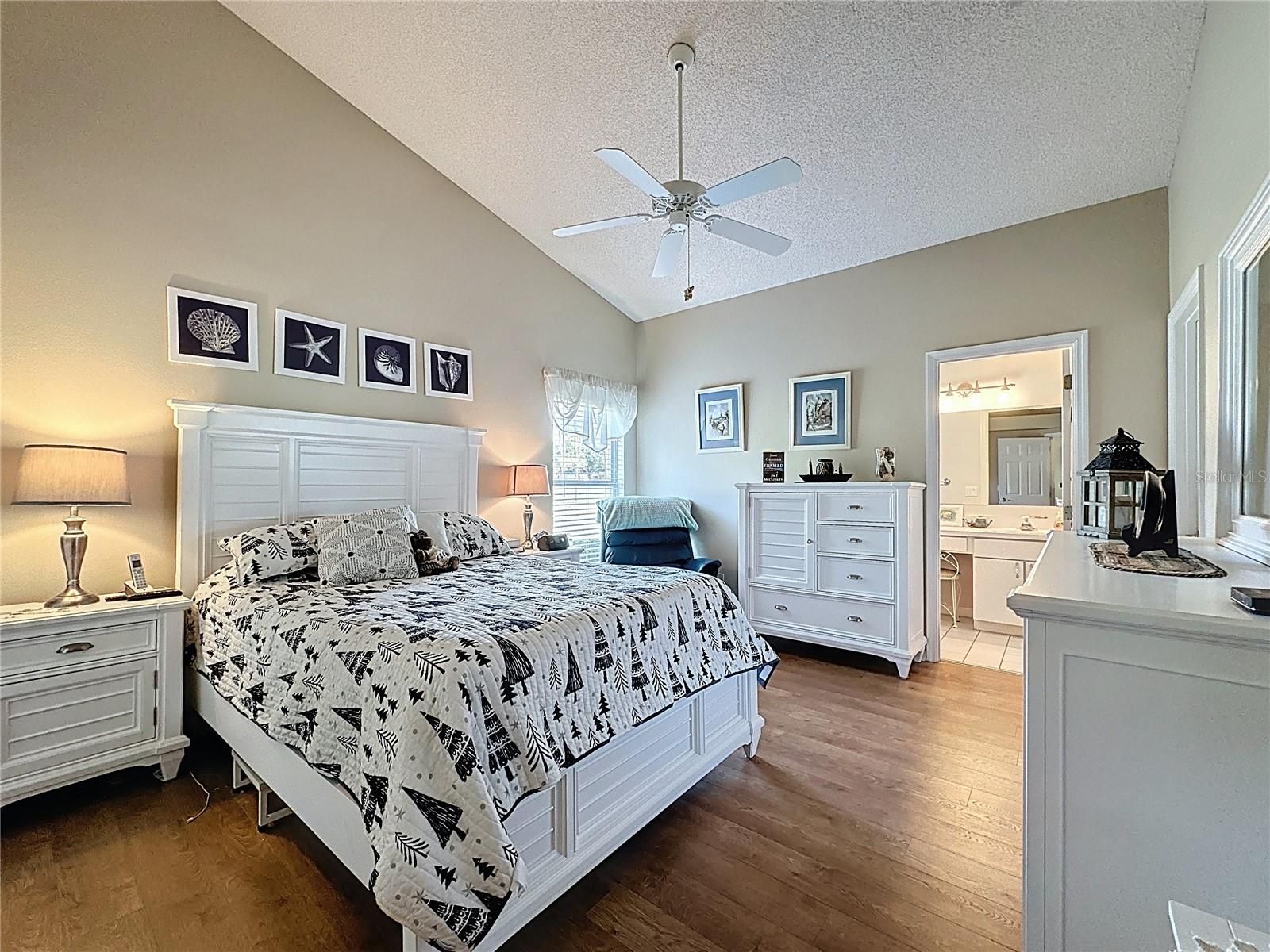 - Cathedral Ceiling(s), Ceiling Fan(s), Eat-in Kitchen, Kitchen/Family Room Combo, Open Floorplan, Main Level Primary, Stone Counters, Thermostat, Walk-In Closet(s)
