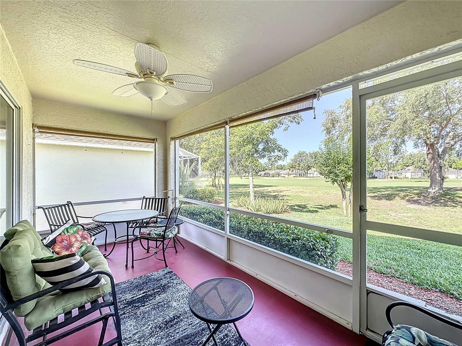 Price Improvement!!. Very popular Canterbury model located on the 15th hole of the Championship course in 55+ gated golf community of Kings Ridge. Beautiful golf course views of the golf course from the back screened in lanai. Cathedral ceilings add dimension to the home. The kitchen has granite countertops w/stainless sink and newer faucet. There are cam lights, new ceiling fan, pendant lights over the sink and under cabinet lighting. Tile flooring in all wet areas and laminate flooring throughout the rest of the home. The den has glass French doors w/ shades. HVAC changeout in June 2017 and new roof in Jan 2015.The guest bathroom has been updated. The Washer and dryer remain with the home. Front and back Oak trees were removed. Kings Ridge is a 55 Plus gated golf community located in the rolling hills of Clermont, FL. Enjoy the Royal life style in the multi-million $ clubhouse with 3 heated pools, spas, tennis & pickle ball courts, billiards, shuffle board, shows, Bingo, cards and clubs galore. The monthly maintenance fees include: lawn maintenance including trimming of shrubs, care of irrigation system & irrigation water, internet, TV & home phone thru Opticaltel, maintenance of roads and outside painting of home every 7 years. Take your golf cart to the Kings Ridge Plaza where you can do your grocery shopping, banking or dine out.