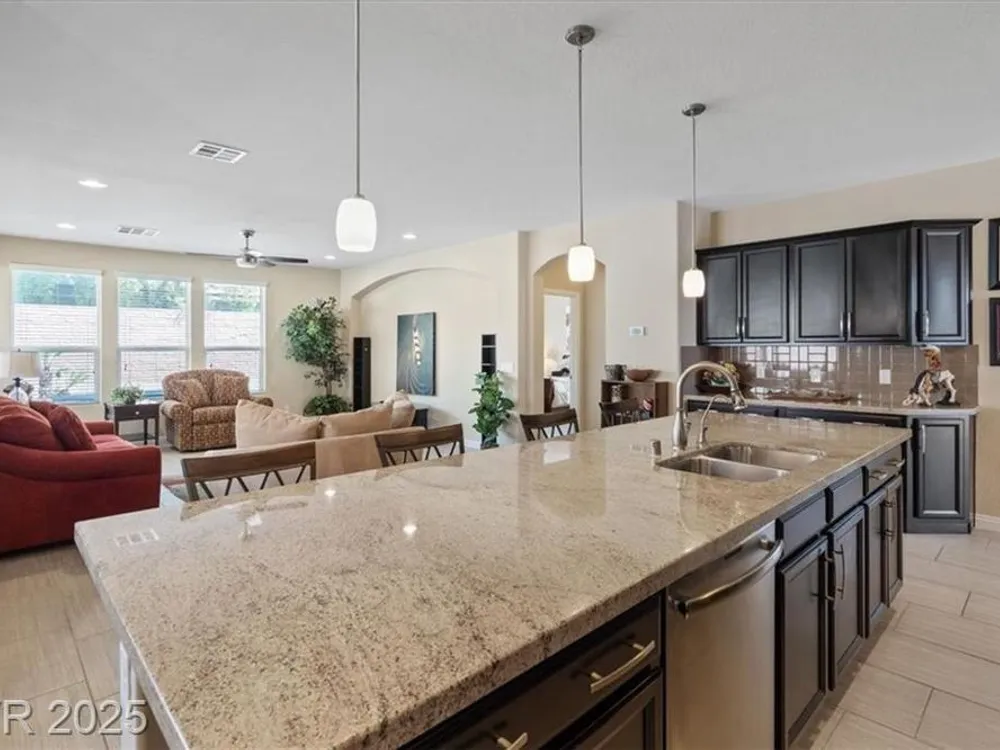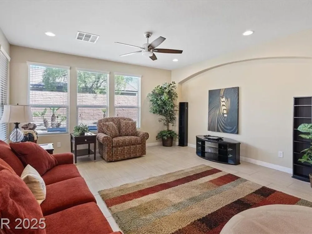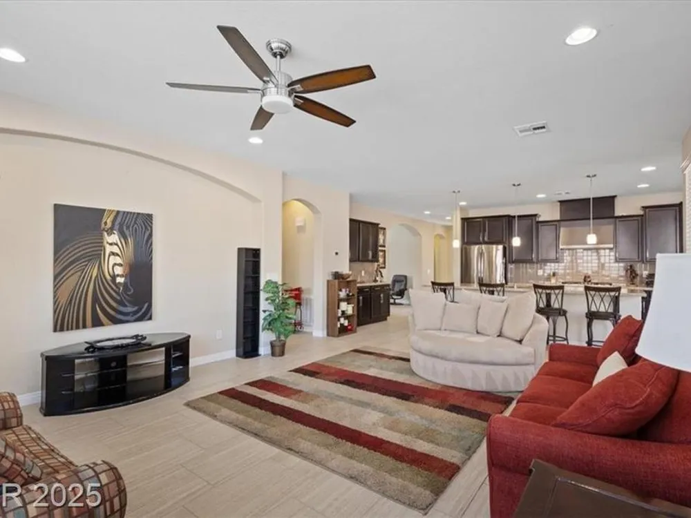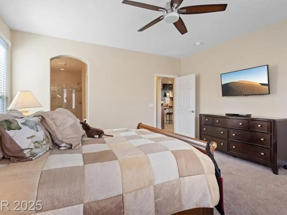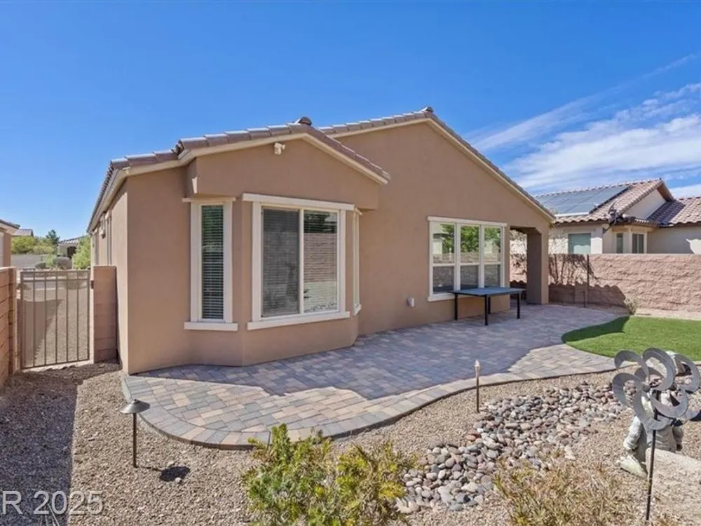 Welcome to your next home in the premier 55+ community of Ardiente! Built in 2015, this single-story home offers 2 bedrooms, 2 baths, and 1,694 sq ft of comfortable living space. The open layout features a bright kitchen with ample cabinetry, stainless steel appliances, a dining area, and a spacious great room. The primary suite includes a walk-in closet and dual-sink bath. A covered patio overlooks the low-maintenance 5,227 sq ft lot. Ardiente provides resort-style living with a clubhouse, fitness center, indoor pool, tennis courts, bocce courts, putting and chipping greens, a basketball court, and pickleball courts. This home is not only stylish but also designed for practical living. With thoughtful upgrades and an abundance of amenities, you’ll enjoy both relaxation and recreation, all just minutes from shopping, dining, golf, and the Las Vegas Strip.