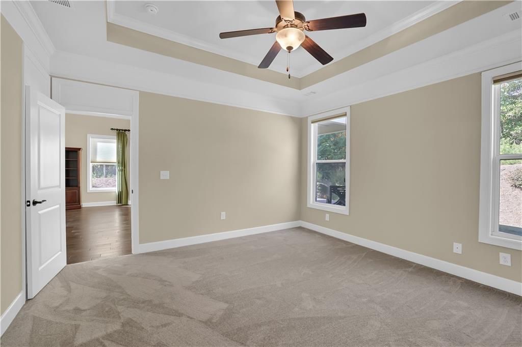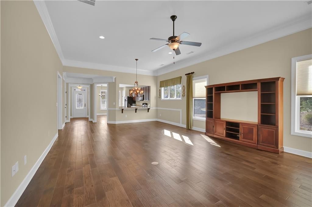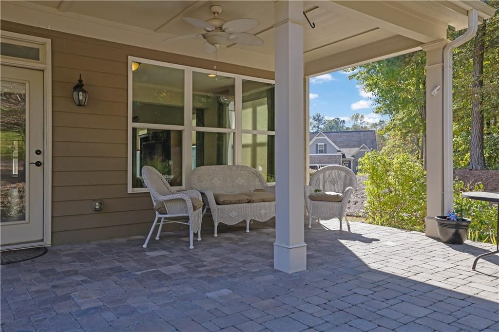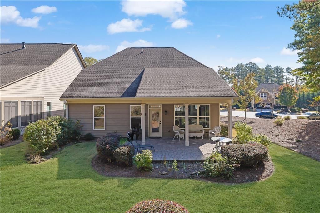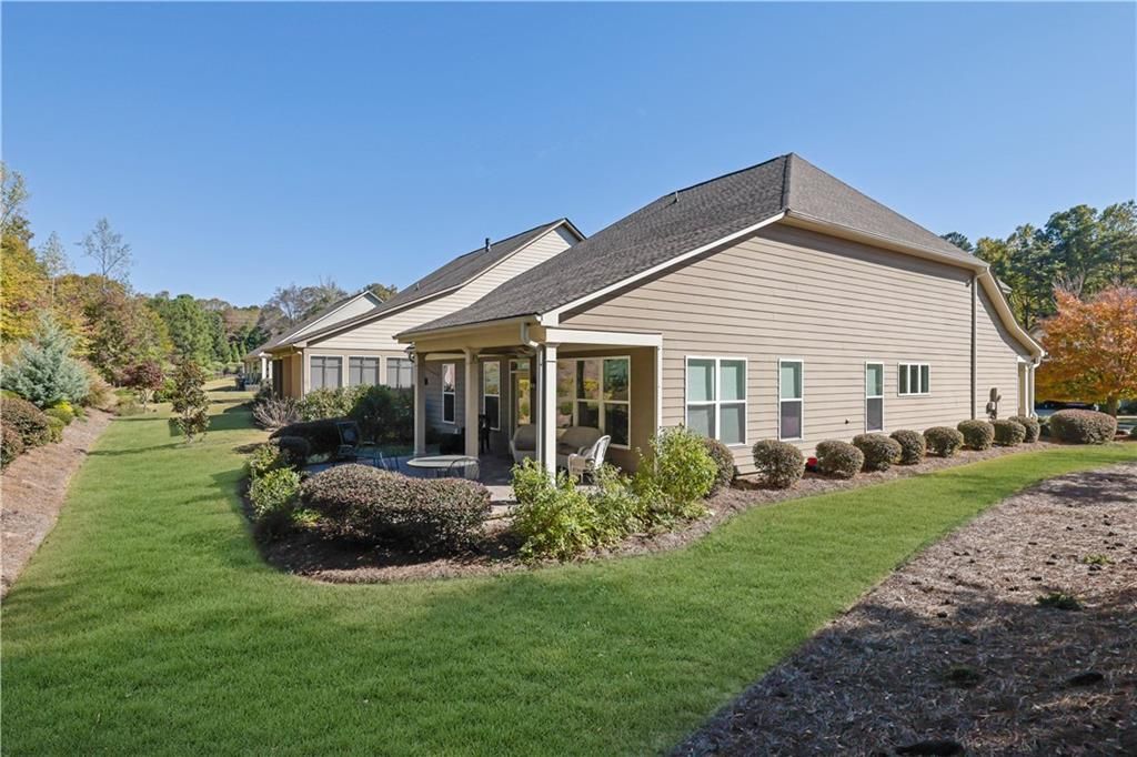 Four bedrooms. Three full baths. A private upstairs guest suite. Ten to eleven-foot ceilings. A trey ceiling in the primary. Engineered hardwood floors that carry natural light from the front door to the back wall of windows. This is the home — but the home is only where the story begins. Step onto the pavestone lanai and the reason this listing is different becomes obvious. You are standing at the end of a cul-de-sac. You back to protected woods. There is no neighbor on your left. Your view is green, layered, and uninterrupted — the kind of privacy most buyers in Cresswind at Lake Lanier spend years waiting to find. In a community that has preserved nearly half its land as untouched nature, you still managed to claim one of the most private homesites in the neighborhood. That is the lot. That is the opening chapter. Walk back inside and the floor plan tells you who this home was built for. The open-concept main level connects the kitchen, the living area, and the dining space into one bright, breathable room. Granite countertops. Warm brown cabinetry. A generous island. A breakfast bar where coffee turns into conversation and conversation turns into weekend plans. The light pours in from the left — because there is no neighbor there to block it — and the woods become the wallpaper of every meal you will cook here. The primary retreat sits under a trey ceiling, opens into two walk-in closets, and leads to a spacious walk-in shower designed for the way life actually works now. Three additional bedrooms — including the private upstairs guest suite — give you room for visitors, grandchildren, a home office, a studio, or all of the above. Carpet in the secondary bedrooms, because comfort still matters. A large laundry room with built-in cabinetry, because peaceful homes stay peaceful when everything has a place. This is the house. And the house is already enough. But at this address, the house is the smallest part of what you are buying. Cresswind at Lake Lanier is an established, active-adult 55+ community — not a development still promising what it might become, but a neighborhood that already knows exactly who it is. A full-time lifestyle director manages a calendar that will fill yours faster than you expect. A community garden gives you a plot, your tomatoes, and a standing reason to talk to your neighbors. The streets are golf-cart friendly, which means a quick trip to a friend's front porch does not require starting your car. And every weekday, between roughly 3:30 and 4:30, something quietly remarkable happens at the dog park. Neighbors gather. Dogs run. Conversations start. Friendships get made the old-fashioned way — in person, on purpose, without an app. This is the detail nobody puts in a brochure, and it is the detail that changes everything. You will not be alone here unless you choose to be. The clubhouse spans 42,000 square feet across three stories. A heated indoor pool and spa for the mornings you want to swim laps in January. A resort-style outdoor pool with a sundeck for the afternoons you want to feel like you are on vacation without driving anywhere. A fully equipped fitness center. A demonstration kitchen where you can take a cooking class. A ballroom. A billiards room. Arts and crafts. Library. Club room. Upper-deck terraces overlooking the lake and the forest, built for the evenings you would rather sip wine than cook dinner. Outside, the amenity list keeps going. A tennis campus. Pickleball. Bocce. Horseshoe pits, indoor and outdoor pools. Walking trails through preserved woodland. An event lawn. Fire pits overlooking the marina, where a day ends the way most people wish theirs could. And Then There Is Lake Lanier... sits minutes from your driveway. Mornings on the lanai with the cardinals. Afternoons in the garden. A 3:30 walk to the dog park. A cooking class in the demonstration kitchen. A sunset on the water. A fire pit at dusk with neighbors you actually know. This is not a schedule. This is a life.