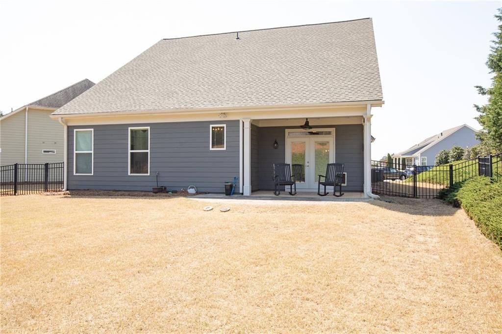 Enjoy the perfect balance of comfort and connection in this two bedroom, two bath ELMWOOD model home set on a quiet, cul-de-sac street in Cresswind, an active 55+ community on Lake Lanier. Designed for everyday living, the home features an updated kitchen with a Quartz counters, SS Vent Hood, Convection Oven and Convection Microwave, Refrigerator, 5 Burner Gas Cooktop, pull out trash and drawers for easy access. Open concept Dining. Office, Great Room opens to the Covered Porch, extended Patio and over 1/3 acre fenced backyard. The Owner's suite offers a peaceful retreat with a sitting area, and private bath featuring dual vanities, a make-up sitting area, oversize shower, linen closet and walk in closet with custom system. Guest Bedroom with custom closet system, and Full Bath. The garage is Extended to accommodate a golf cart or your water toys. Gladiator Storage System in Garage. NEW ROOF, NEW FLOORING, NEW INTERIOR PAINT. This house is move in ready. Just outside your door, the community offers lakefront activities, scenic walking trails, and a calendar full of social events to keep you active and engaged. Whether you are sharing dinner with neighbors, taking in the views over morning coffee, or simply enjoying the ease of low maintenance living, this home brings together the best of lakeside life and community spirit. The amenities include a 42,000 square foot clubhouse spanning 3 levels, Indoor heated and outdoor pools, over 120 clubs, community theater, chorus, pickleball, tennis, walking trails, fitness center, community garden, dog park and marina on the shores of Lake Lanier. We put the ACTIVE in Active Adult Communities. I not only sell here, I LIVE here. Please ask if you would like a personal Clubhouse tour. Weissman is the preferred closing attorney. Taxes reflect Senior (70 yrs) discount.