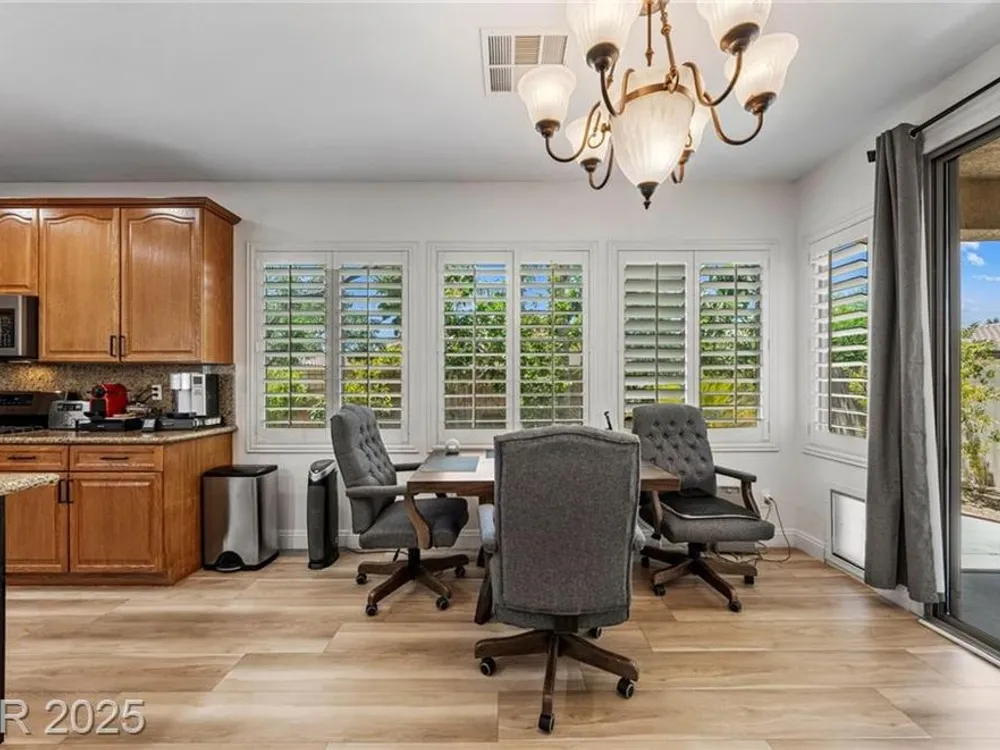 Welcome to serene and sophisticated living at Ardiente, where this charming home awaits. Nestled in a tranquil 55+ community, this residence offers a perfect blend of comfort and convenience for those seeking an active and vibrant lifestyle. Step inside to discover an inviting layout designed with ease of living in mind. The spacious living area is bathed in natural light, creating a warm and welcoming atmosphere ideal for both relaxation and entertaining. The primary suite provides a peaceful retreat with its generous size and two walk-in closets. The second bedroom offers flexibility, perfect for guests, den/office can be used a 3rd bedroom if desired. Outside, the charm continues with a private patio, perfect for enjoying morning coffee or evening sunsets. Residents of Ardiente enjoy access to a range of amenities, including clubhouse, fitness center, pool, walking trails, providing ample opportunities for socializing and staying active.