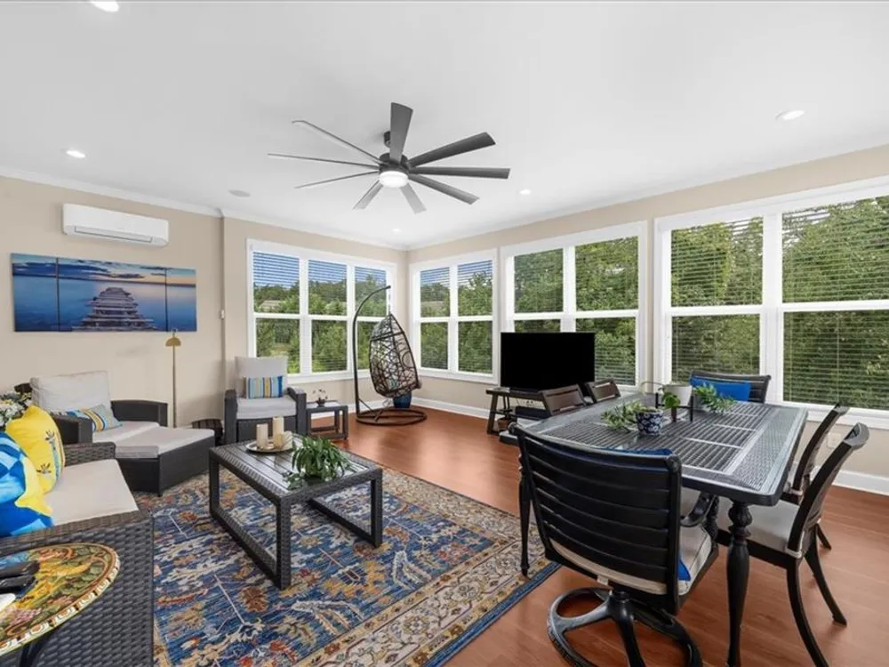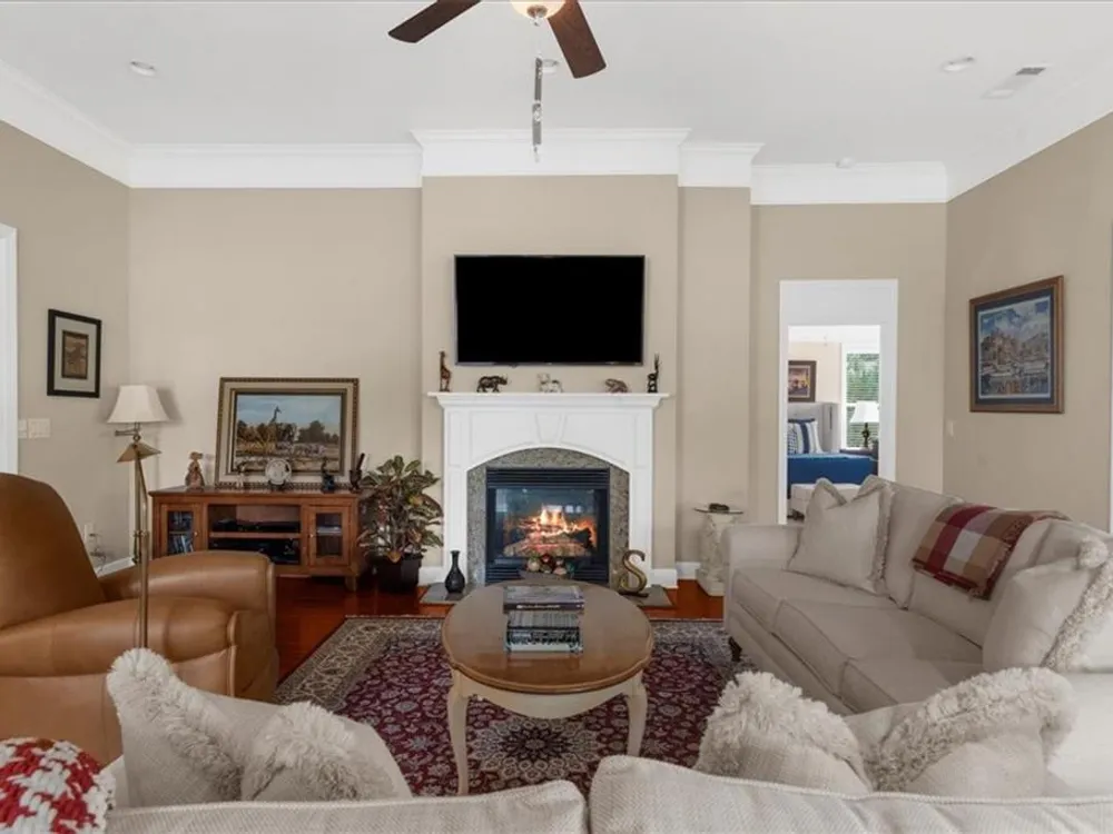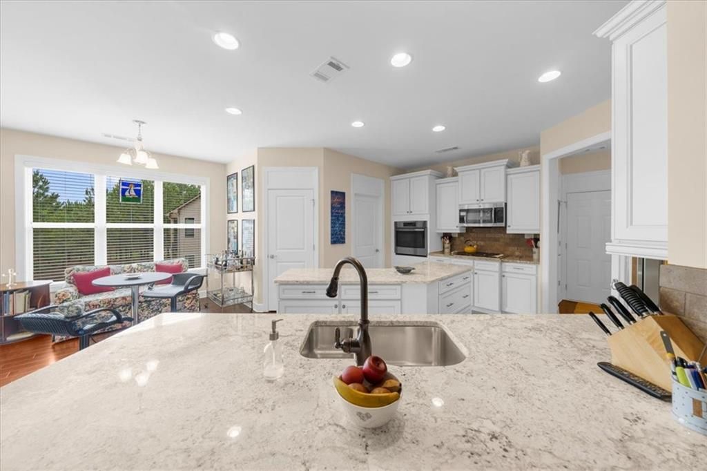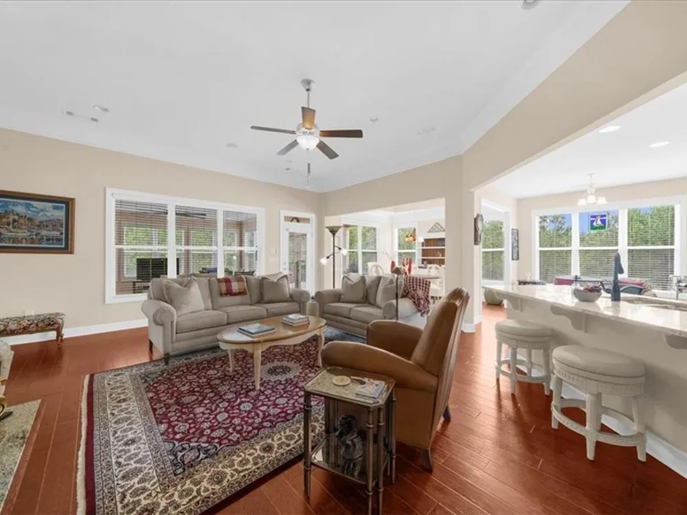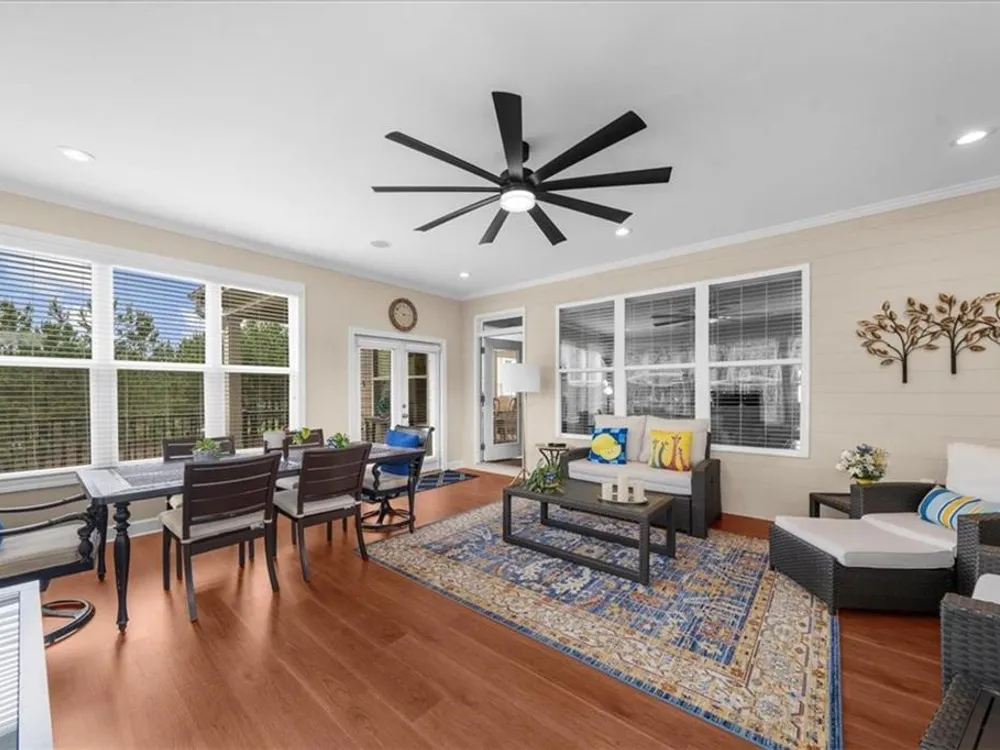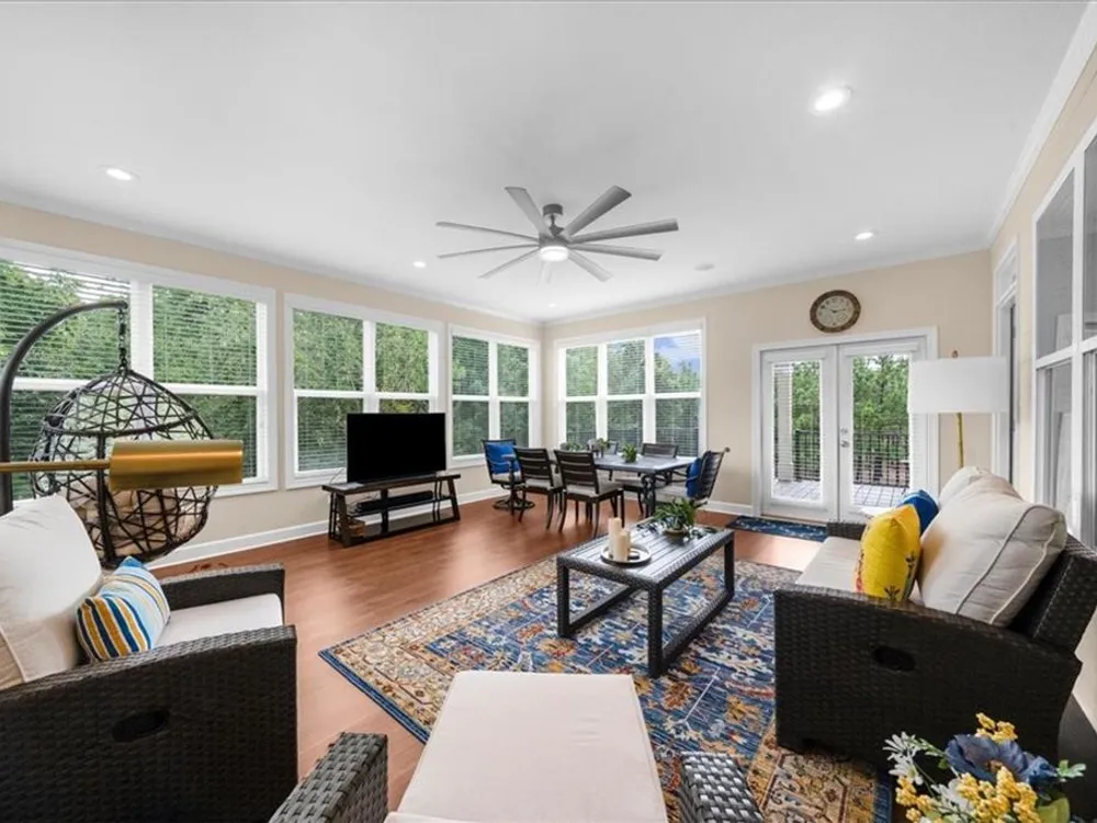 Welcome to the award-winning 55+ community of Cresswind at Lake Lanier. Located on a private cul-de-sac premium lot, the “Maple” model shows pride of ownership throughout. Featuring 3 bedrooms, 2.5 baths, 2,674 sq ft of main floor living space, and an additional 2,314 sq ft of unfinished terrace level space. Notable interior details include hardwood floors, upgraded crown molding, and upgraded baseboards. The crown jewel of the home is the enclosed 360 sq ft sunroom which is surrounded by windows overlooking the trees, equipped with a built-in speaker system, and is heated and cooled with a split system for year-round enjoyment. Adjacent to the sunroom is a Trex deck suitable for grilling and outdoor activities. The great room offers open concept living with a gas fireplace, built-in speaker system, and spacious dining area with custom window placement to accommodate placement for a buffet or cabinet. The kitchen includes white cabinets, beadboard accents, granite countertops, Advantium halogen microwave, built-in oven, breakfast area, prep island, and walk-in pantry. The primary bedroom suite offers views of the trees, built-in speaker system, walk-in closet, jet tub, frameless shower enclosure, and vanity with dual sinks. The second and third bedrooms share a Jack and Jill bathroom with a tub/shower combination; the third bedroom has custom window placement, built-in speaker system and was used as an office. The unfinished terrace level is stubbed for a bath and may be finished for additional living space or used for storage. There is access to a back patio and backyard which is maintained by the HOA. Additional upgrades include concrete resurfacing of the front walkway and porch, extended driveway, security system with exterior cameras, Rachio "smart" irrigation system, new HVAC (June 2023), and new dehumidifier (July 2025). The award-winning Cresswind at Lake Lanier boasts a 43,000 sq ft, 3-story clubhouse with indoor and outdoor pools, kayaking, fishing, courtesy boat docks, over 120 clubs, arts & crafts room, pickleball, tennis, indoor & outdoor pools, gym, dance & fitness classes, poker, games, billiards, plays, chorus, concerts, dances and more! An on-site activities director, property manager and maintenance crew keep everything running smoothly. The residents are welcoming, friendly and anxious to include new neighbors in all the activities! I have lived at Cresswind at Lake Lanier for 12 years and I know you will enjoy the Cresswind lifestyle!