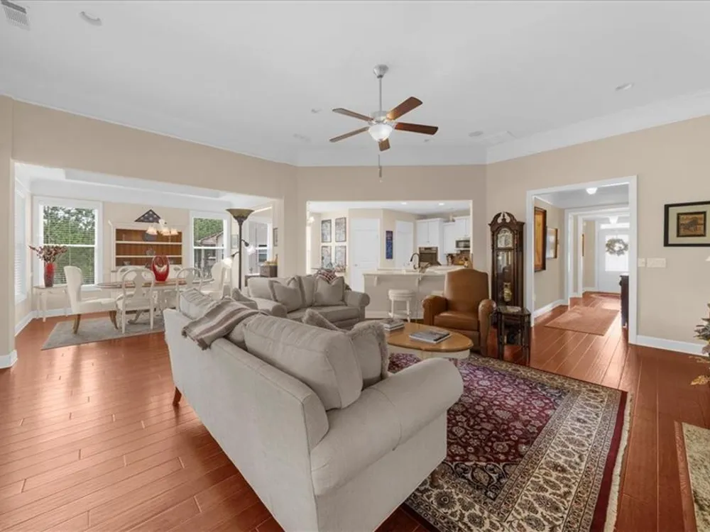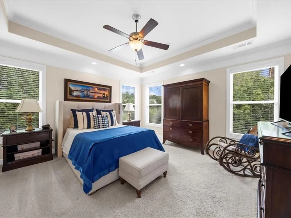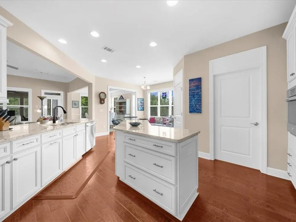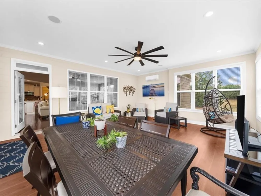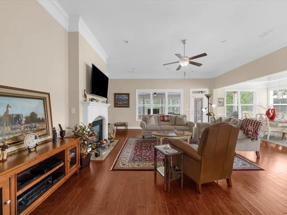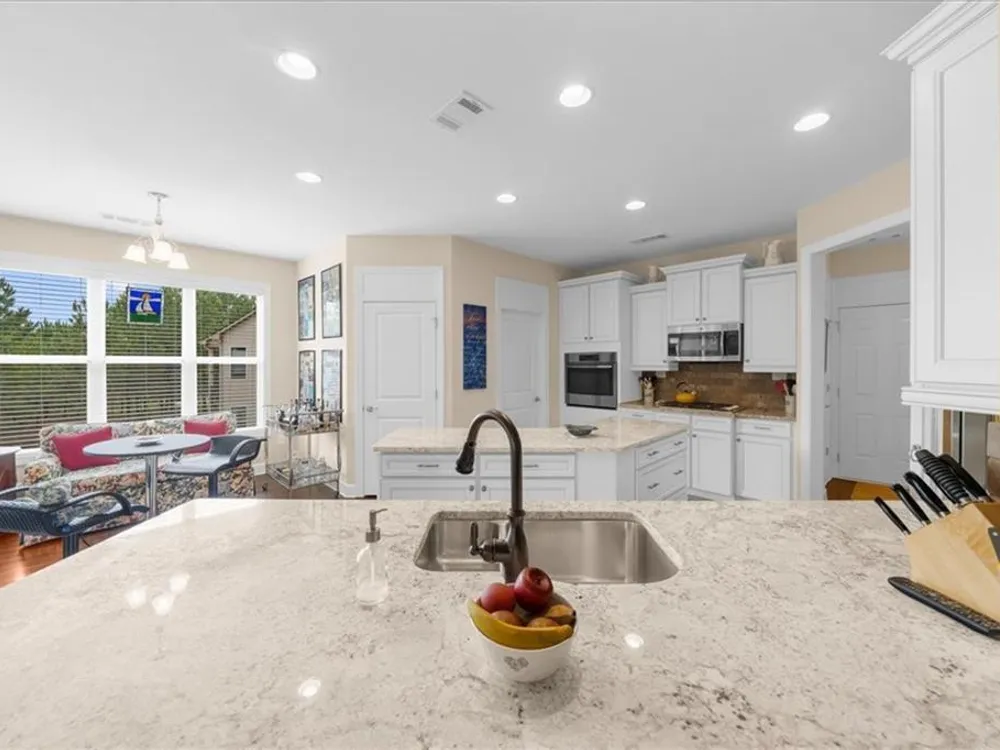 Welcome to the award-winning 55+ community of Cresswind at Lake Lanier. Located on a private cul-de-sac premium lot, the “Maple” model shows pride of ownership throughout. Featuring 3 bedrooms, 2.5 baths, 2,674 sq ft of main floor living space, and an additional 2,314 sq ft of unfinished terrace level space. Notable interior details include hardwood floors, upgraded crown molding, and upgraded baseboards. The crown jewel of the home is the enclosed 360 sq ft sunroom which is surrounded by windows overlooking the trees, equipped with a built-in speaker system, and is heated and cooled with a split system for year-round enjoyment. Adjacent to the sunroom is a Trex deck suitable for grilling and outdoor activities. The great room offers open concept living with a gas fireplace, built-in speaker system, and spacious dining area with custom window placement to accommodate placement for a buffet or cabinet. The kitchen includes white cabinets, beadboard accents, granite countertops, Advantium halogen microwave, built-in oven, breakfast area, prep island, and walk-in pantry. The primary bedroom suite offers views of the trees, built-in speaker system, walk-in closet, jet tub, frameless shower enclosure, and vanity with dual sinks. The second and third bedrooms share a Jack and Jill bathroom with a tub/shower combination; the third bedroom has custom window placement, built-in speaker system and was used as an office. The unfinished terrace level is stubbed for a bath and may be finished for additional living space or used for storage. There is access to a back patio and backyard which is maintained by the HOA. Additional upgrades include concrete resurfacing of the front walkway and porch, extended driveway, security system with exterior cameras, Rachio "smart" irrigation system, new HVAC (June 2023), and new dehumidifier (July 2025). The award-winning Cresswind at Lake Lanier boasts a 43,000 sq ft, 3-story clubhouse with indoor and outdoor pools, kayaking, fishing, courtesy boat docks, over 120 clubs, arts & crafts room, pickleball, tennis, indoor & outdoor pools, gym, dance & fitness classes, poker, games, billiards, plays, chorus, concerts, dances and more! An on-site activities director, property manager and maintenance crew keep everything running smoothly. The residents are welcoming, friendly and anxious to include new neighbors in all the activities! I have lived at Cresswind at Lake Lanier for 12 years and I know you will enjoy the Cresswind lifestyle!