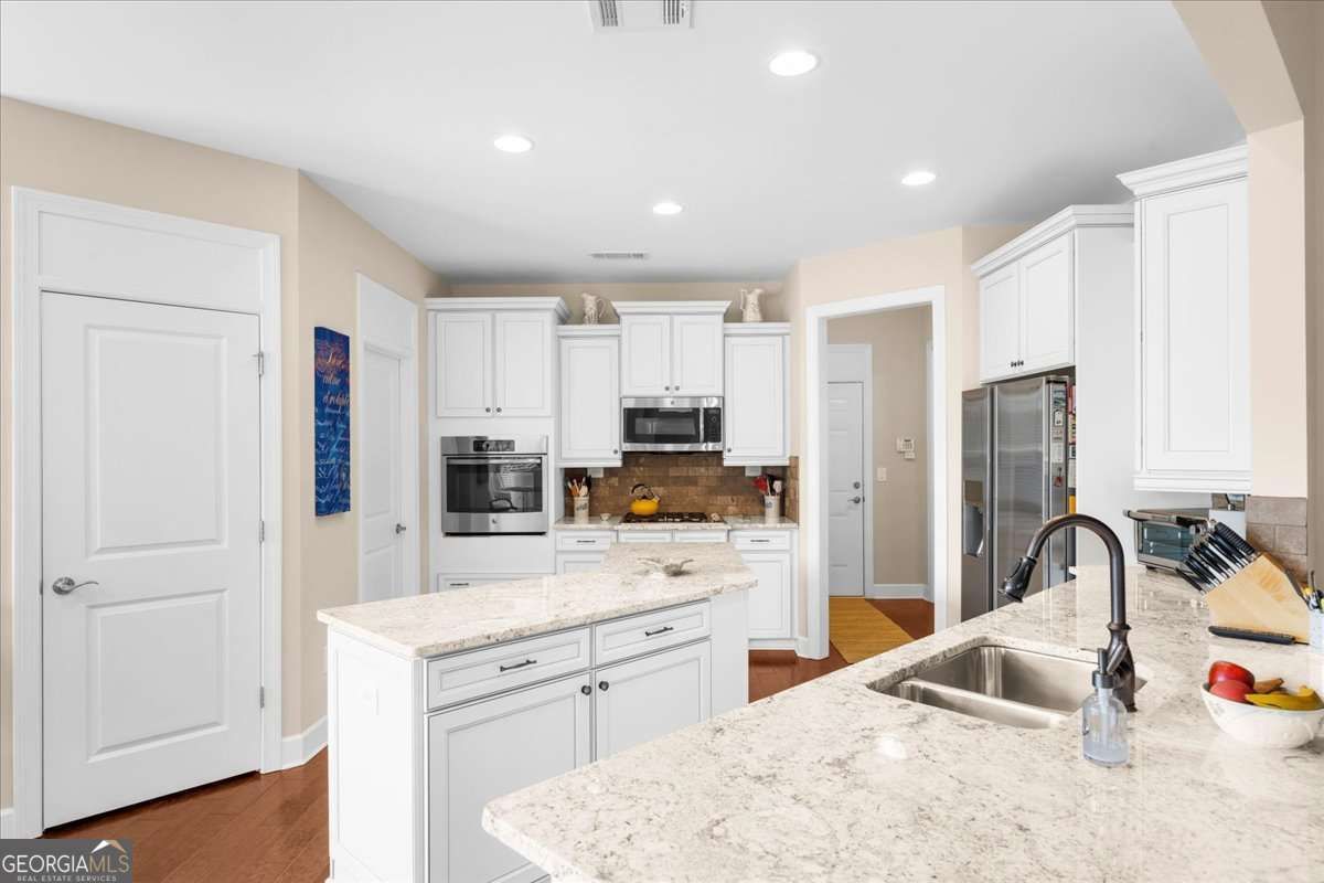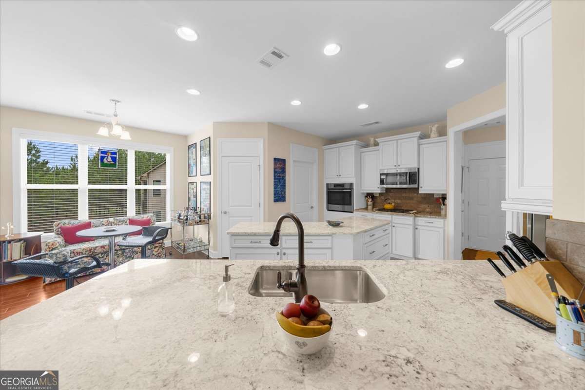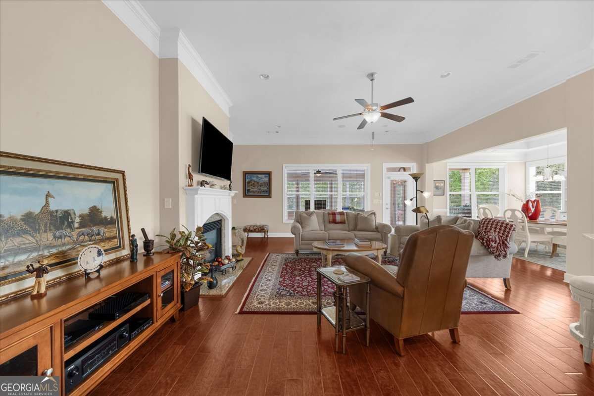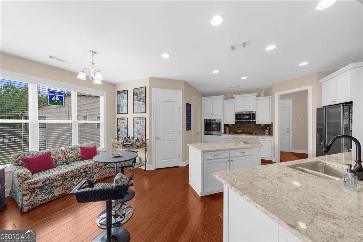 Welcome to the award-winning 55+ community of Cresswind at Lake Lanier. Located on a private cul-de-sac premium lot, the "Maple" model shows pride of ownership throughout. Featuring 3 bedrooms, 2.5 baths, 2,674 sq ft of main floor living space, and an additional 2,314 sq ft of unfinished terrace level space. Notable interior details include hardwood floors, upgraded crown molding, and upgraded baseboards. The crown jewel of the home is the enclosed 360 sq ft sunroom which is surrounded by windows overlooking the trees, equipped with a built-in speaker system, and is heated and cooled with a split system for year-round enjoyment. Adjacent to the sunroom is a Trex deck suitable for grilling and outdoor activities. The great room offers open concept living with a gas fireplace, built-in speaker system, and spacious dining area with custom window placement to accommodate placement for a buffet or cabinet. The kitchen includes white cabinets, beadboard accents, granite countertops, Advantium halogen microwave, built-in oven, breakfast area, prep island, and walk-in pantry. The primary bedroom suite offers views of the trees, built-in speaker system, walk-in closet, jet tub, frameless shower enclosure, and vanity with dual sinks. The second and third bedrooms share a Jack and Jill bathroom with a tub/shower combination; the third bedroom has custom window placement, built-in speaker system and was used as an office. The unfinished terrace level is stubbed for a bath and may be finished for additional living space or used for storage. There is access to a back patio and backyard which is maintained by the HOA. Additional upgrades include concrete resurfacing of the front walkway and porch, extended driveway, security system with exterior cameras, Rachio "smart" irrigation system, new HVAC (June 2023), and new dehumidifier (July 2025). The award-winning Cresswind at Lake Lanier boasts a 43,000 sq ft, 3-story clubhouse with indoor and outdoor pools, kayaking, fishing, courtesy boat docks, over 120 clubs, arts & crafts room, pickleball, tennis, indoor & outdoor pools, gym, dance & fitness classes, poker, games, billiards, plays, chorus, concerts, dances and more! An on-site activities director, property manager and maintenance crew keep everything running smoothly. The residents are welcoming, friendly and anxious to include new neighbors in all the activities! I have lived at Cresswind at Lake Lanier for 12 years and I know you will enjoy the Cresswind lifestyle!