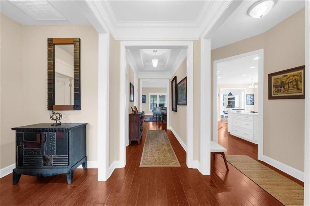 - Crown Molding, Double Vanity, Entrance Foyer, High Ceilings, Recessed Lighting, Tray Ceiling(s), Walk-In Closet(s), Dual Pane Window(s), Shutters, Window Treatments, Bathroom, Bedroom, Separate/Formal Dining Room, Family Room, Kitchen, Laundry Facility, Primary Bathroom, Primary Bedroom, Sunroom, Dehumidifier