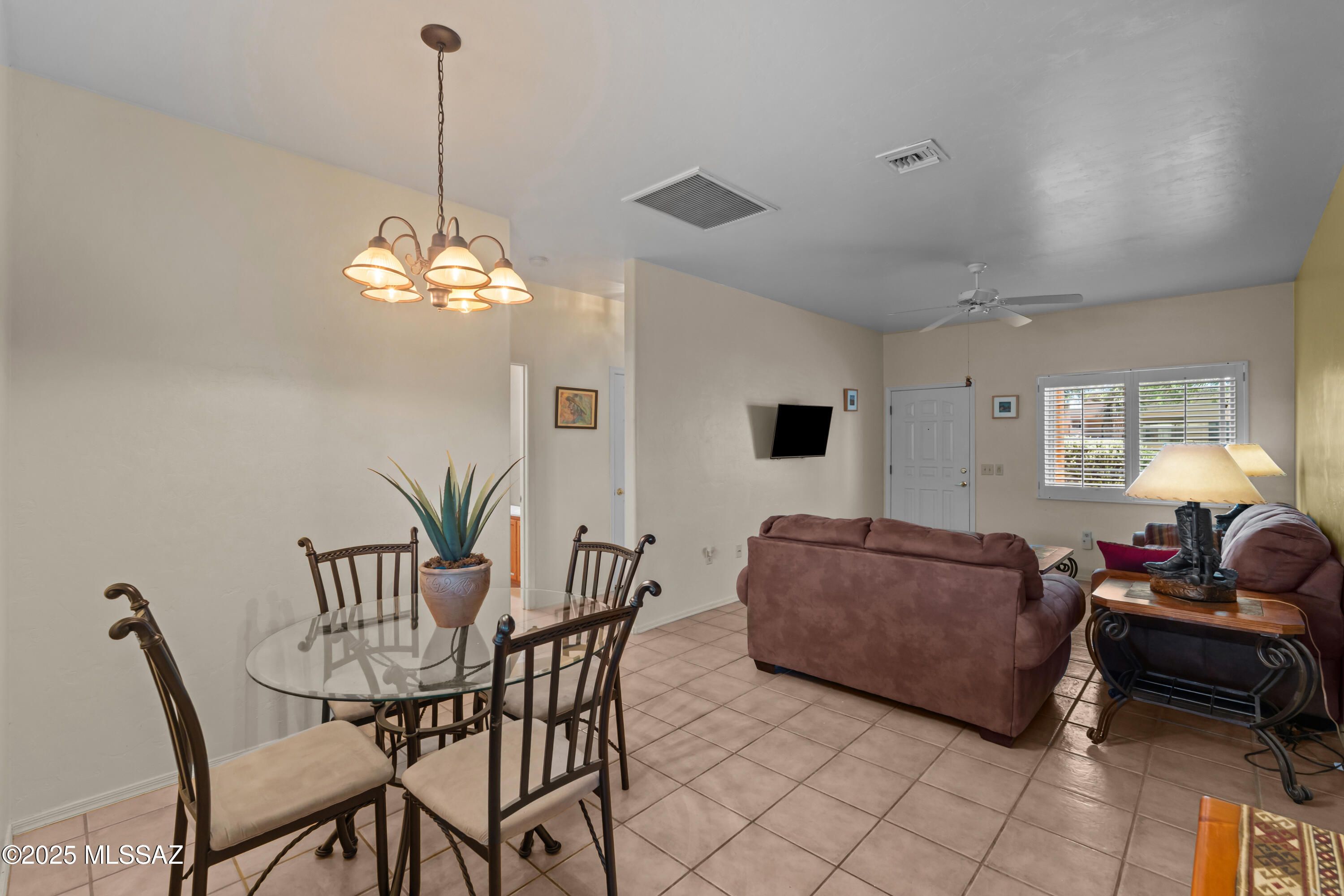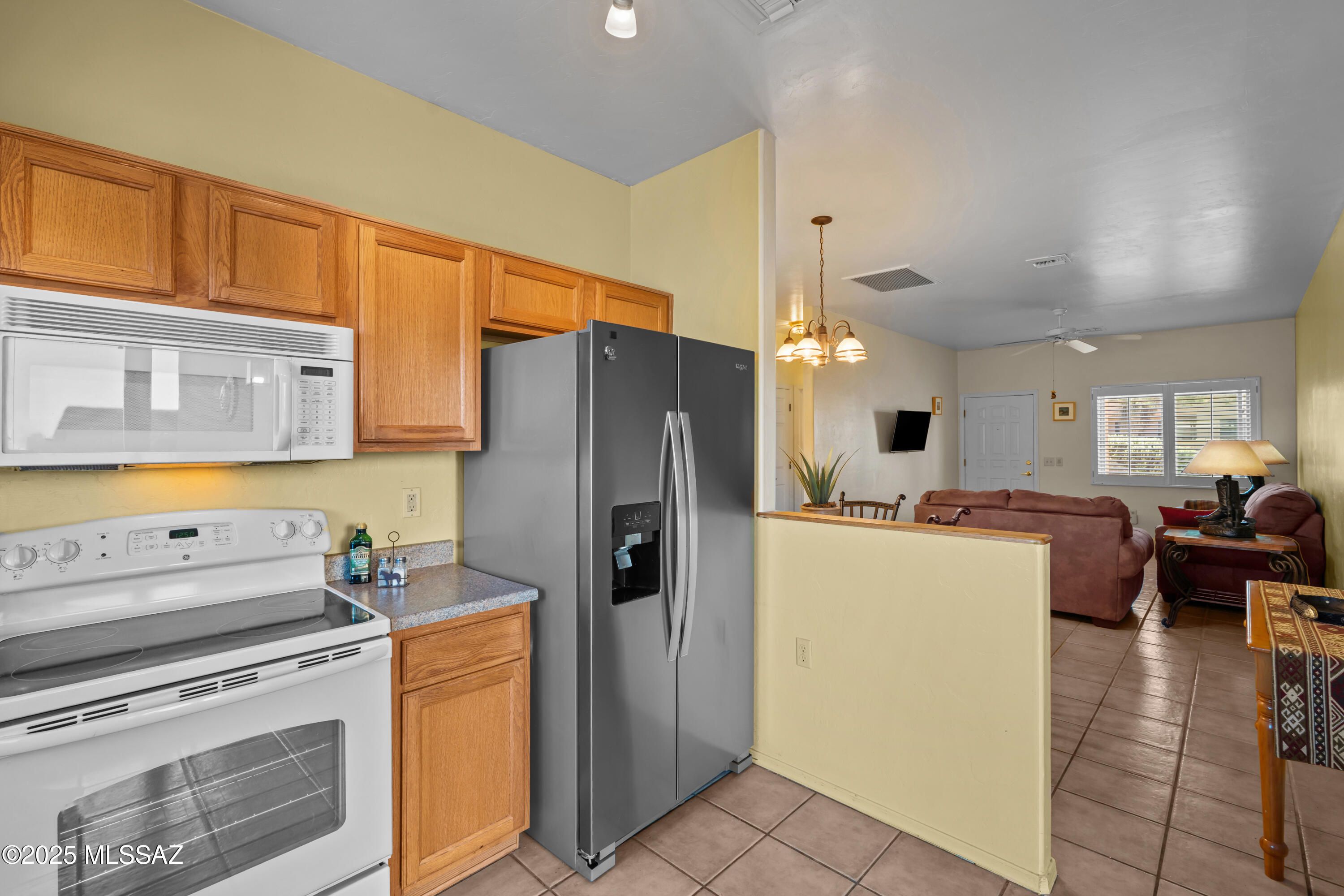 This charming two-bedroom, two-bathroom townhouse in Green Valley offers the perfect blend of comfort and convenience for your desert lifestyle. The open-concept great room flows seamlessly into the kitchen, creating an inviting space that's ideal for both daily living and entertaining guests.The kitchen comes well-appointed with newer appliances including a refrigerator, dishwasher, and garbage disposal, plus an updated faucet that adds a fresh touch. Beautiful tile flooring extends throughout the entire home, providing both durability and easy maintenance in the desert climate. Natural light fills the space through some newer windows, while a convenient slider off the kitchen leads to your private patio complete with a barbecue pad for outdoor cooking adventures.