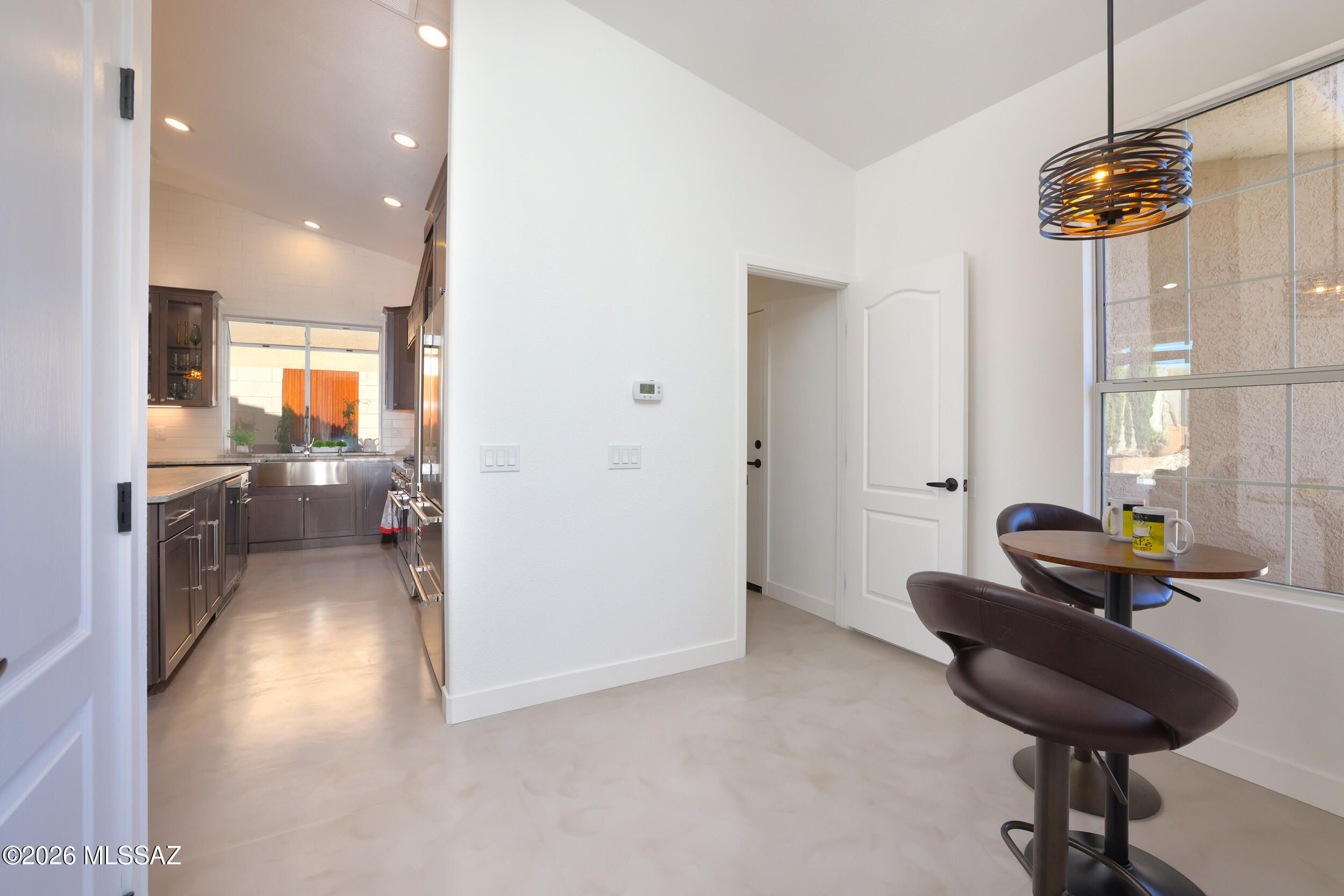 Exquisitely renovated Madera model at the end of a quiet cul-de-sac, boasting sweeping mountain views and refined privacy. The redesigned split floor plan features two opulent primary suites, 3.5 spa-inspired bathrooms, and a versatile office/optional bedroom. The chef's kitchen dazzles with an 8-burner gas range, double convection ovens, custom cabinet pullouts, pantry, pot filler, and brand-new stainless appliances. Light-filled great room with soaring cathedral ceilings and expansive 8' patio sliders. New paint, concrete floors, complete the interior. Step outside to an oversized patio leading to a private desert oasis--a serene retreat designed for entertaining or tranquil relaxation. Newer roof from 2018. Truly move-in ready perfection.