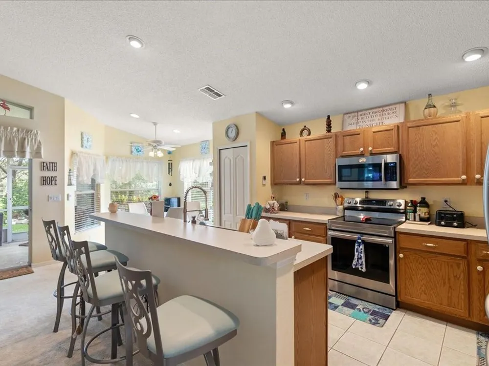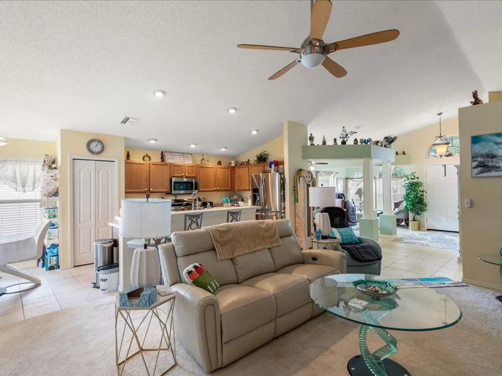 LARGE PRICE REDUCTION - Don't Miss OUT! On this Charming 3/2/2 Bluebird Model in The Wellington – A Premier 55+ Community. This beautifully maintained home boasts exceptional curb appeal with manicured landscaping, decorative garden bed curbing, full gutters, and a screened garage door—all contributing to an inviting exterior. Inside, you’ll find spacious open-concept living, where the formal living and dining areas seamlessly connect with the informal family room, breakfast nook, and kitchen. The kitchen features real wood cabinetry, recessed lighting, and stainless-steel appliances, combining warmth and practicality. The owner’s suite easily accommodates a king-sized bedroom set and offers a walk-in closet, garden tub, and a separate walk-in shower in the en-suite bath. Two additional bedrooms and a full guest bath provide plenty of space for visitors, a home office, or hobbies. Additional Features Include:,Newer water heater, Spacious 2-car garage, Move-in ready condition,Priced to sell—tremendous value!Wellington Community Highlights: 24-hour manned security gatehouse,Resort-style pool and Tennis Don’t miss your opportunity to experience the Wellington lifestyle—where resort-style amenities, beautifully maintained surroundings, and welcoming neighbors make every day feel like a getaway. HOA takes care of exterior paint every 10 years, the roof every 20 years, plus your lawn and sprinkler system. This home won’t last long—schedule your private showing today!