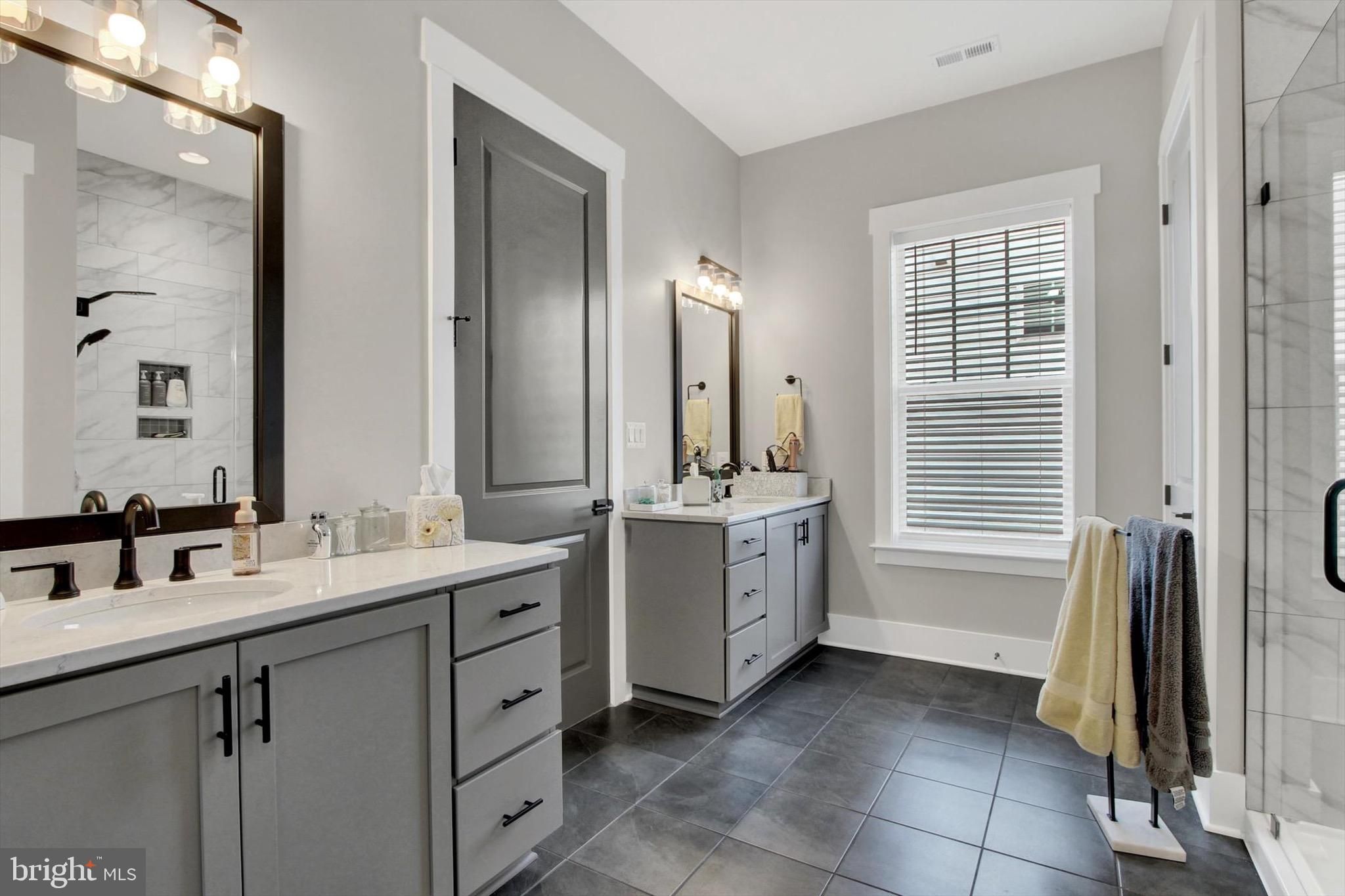 Welcome to The Quiet Creek House, a beautifully upgraded, move-in ready home in the heart of Amblebrook, a premier 55+ community designed for easy, resort-style living. Set on a premium lot backing to peaceful trees, this 2,400 square-foot home offers privacy, space, & thoughtful design throughout. From the charming front porch & timeless exterior with shaker siding, stone accents, & stately columns, to the soaring 10-foot ceilings inside, every detail feels warm & inviting. Glass doors open to a private study that can easily serve as a third bedroom, while a guest bedroom & full bath are thoughtfully tucked away for comfort. The open-concept living area is anchored by a stunning kitchen with an oversized quartz island, KitchenAid gourmet appliances, & farmhouse sink. A butler’s pantry & spacious walk-in pantry provide exceptional storage, along with abundant cabinetry throughout. The subway tile backsplash extends all the way to the ceiling, adding a timeless designer touch. The kitchen flows seamlessly into a light-filled dining area, an open living room with a gas fireplace & custom built-ins, creating the perfect setting for both everyday living & entertaining. The expanded primary suite is a true retreat. A custom trim accent wall adds character & warmth to the space. The ensuite bath features dual oversized vanities, a large tiled shower, & a private water closet. An impressive walk-in closet offers generous storage & connects directly to the laundry room, complete with built-ins, granite countertops, & a utility sink. A heated four-season room extends your living space year-round. It features luxury vinyl plank flooring and stunning floor-to-ceiling windows that fill the space with natural light. Step outside to a fenced backyard featuring a beautifully hardscaped patio with a gas line ready for summer grilling. A full yard sprinkler system keeps the landscaping lush and low-maintenance. Additional highlights include an oversized two-car garage & a dedicated bulk storage room with built-in shelving for exceptional organization. With indoor and outdoor resort-style pools, pickleball courts, a coffee shop, a state-of-the-art fitness center, and weekly social activities, life at Amblebrook truly feels like a vacation every day. Come experience the stunning details for yourself and schedule your private tour today.