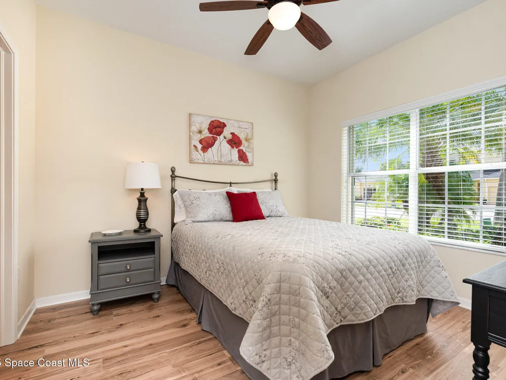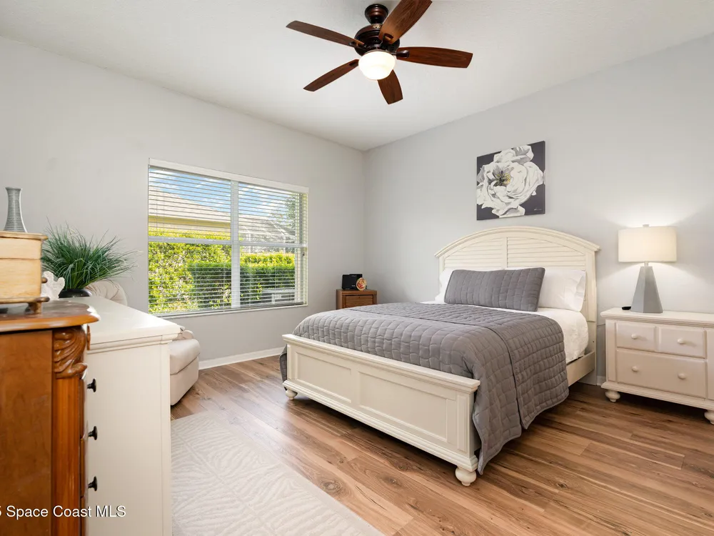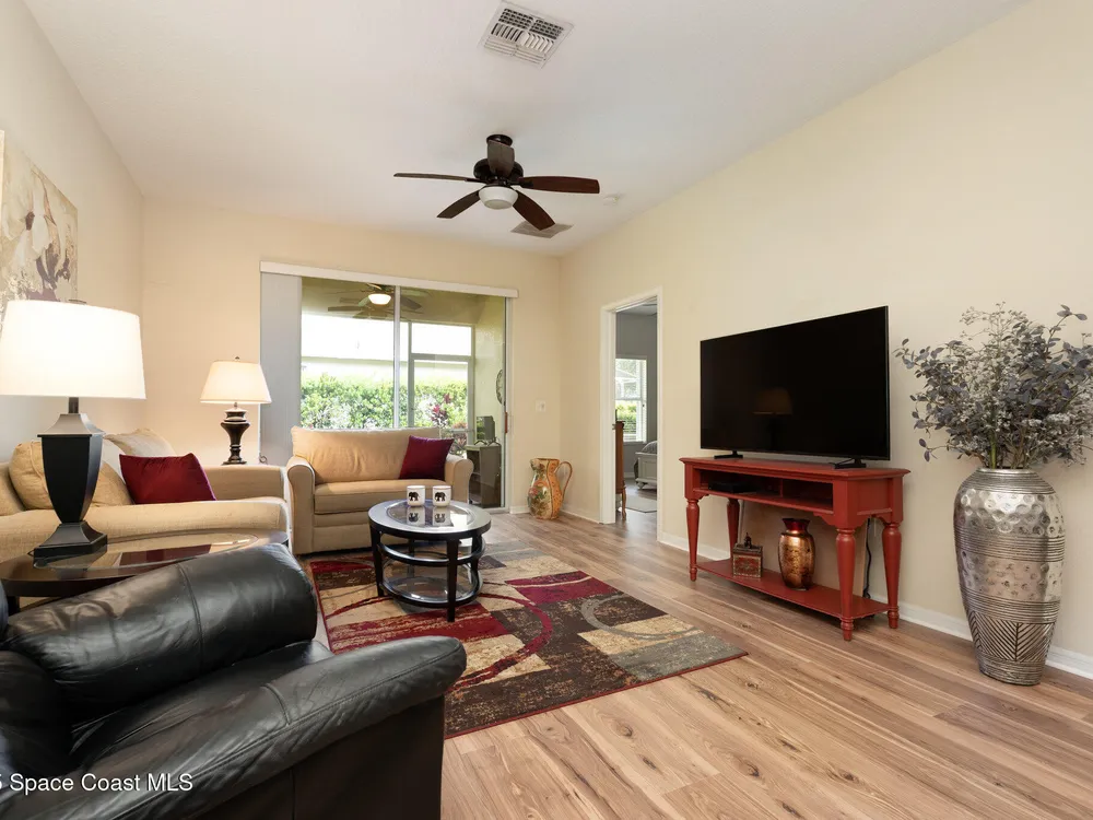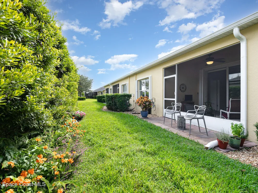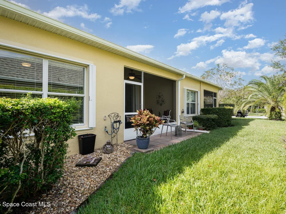 Nestled in the most prestigious 55+ resort-style community in Viera Is where you will find this better than new impeccably kept, move in ready villa. Brand new roof, gutters, freshly painted outside, accordion storm shutters, brand new mohawk wood flooring, all new whirlpool appliances, comfort height toilets, private back yard oasis. Enter into this open floorpan, featuring 2 bedrooms, 2 bathrooms and den,. Enjoy mornings and evenings on your private screened in patio. This villa has been crafted for a life of comfort, luxury, and vibrant community living. The resort-style amenities allow you to immerse yourself in the social scene, whether it's a refreshing dip in the exquisite heated pool & hot tub/spa, a game of tennis or pickleball, a light workout in the fitness center or a leisurely stroll through manicured pathways and community events. This community is close to everything,y et so far away from it all! Start living your dream resort style.