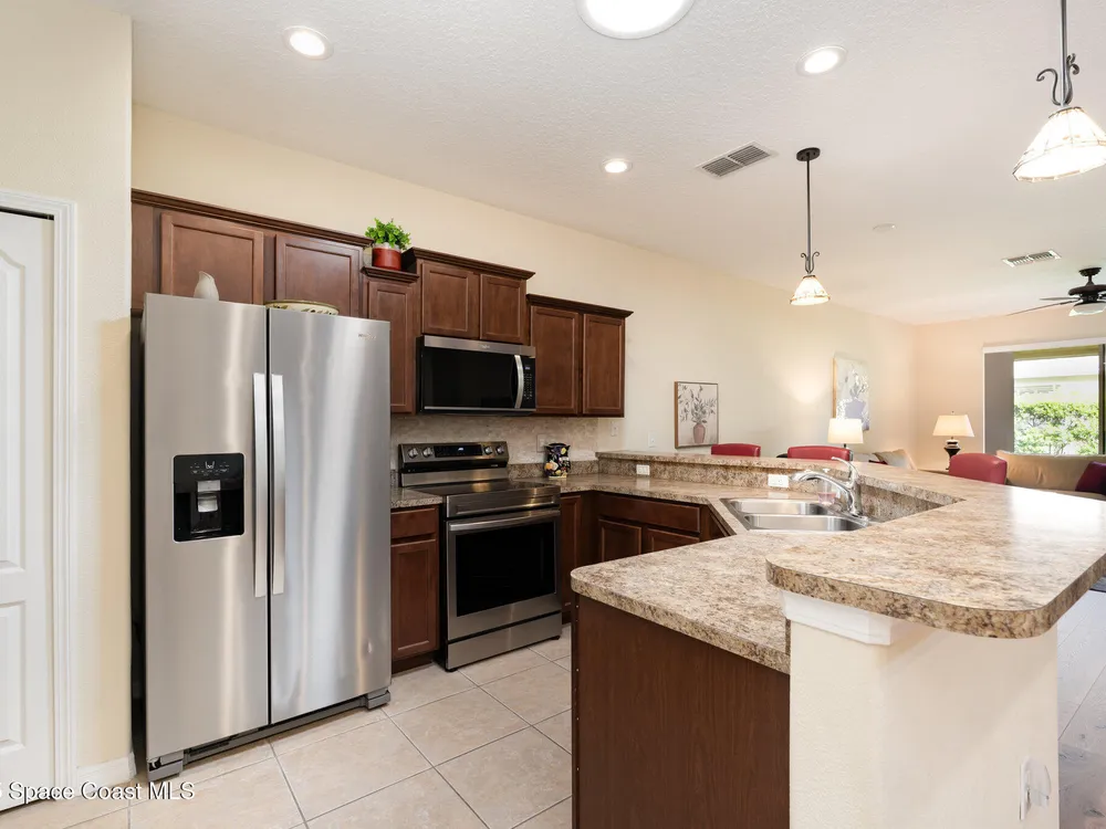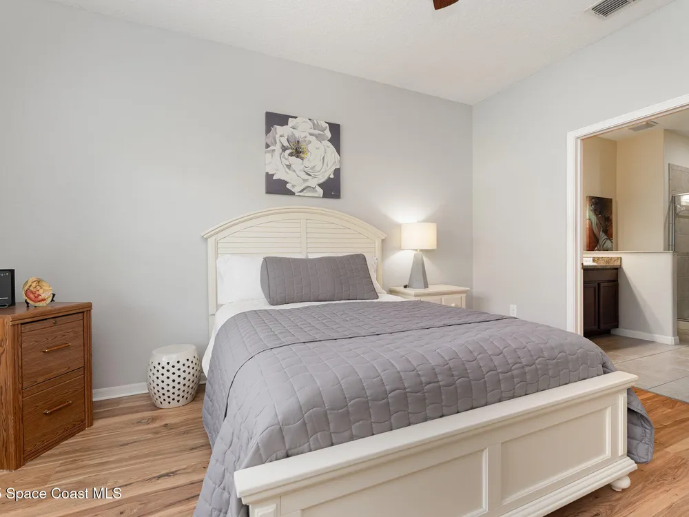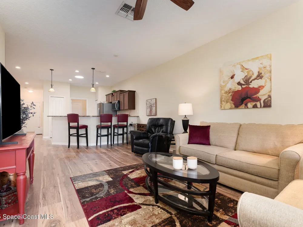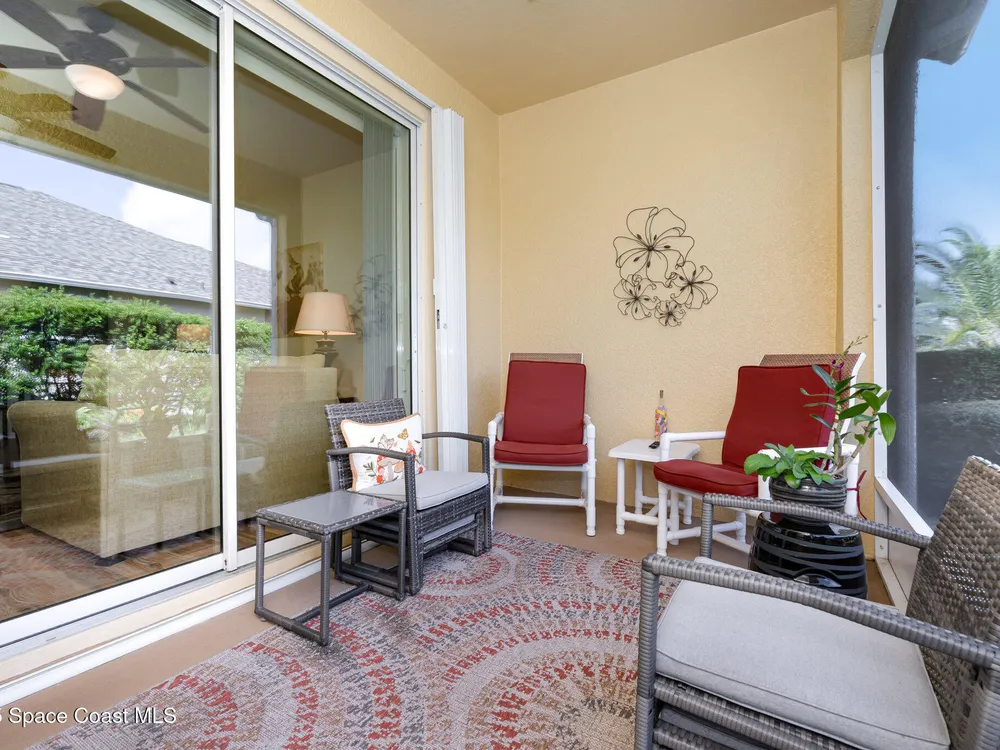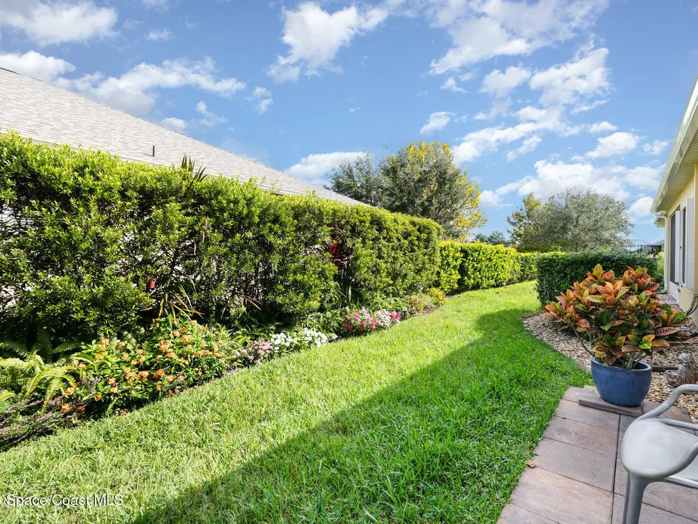 Nestled in the most prestigious 55+ resort-style community in Viera Is where you will find this better than new impeccably kept, move in ready villa. Brand new roof, gutters, freshly painted outside, accordion storm shutters, brand new mohawk wood flooring, all new whirlpool appliances, comfort height toilets, private back yard oasis. Enter into this open floorpan, featuring 2 bedrooms, 2 bathrooms and den,. Enjoy mornings and evenings on your private screened in patio. This villa has been crafted for a life of comfort, luxury, and vibrant community living. The resort-style amenities allow you to immerse yourself in the social scene, whether it's a refreshing dip in the exquisite heated pool & hot tub/spa, a game of tennis or pickleball, a light workout in the fitness center or a leisurely stroll through manicured pathways and community events. This community is close to everything,y et so far away from it all! Start living your dream resort style.