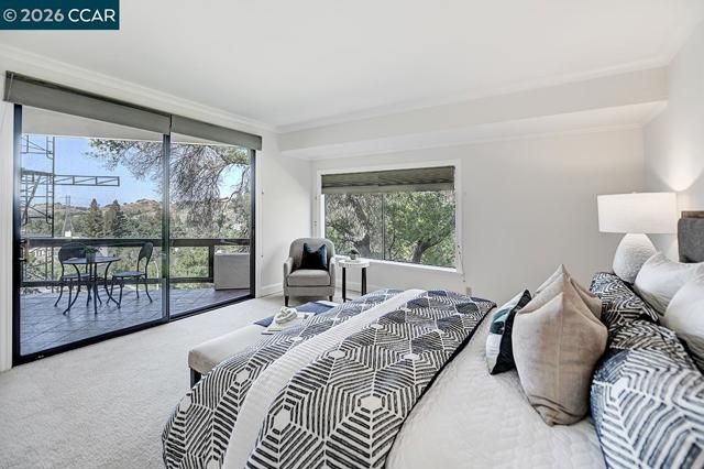 Easy level-in access for this home with beautiful panoramic views. Versatile interpretation of timeless tradition is expressed throughout with dramatic high ceilings and disappearing walls of windows. The kitchen is beautifully updated with rich cabinetry, stainless-steel appliance and an abundance of storage and all the upscale features you would expect in a quality home. Spacious living room is accented with wood burning fireplace and custom built-in cabinets. Two tiled decks for outdoor enjoyment. Den also has custom built-in desk. The laundry room has lots of additional storage cabinets. The master suite is expansive with a lovely sitting area and large walk-in closet/dressing room with organizers. Spa inspired updated baths. In addition, the interior updated décor is also appointed with high-end carpets, custom blended paint, grand crown and base moldings, rare garage and additional carport parking. The distinctive details are endless ....