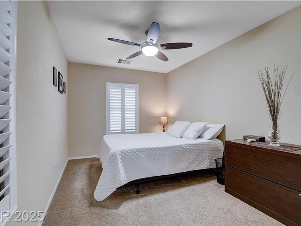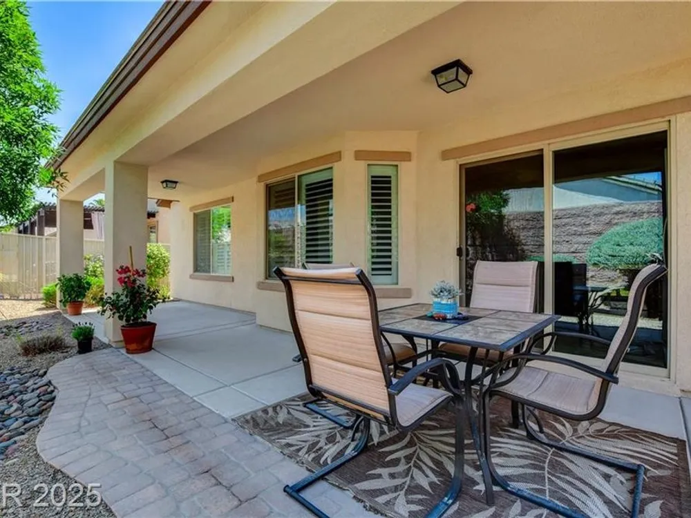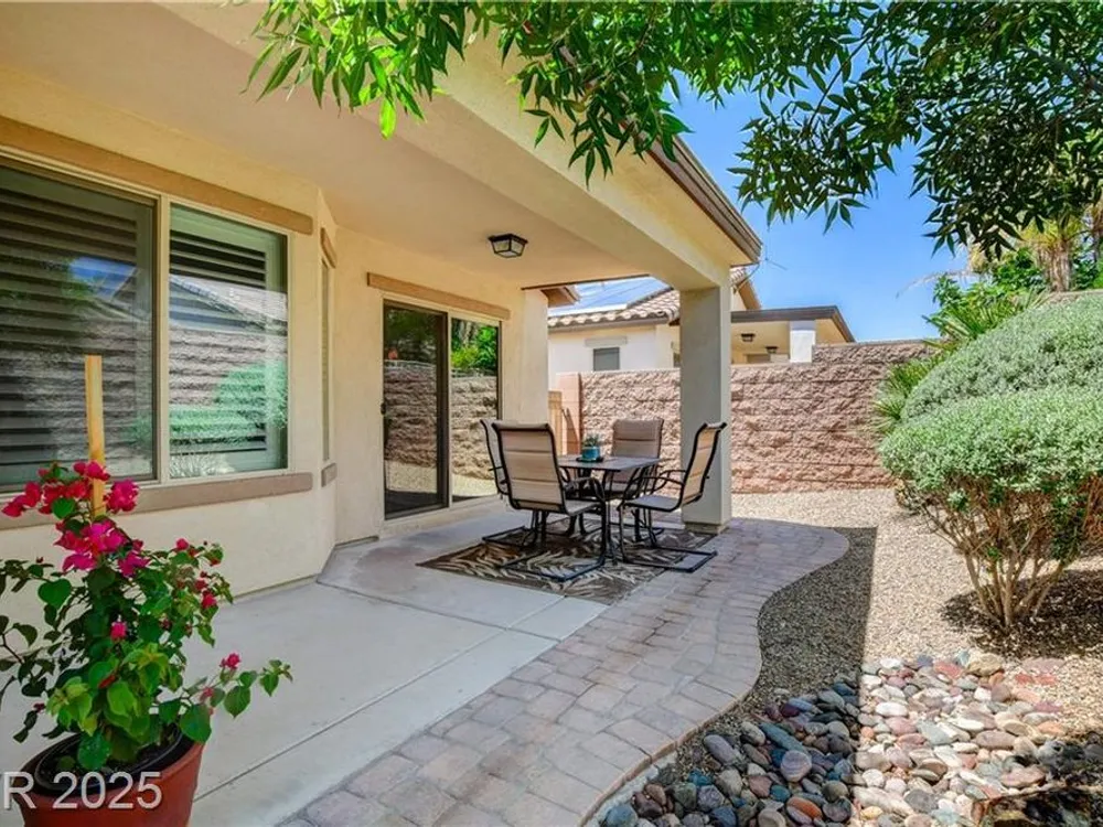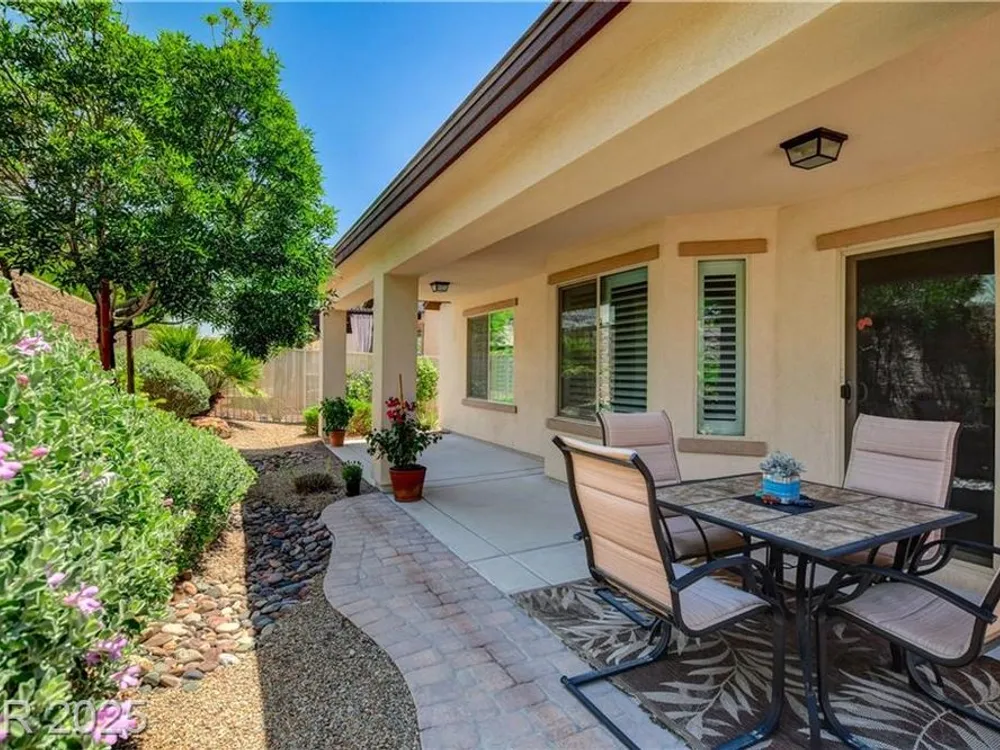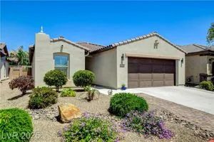 A rare 3 bedroom home in the wonderful gated 55+ community of Ardiente! Resort style living with easy access to the airport, I-15 and 215 beltway. This home boasts solar panels that contribute to extremely low electric bills! The 3rd bedroom can be used as an office, craft room, or guest bedroom. This wonderful home includes so many terrific features: interior location in the heart of the community, added pavers that extend the driveway, full block wall in backyard for ideal privacy, plantation shutters throughout, a 4 foot garage extension (24 feet long!), with overhead storage racks as an added feature. The maximum extended patio cover is perfect for entertaining! Original owners have meticulously maintained this home, and have exhibited true pride of ownership.