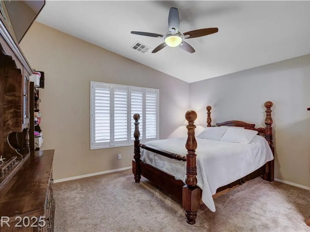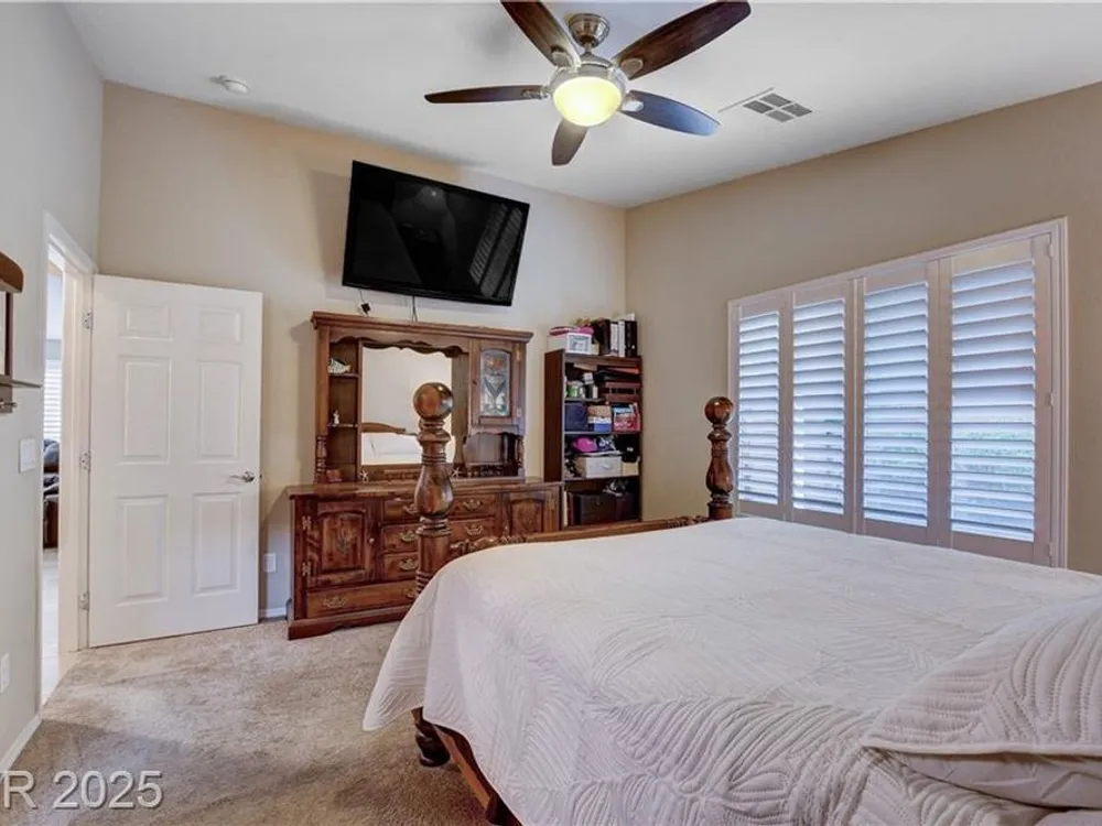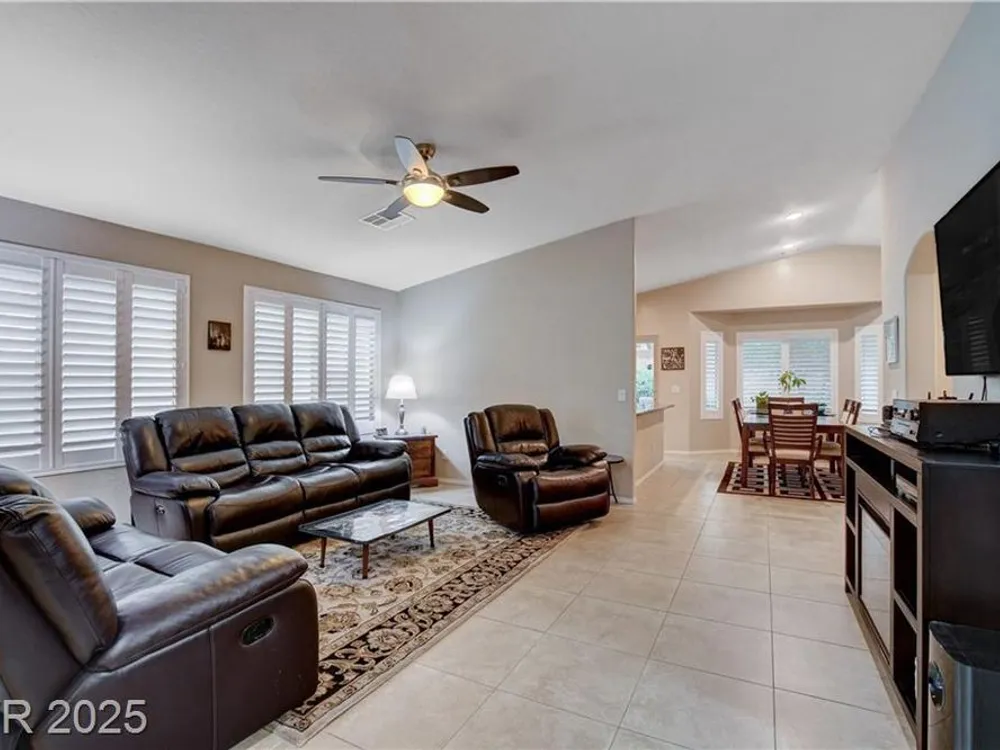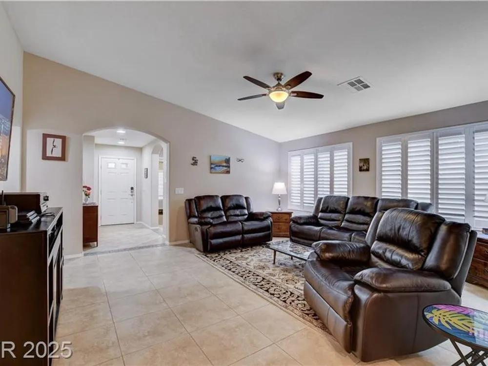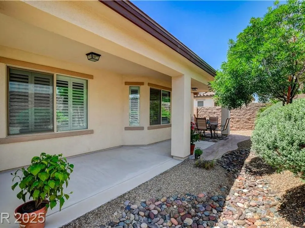 A rare 3 bedroom home in the wonderful gated 55+ community of Ardiente! Resort style living with easy access to the airport, I-15 and 215 beltway. This home boasts solar panels that contribute to extremely low electric bills! The 3rd bedroom can be used as an office, craft room, or guest bedroom. This wonderful home includes so many terrific features: interior location in the heart of the community, added pavers that extend the driveway, full block wall in backyard for ideal privacy, plantation shutters throughout, a 4 foot garage extension (24 feet long!), with overhead storage racks as an added feature. The maximum extended patio cover is perfect for entertaining! Original owners have meticulously maintained this home, and have exhibited true pride of ownership.